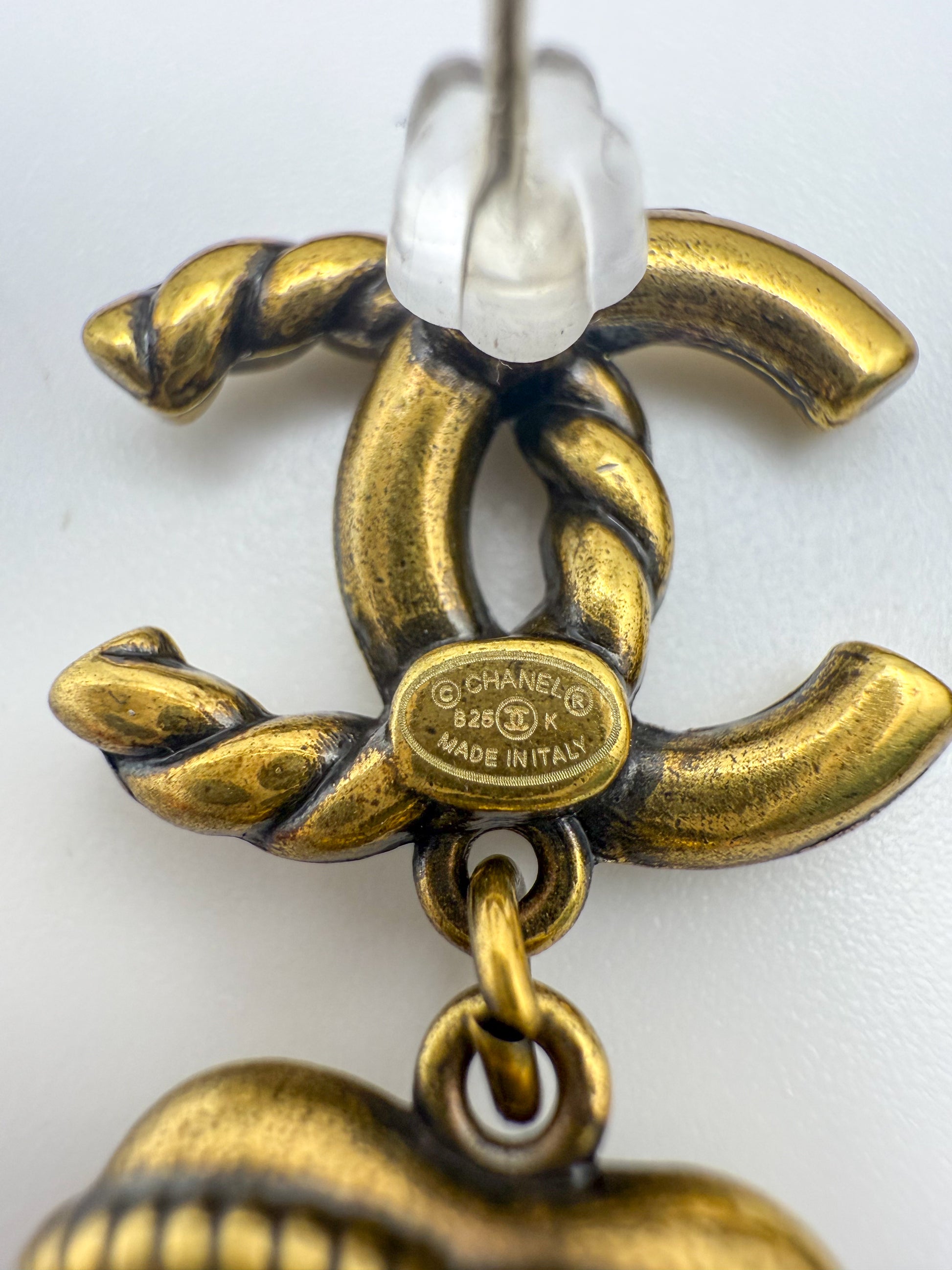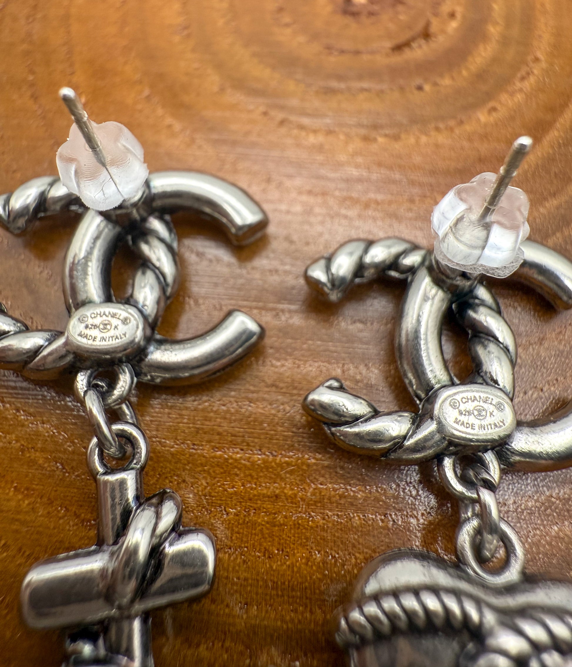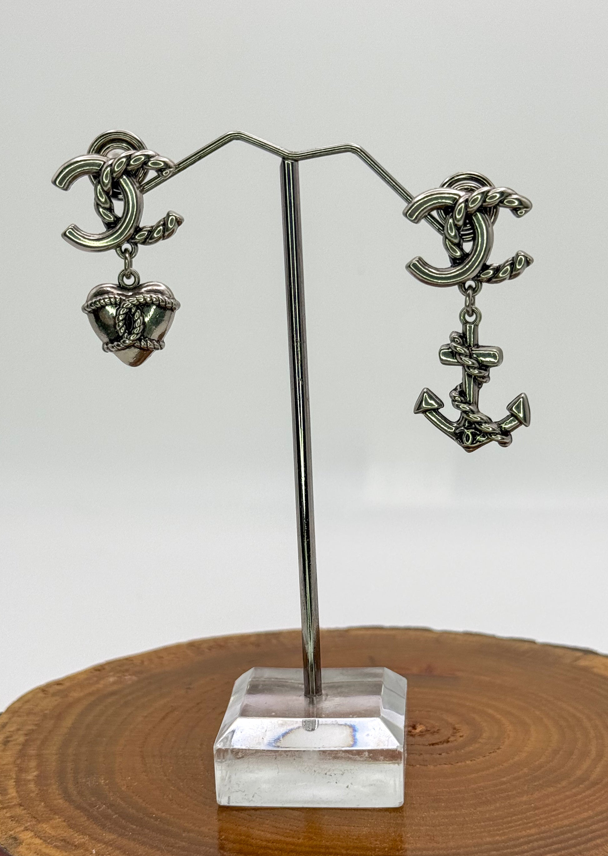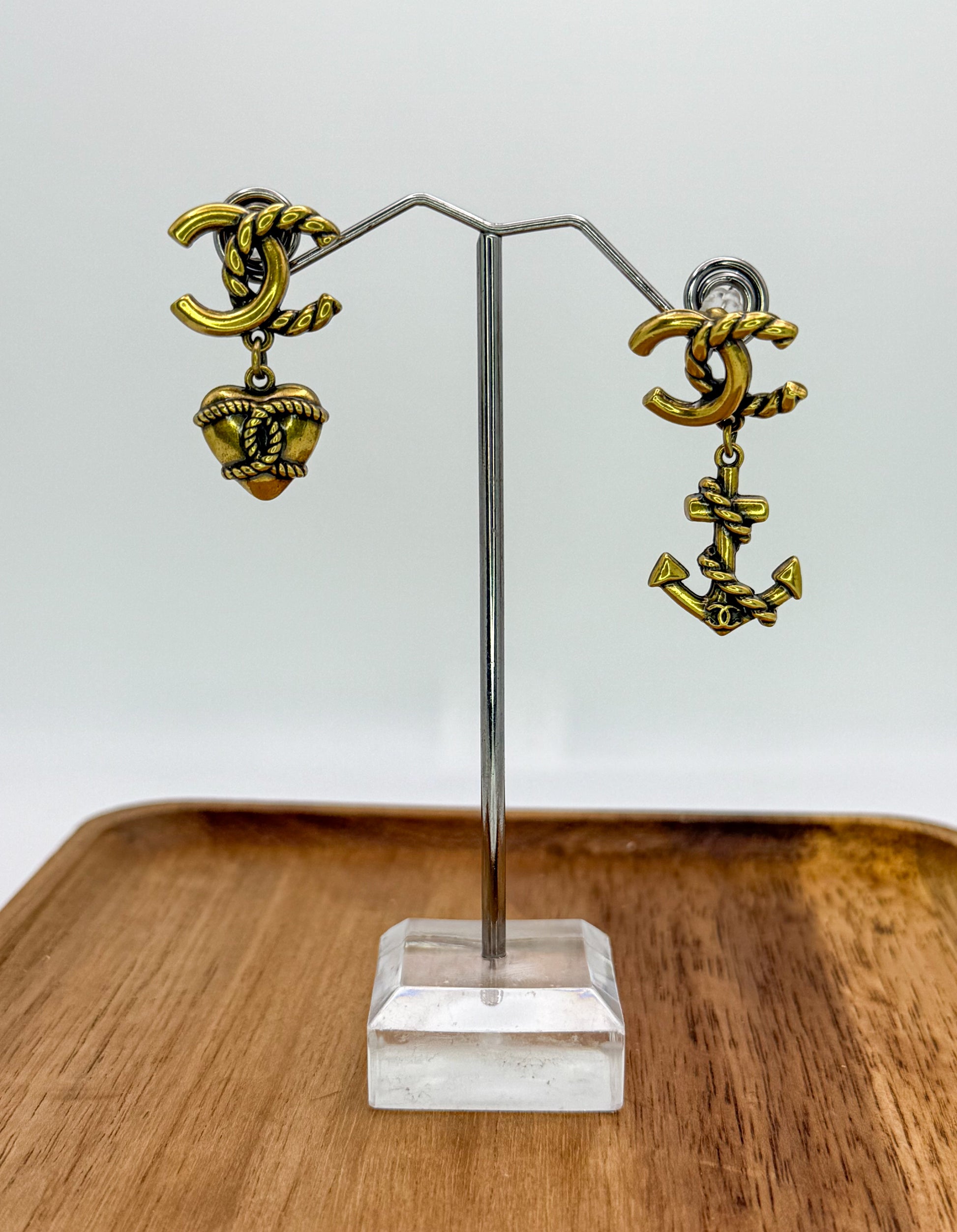 Antique Gold & Silver CC Designer Love & Anchor Stud Dangle Earrings