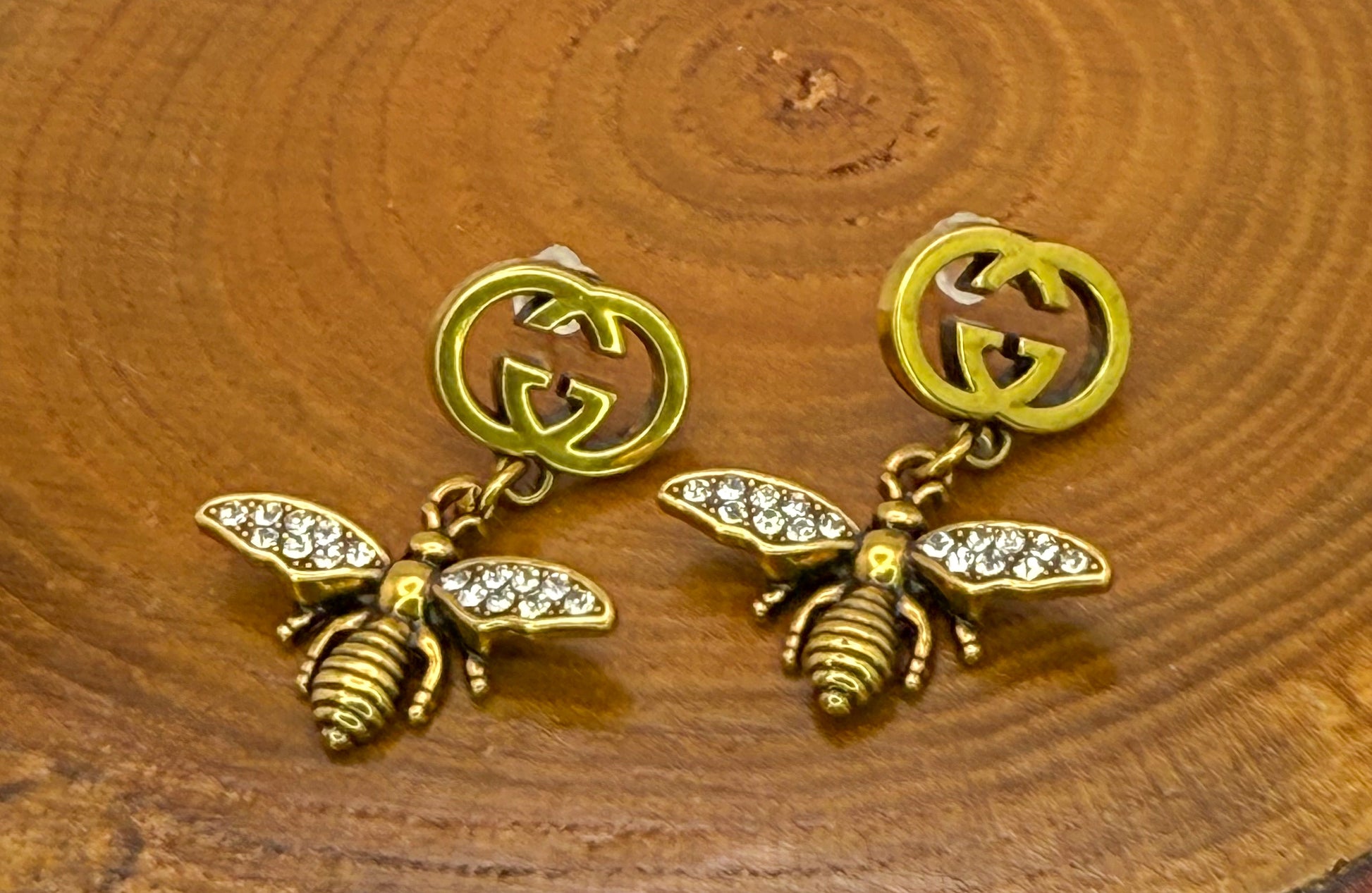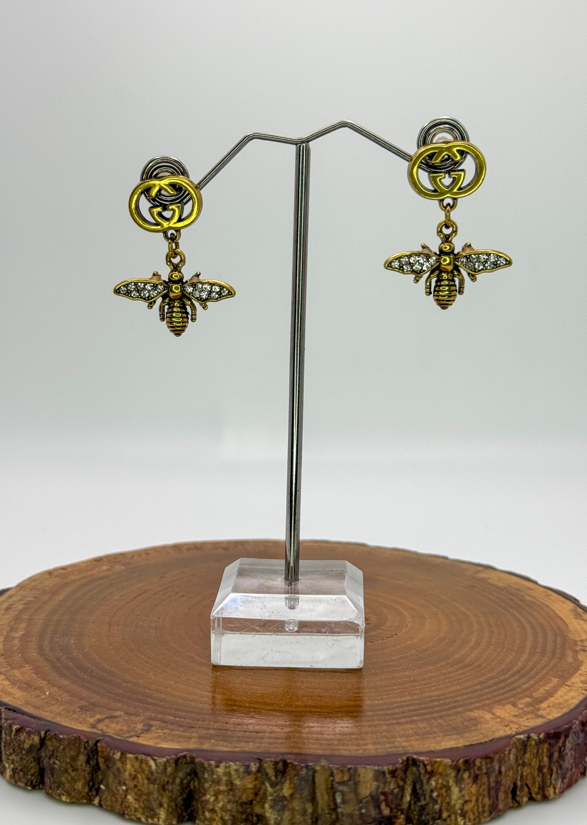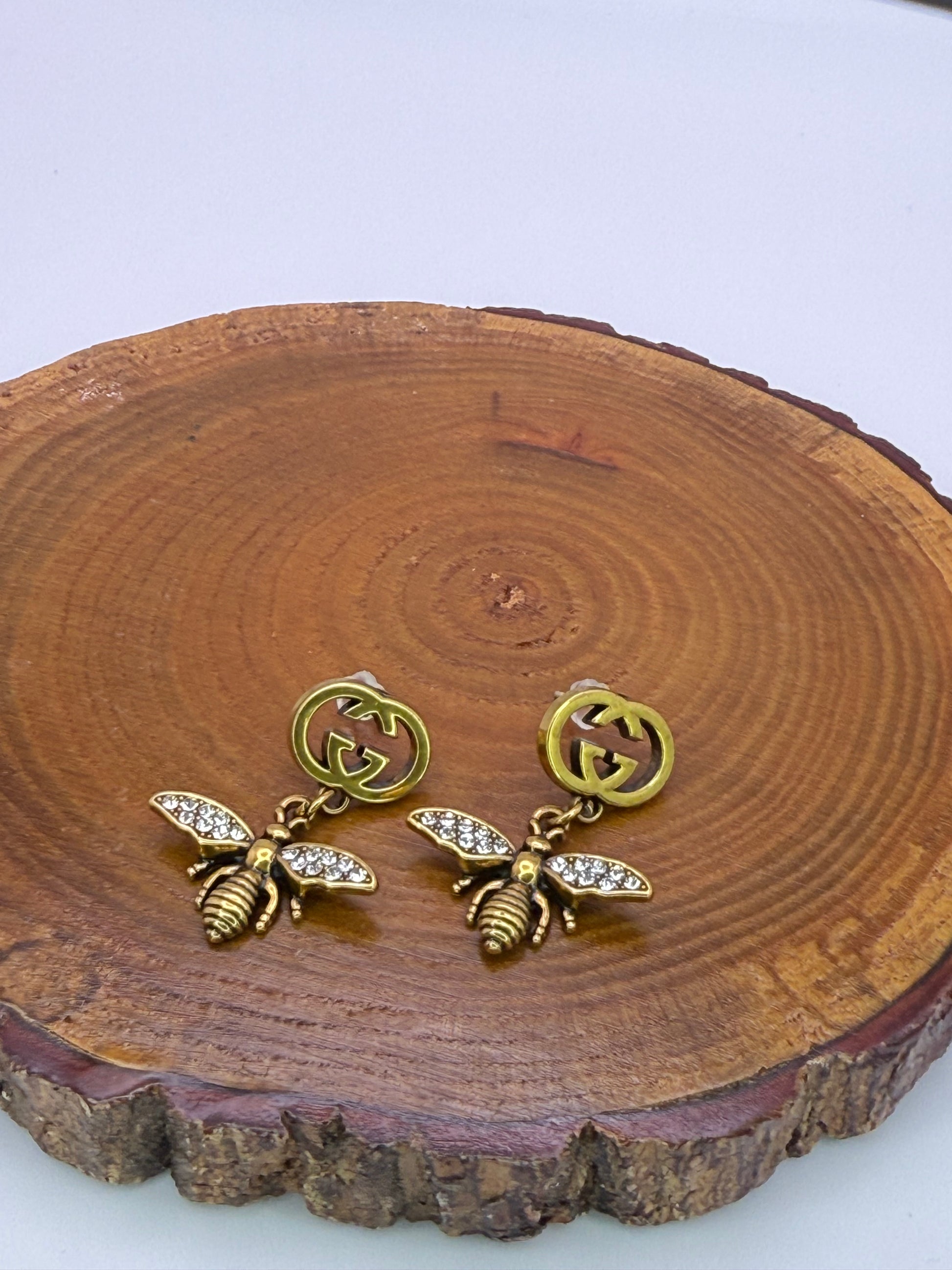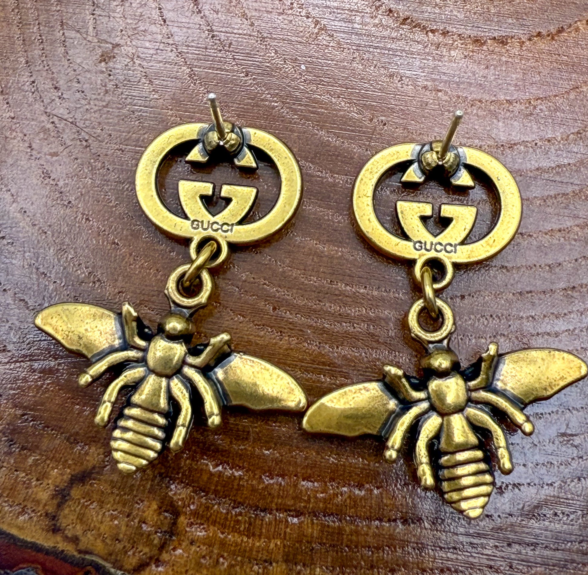 Antique Gold GG Designer Bumble Bee Stud Earrings