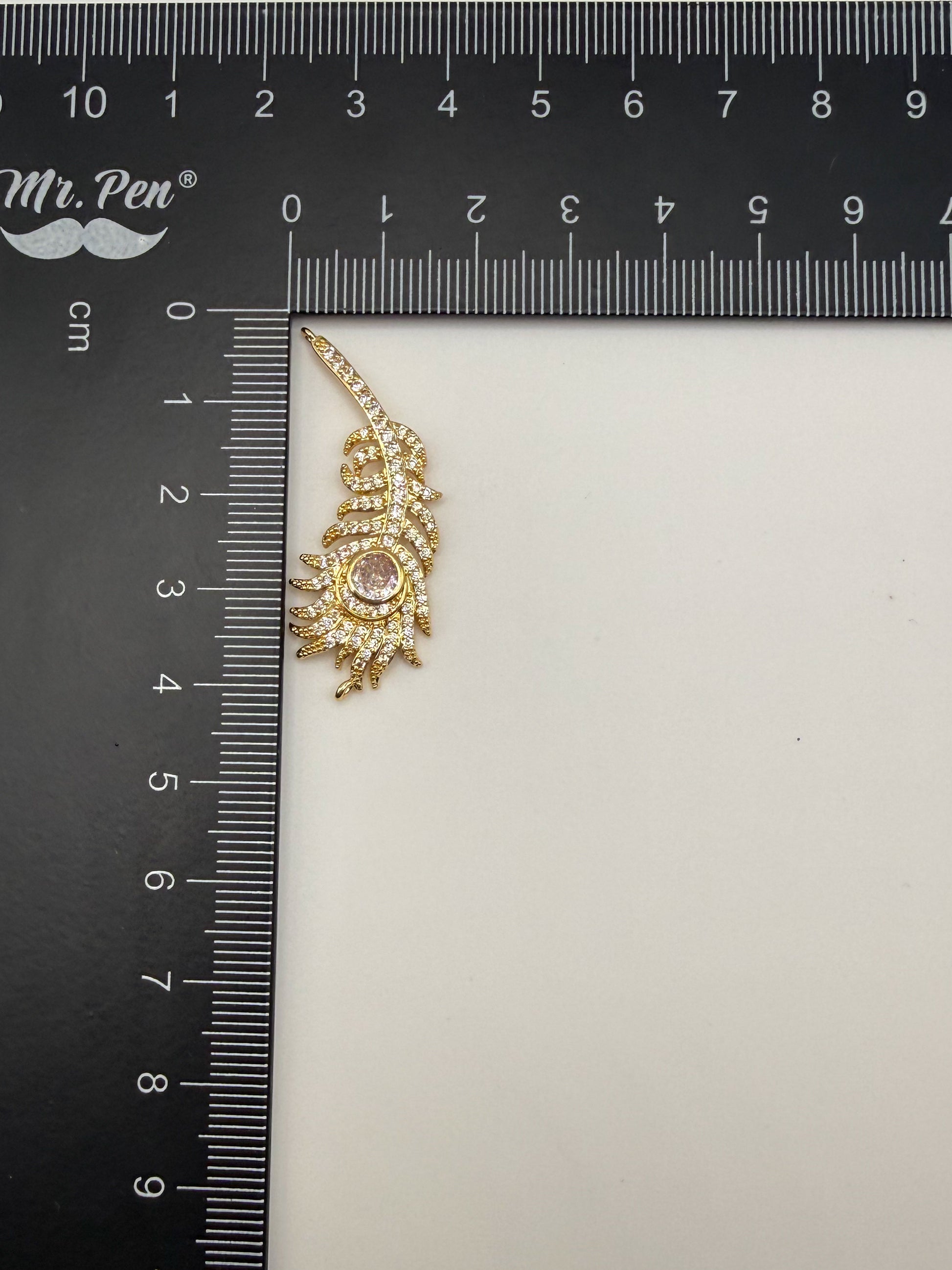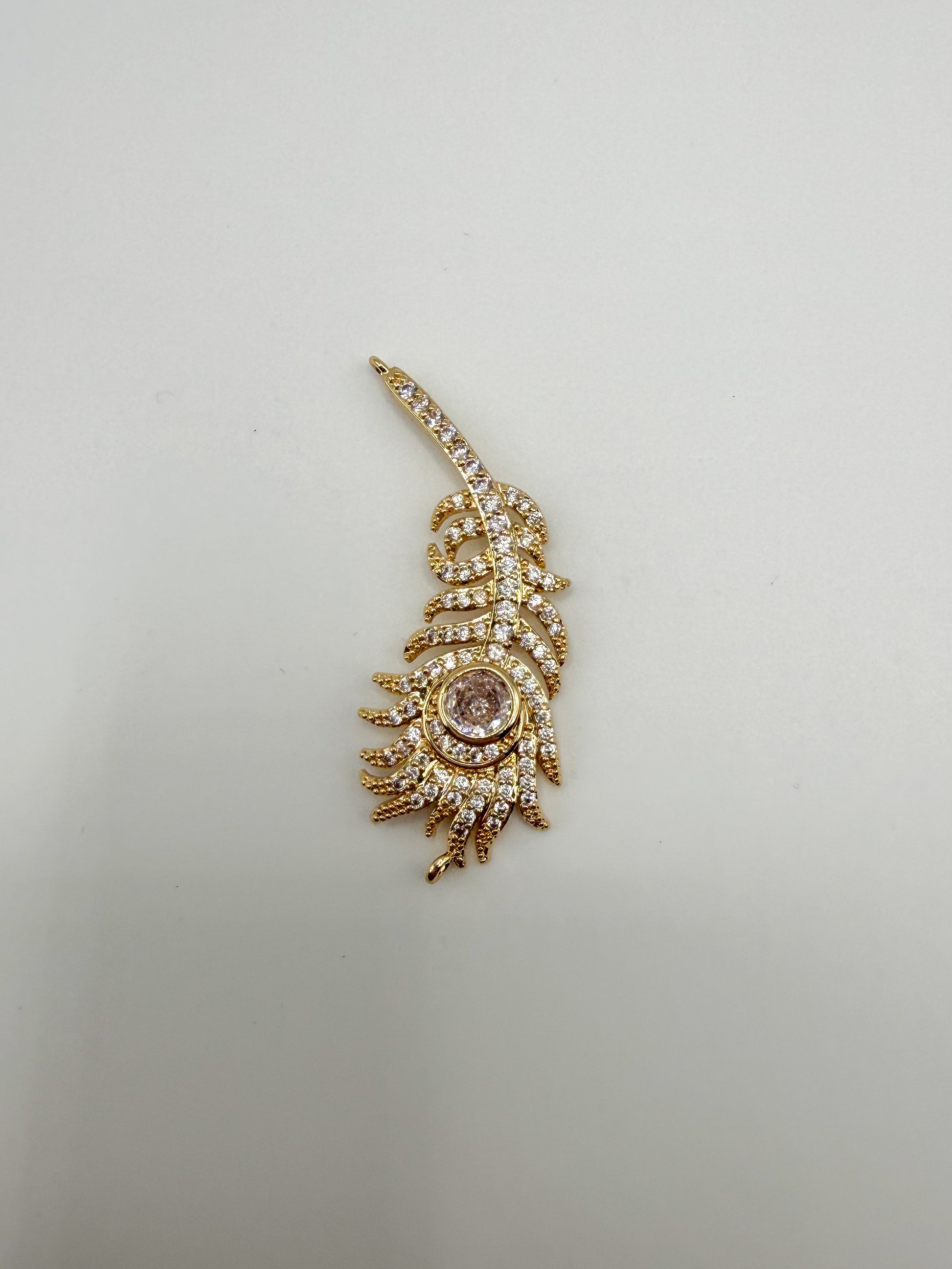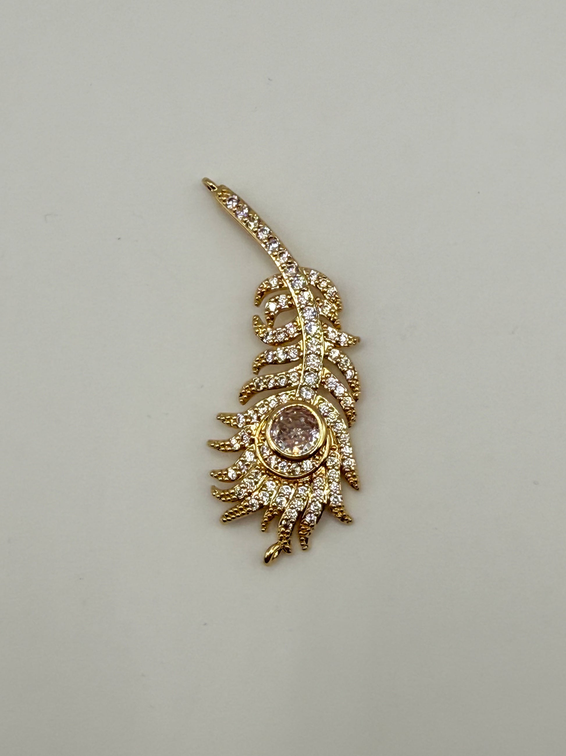 Big Gold Sparkling Peacock Feather Charm Pendant