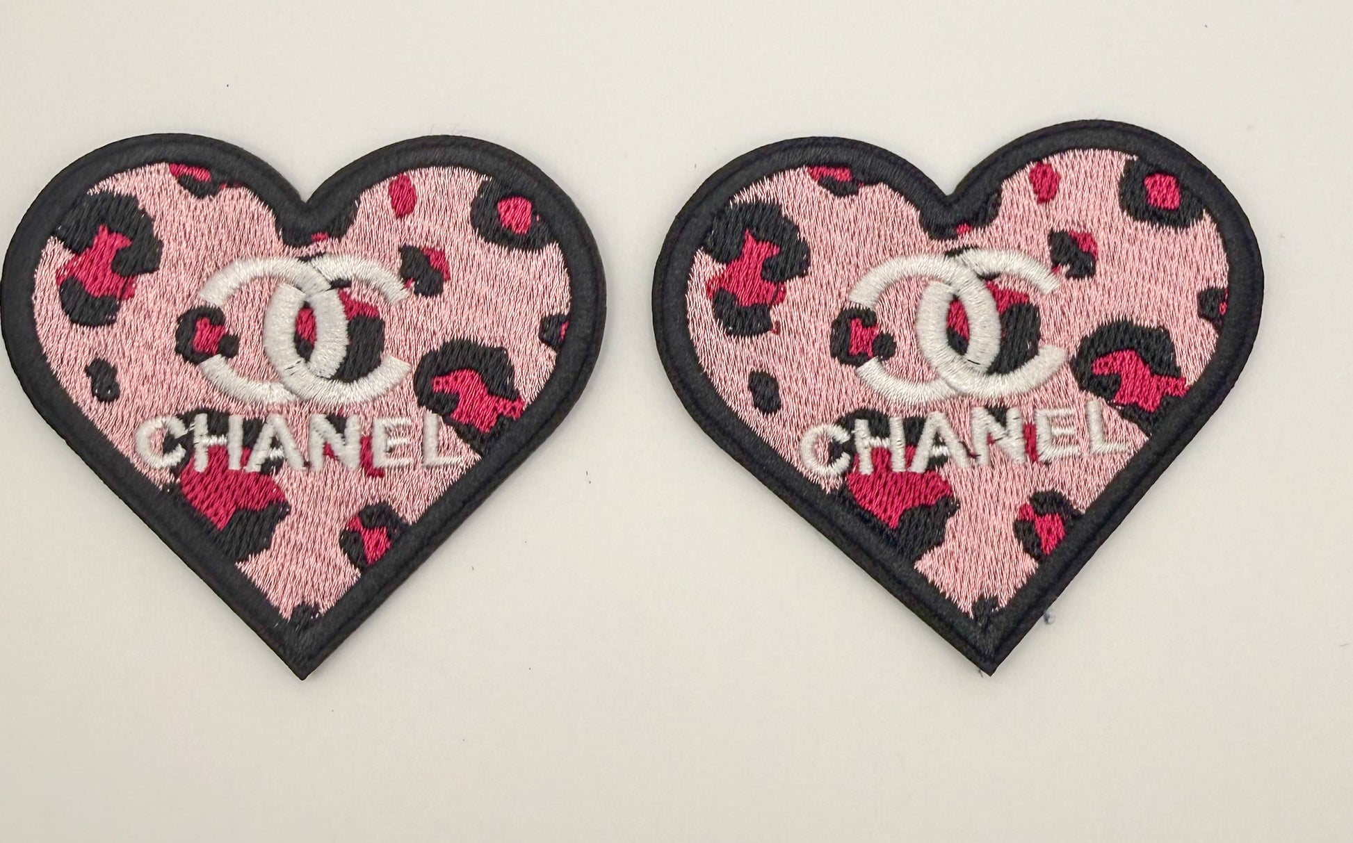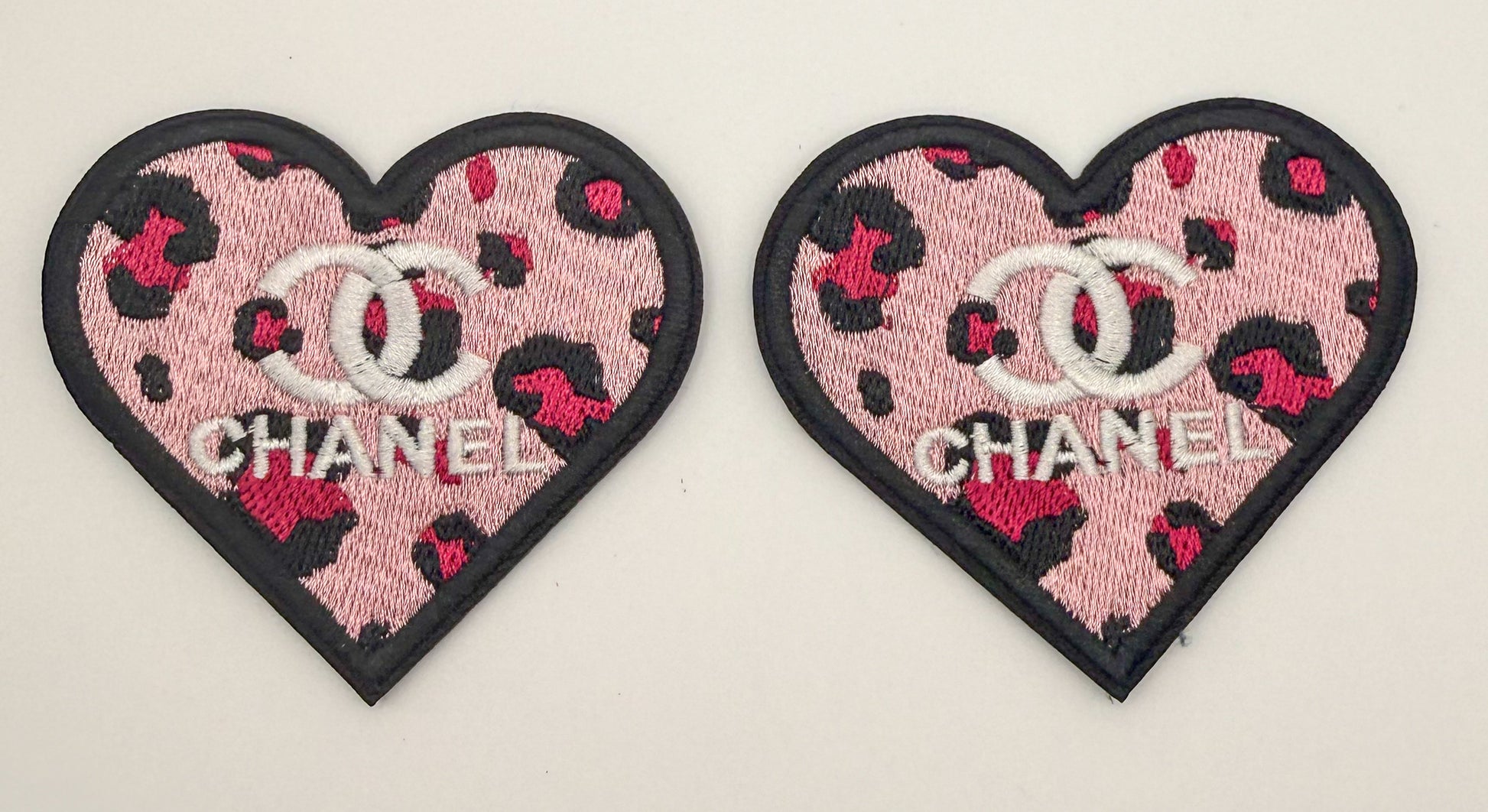 CC Pink Leopard Print Heart Glue On Sew On Fabric DIY Patches
