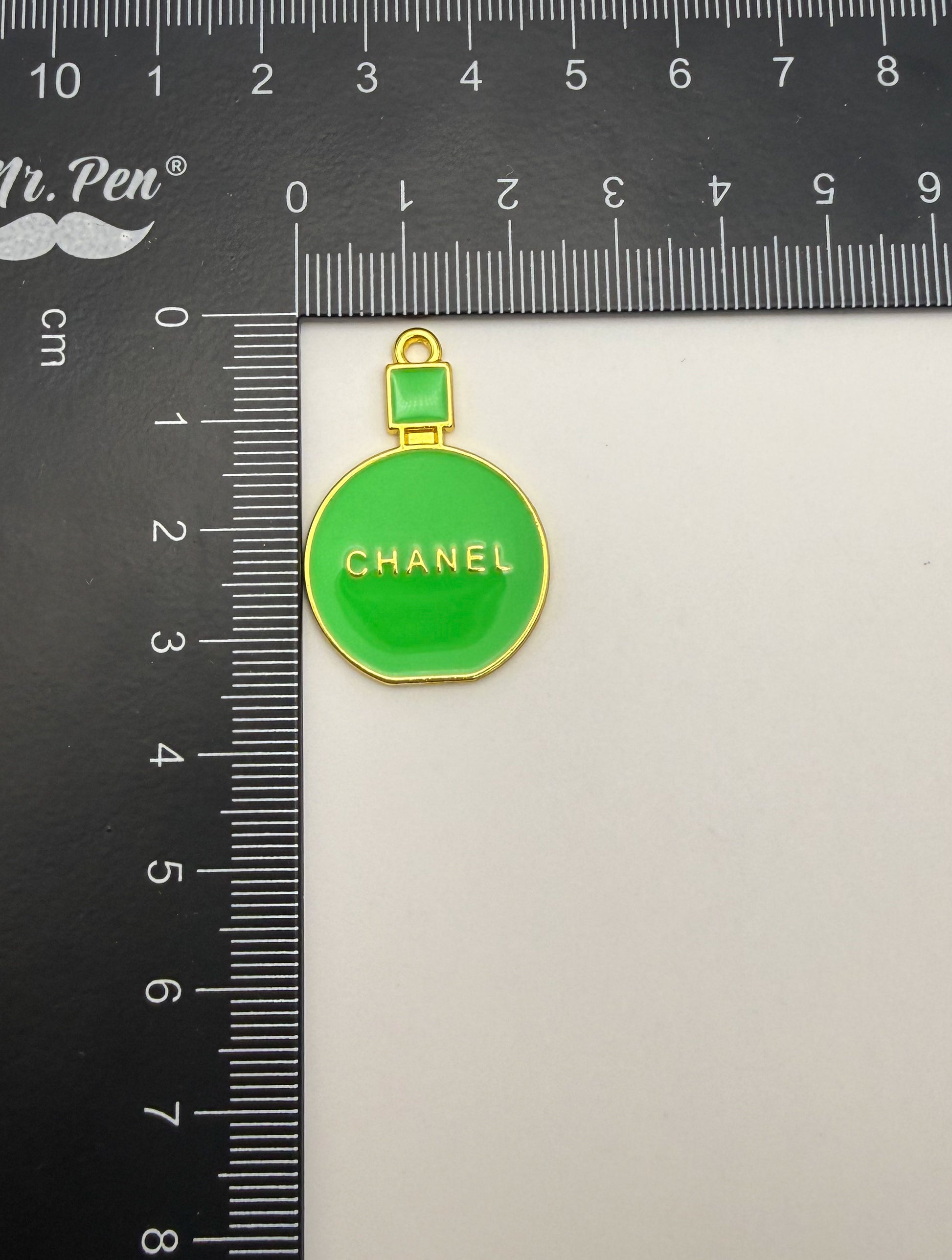 Chanel Perfume Bottle Silver & Gold Enamel Charm Pendants