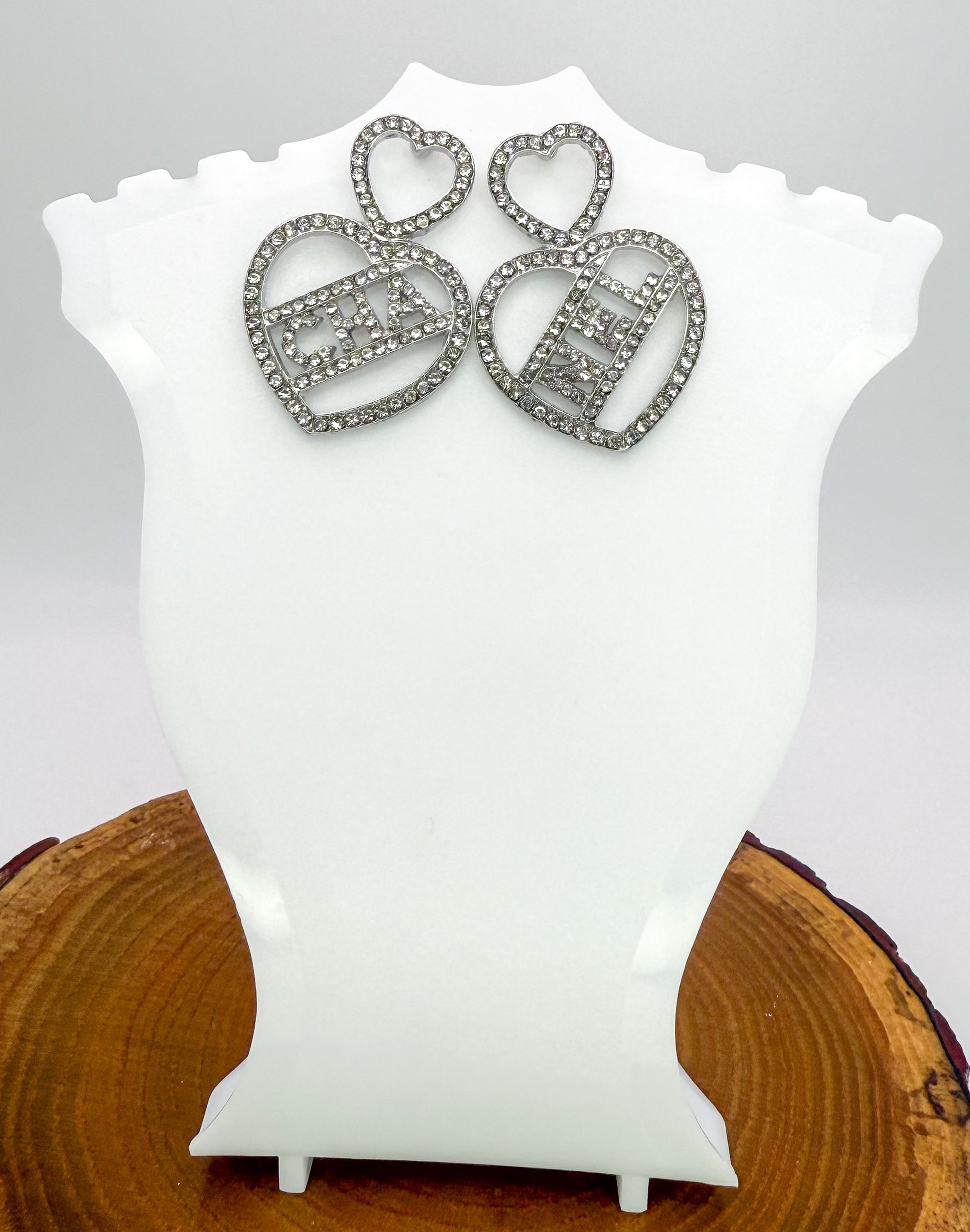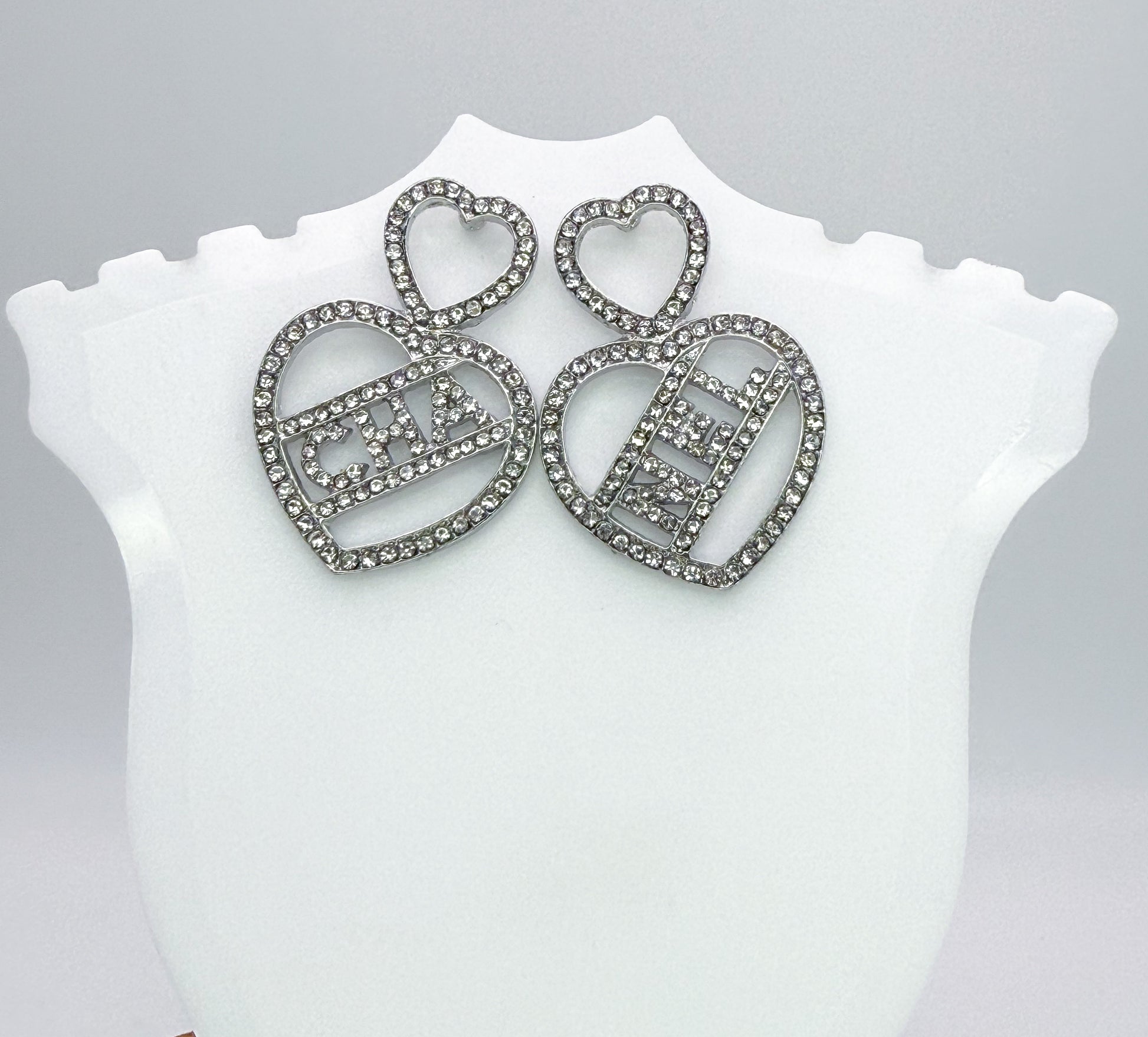 Chanel Designer Silver Bling Stud Statement Earrings