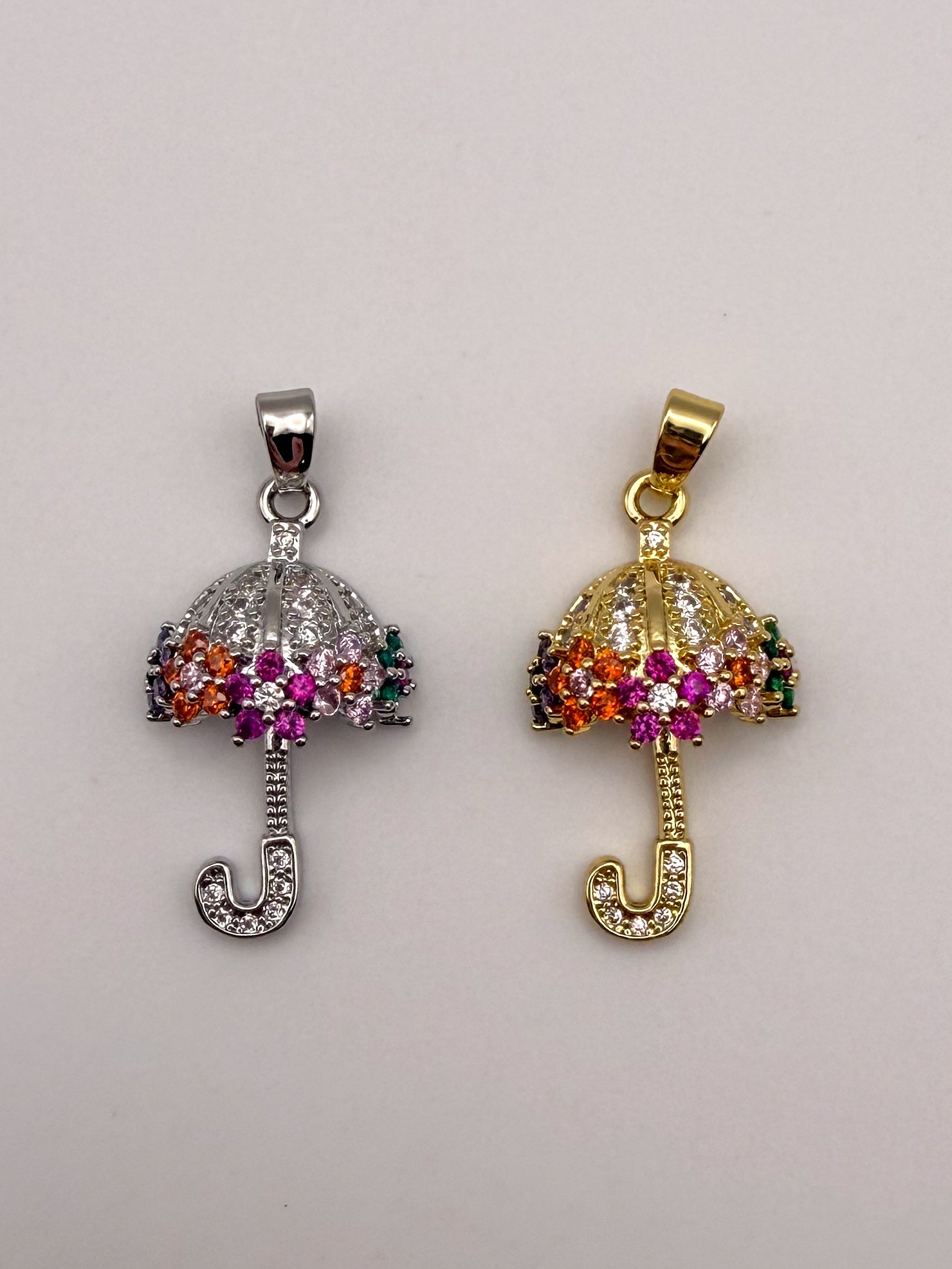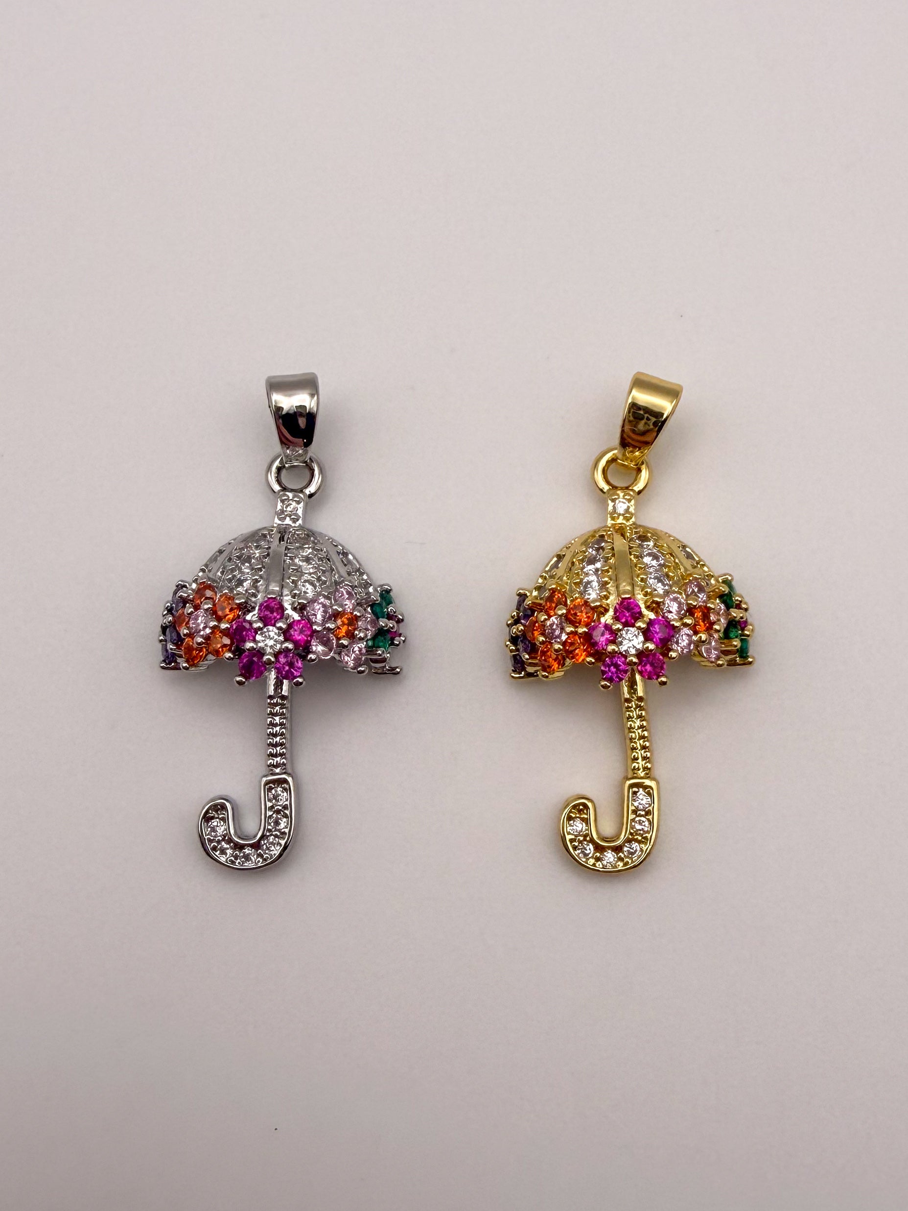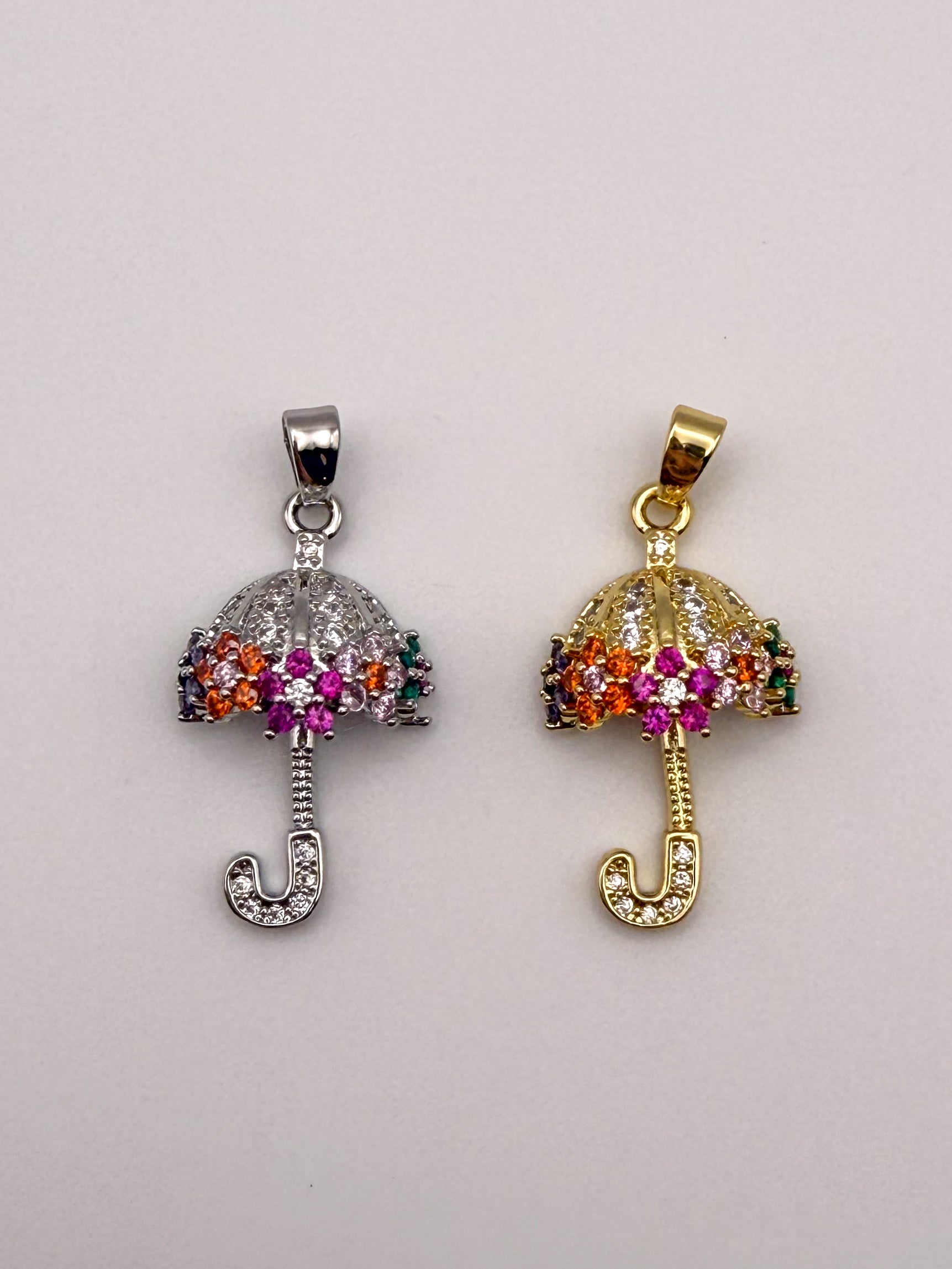 Colorful Zircon Gold & Silver Umbrella Charm Pendant