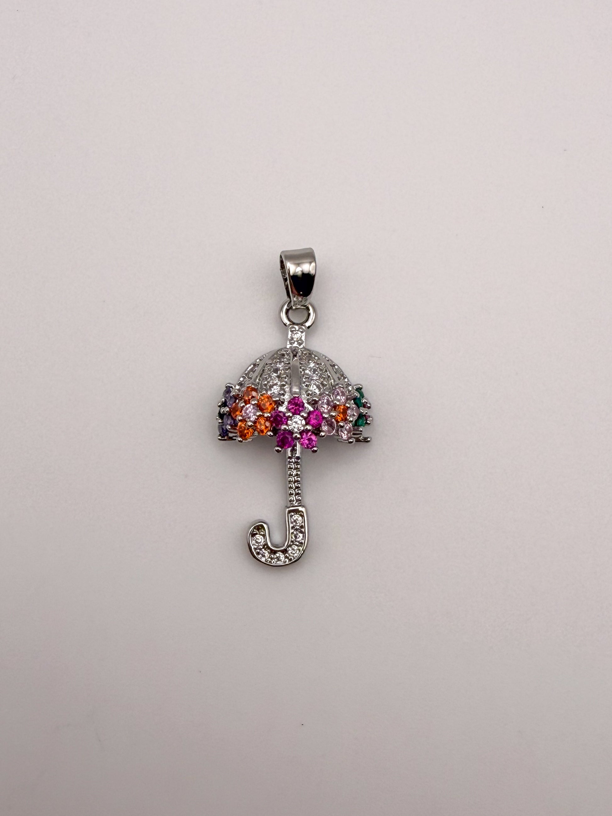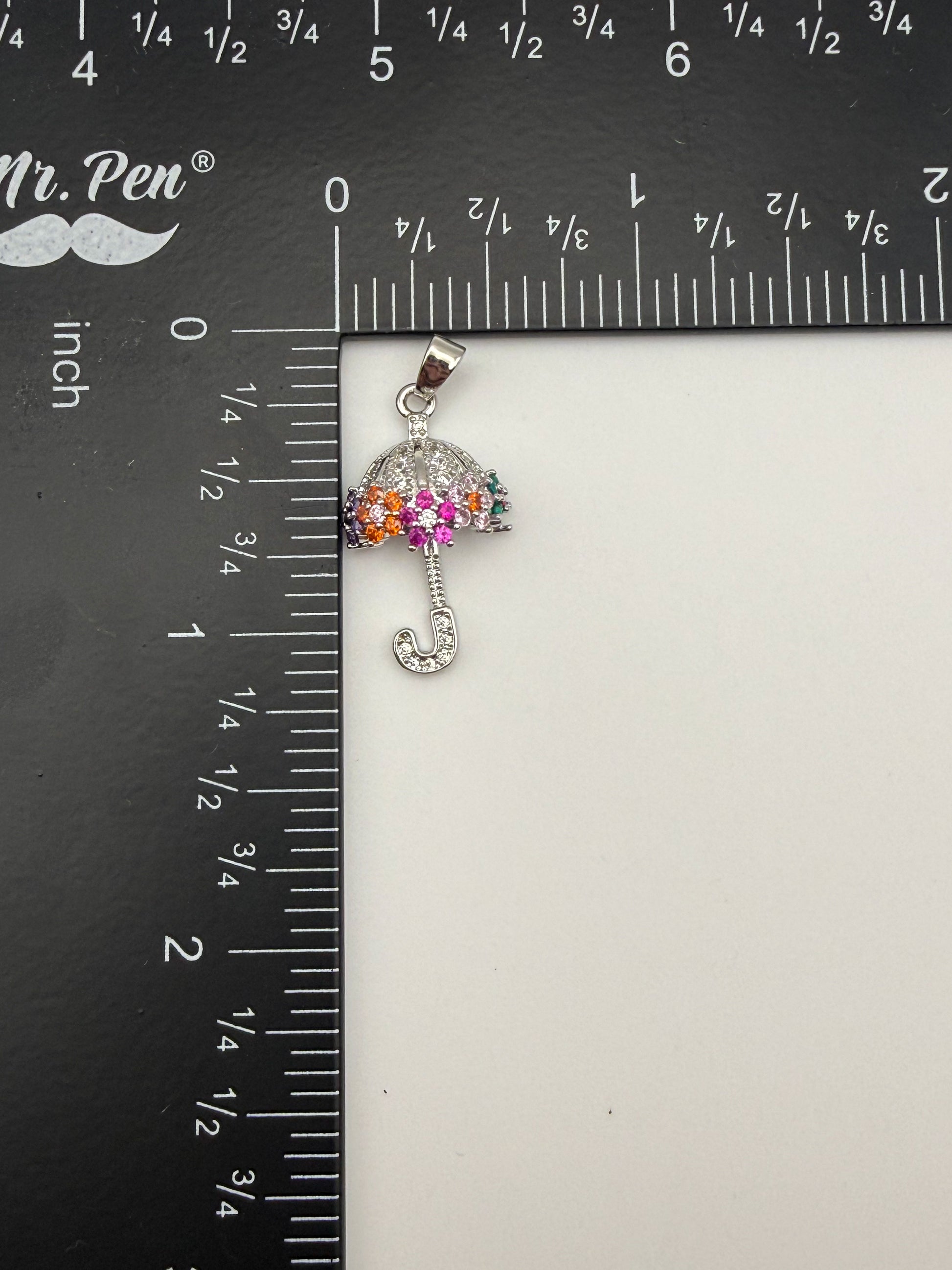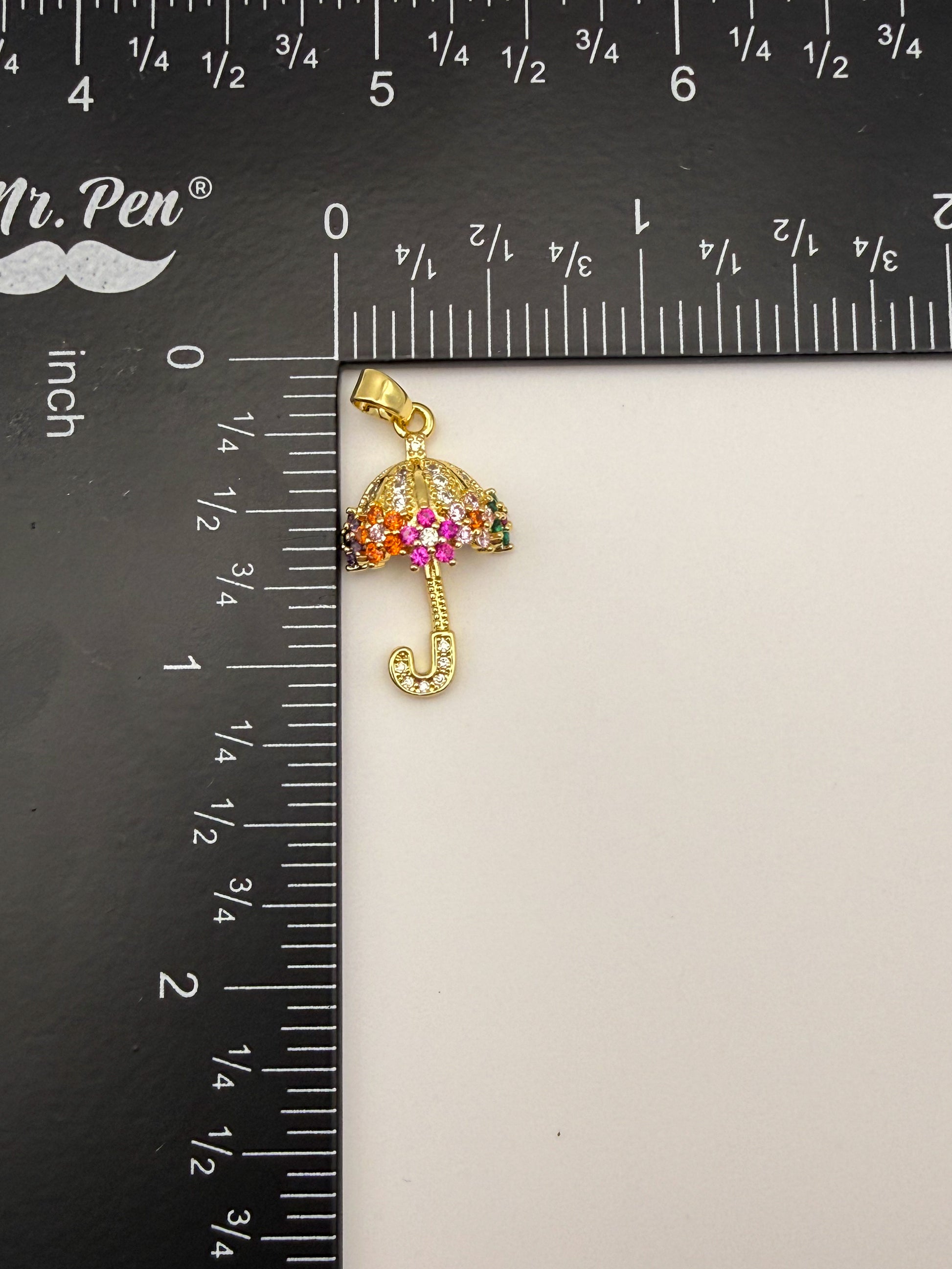 Colorful Zircon Gold & Silver Umbrella Charm Pendant
