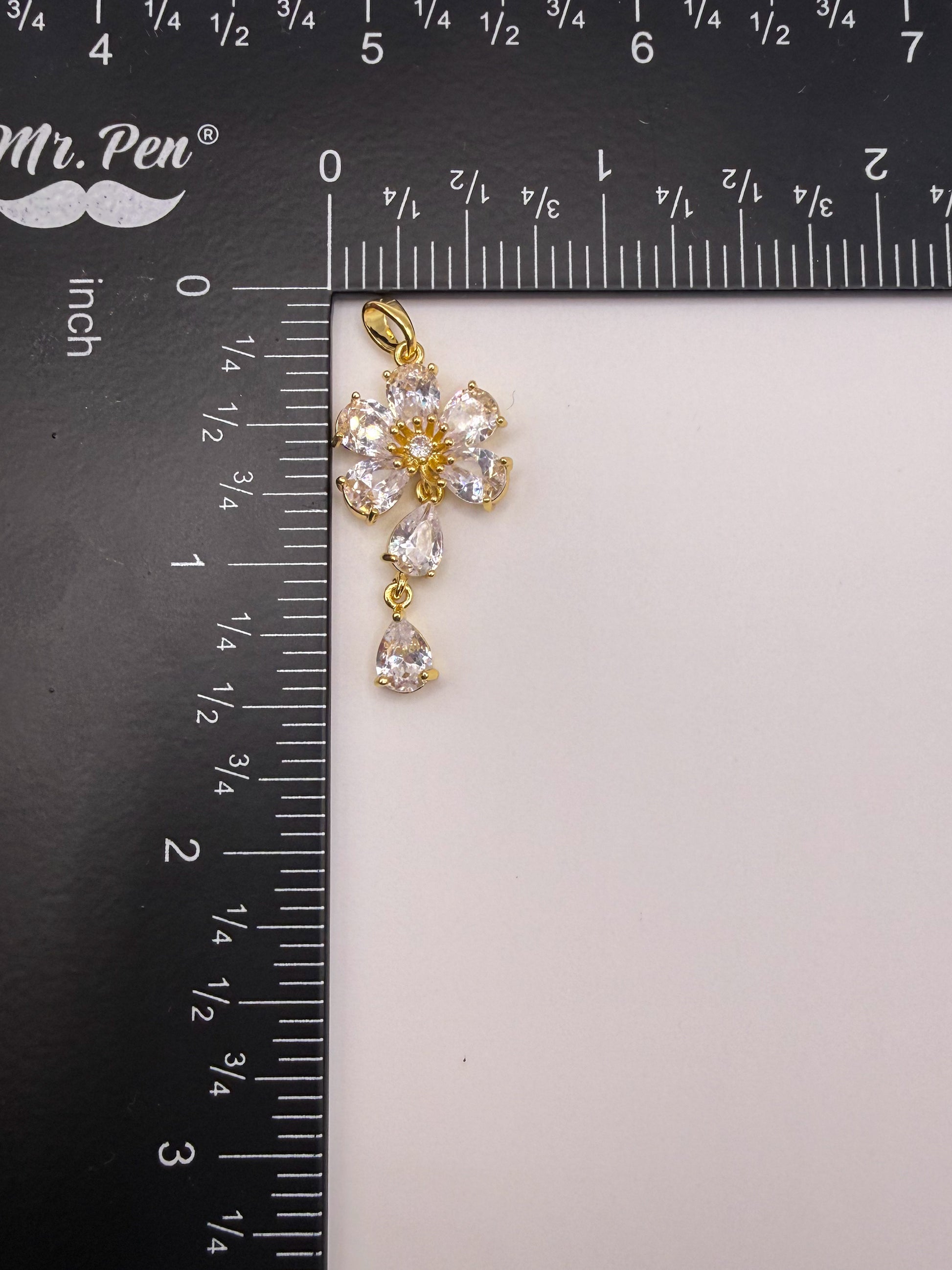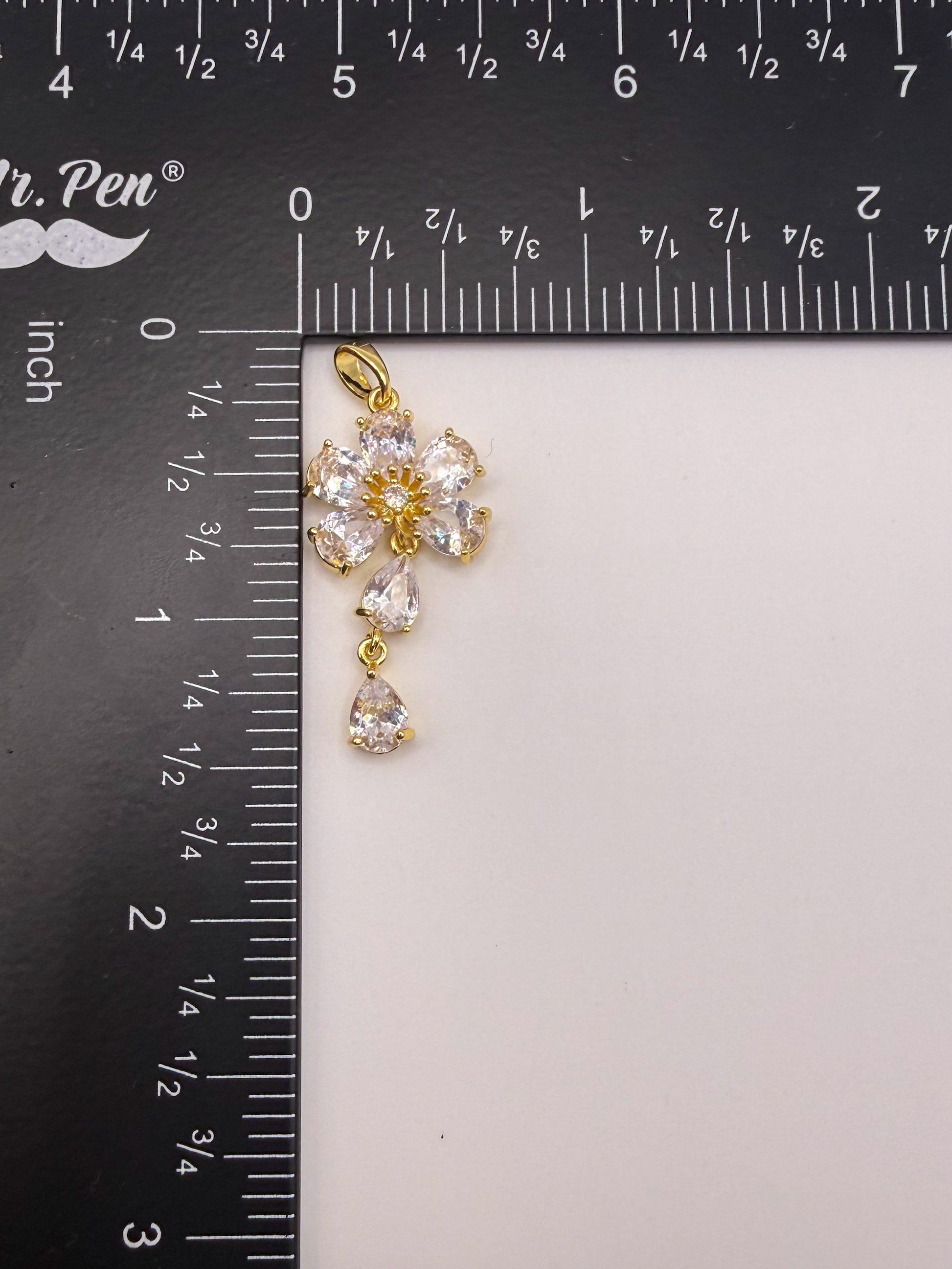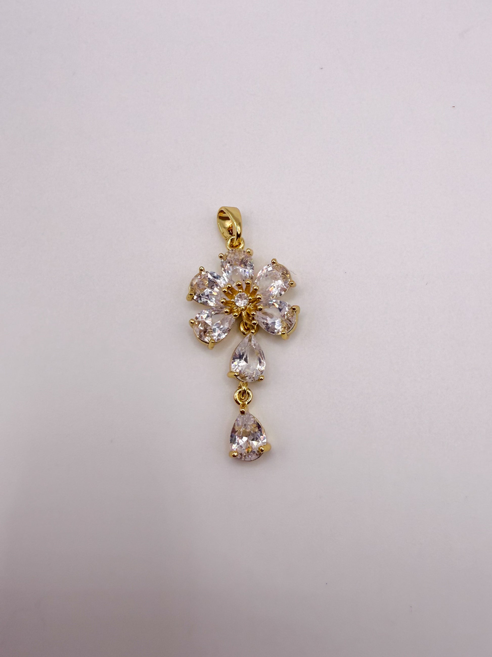 Dangling Zircon Flower Gold Charm Pendant