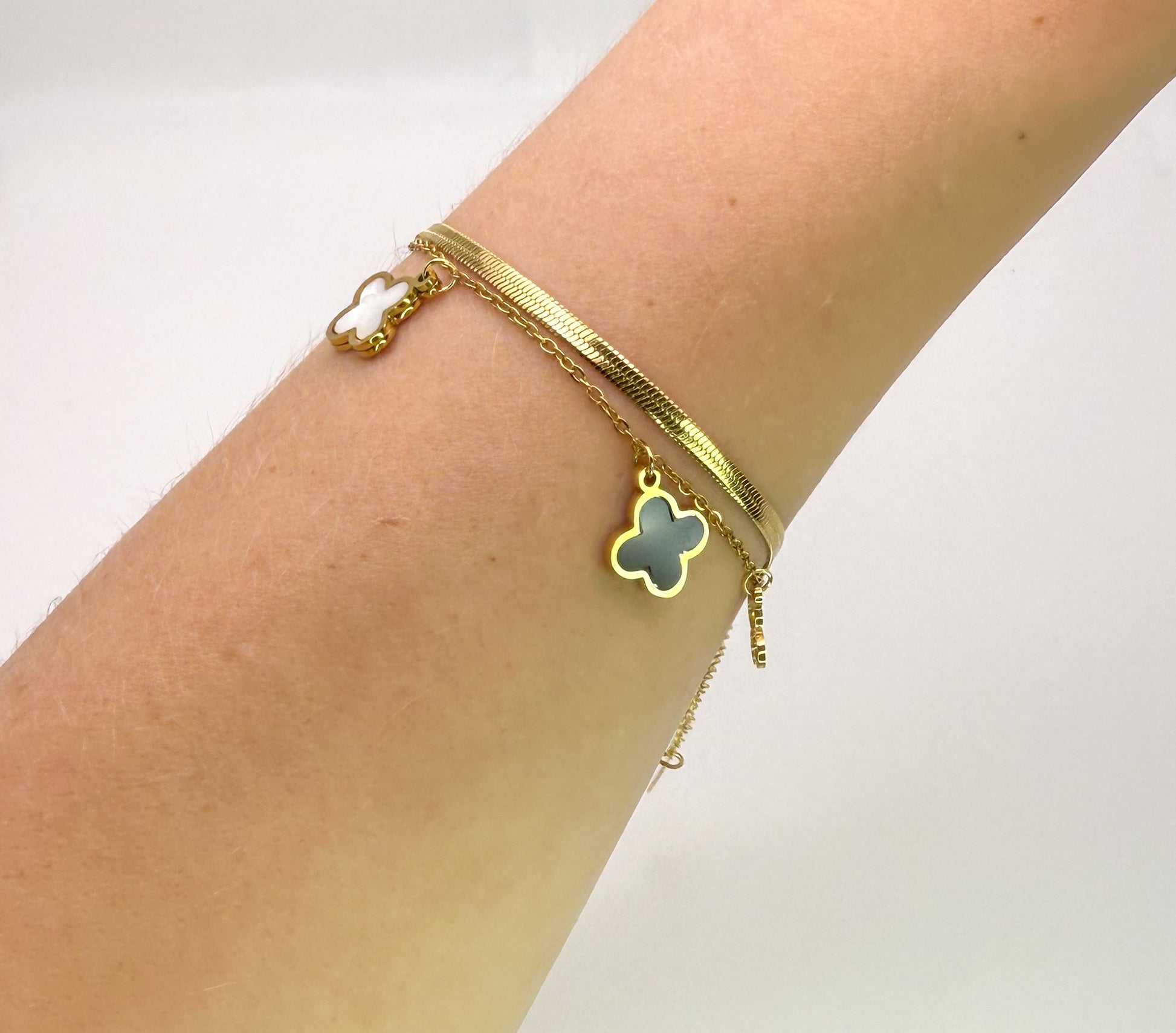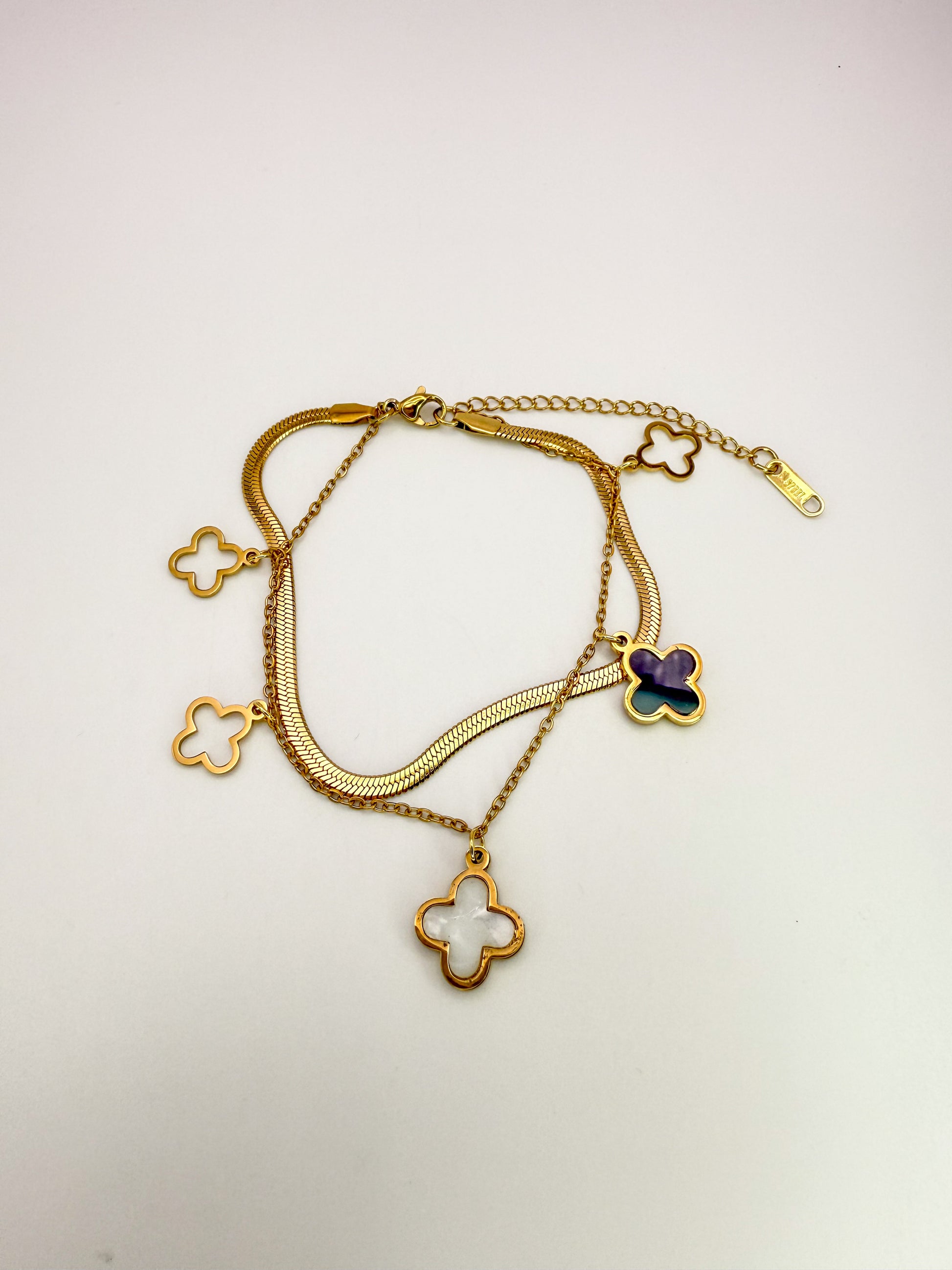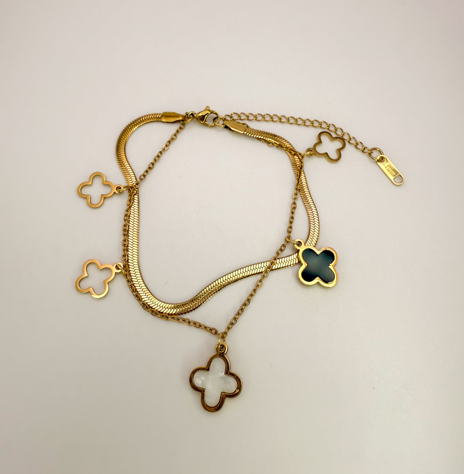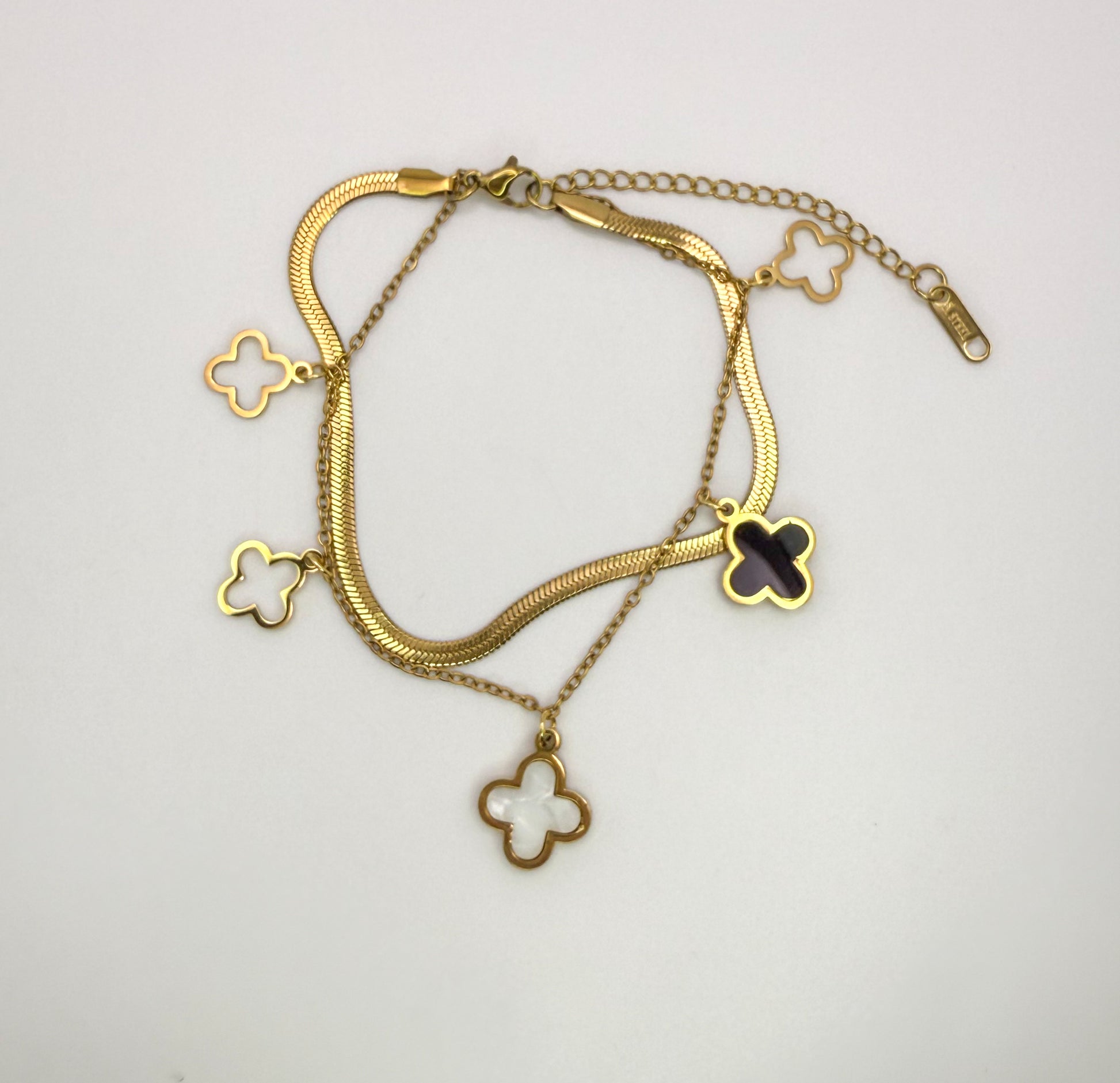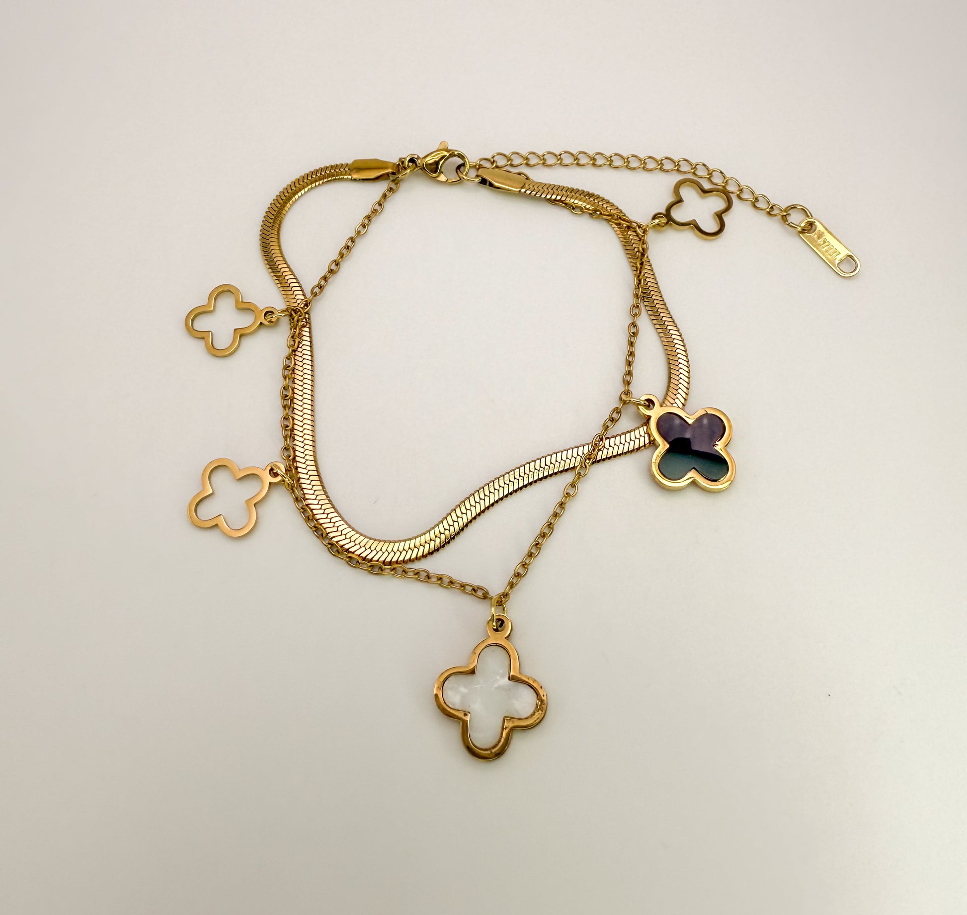 Double Layered Gold LV Designer Clover Design Adjustable Bracelet