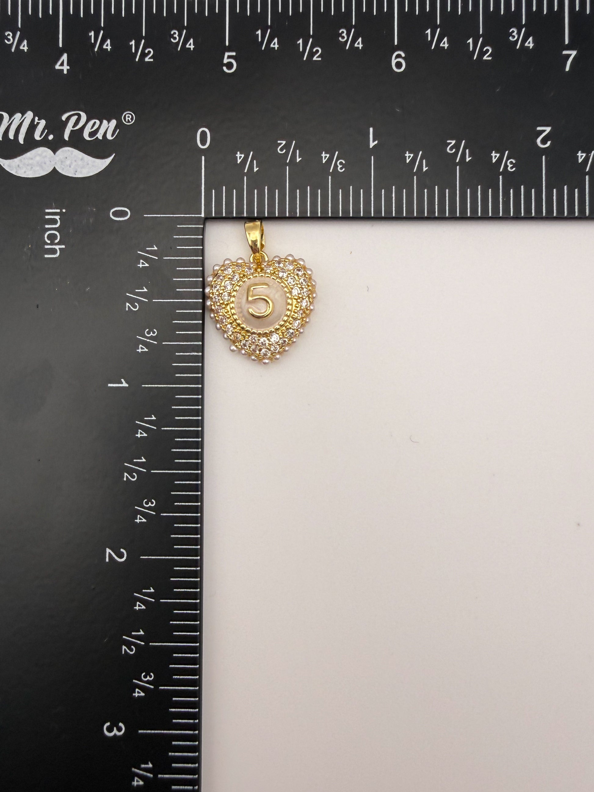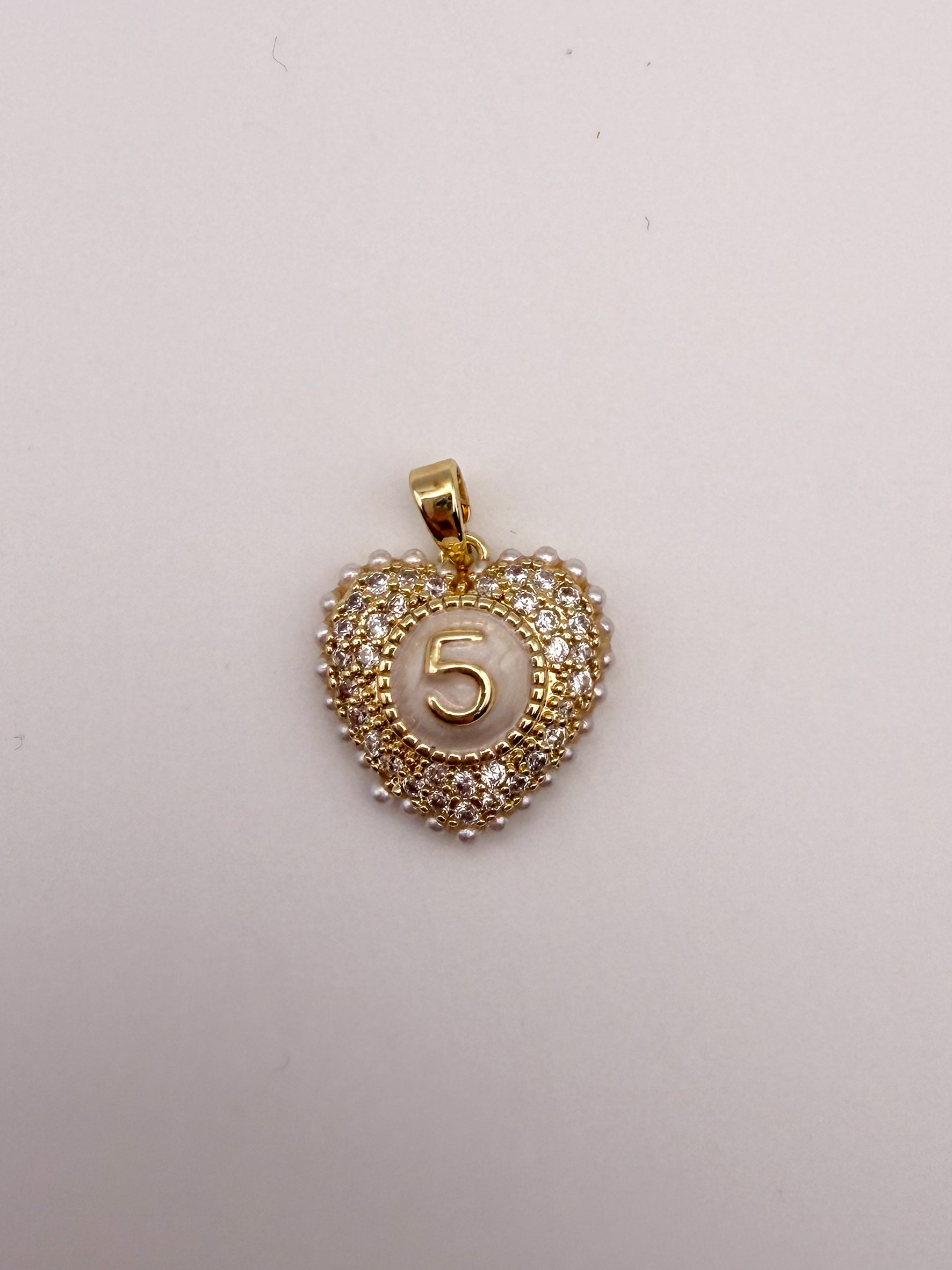 Gold #5 Heart Charm Pendant