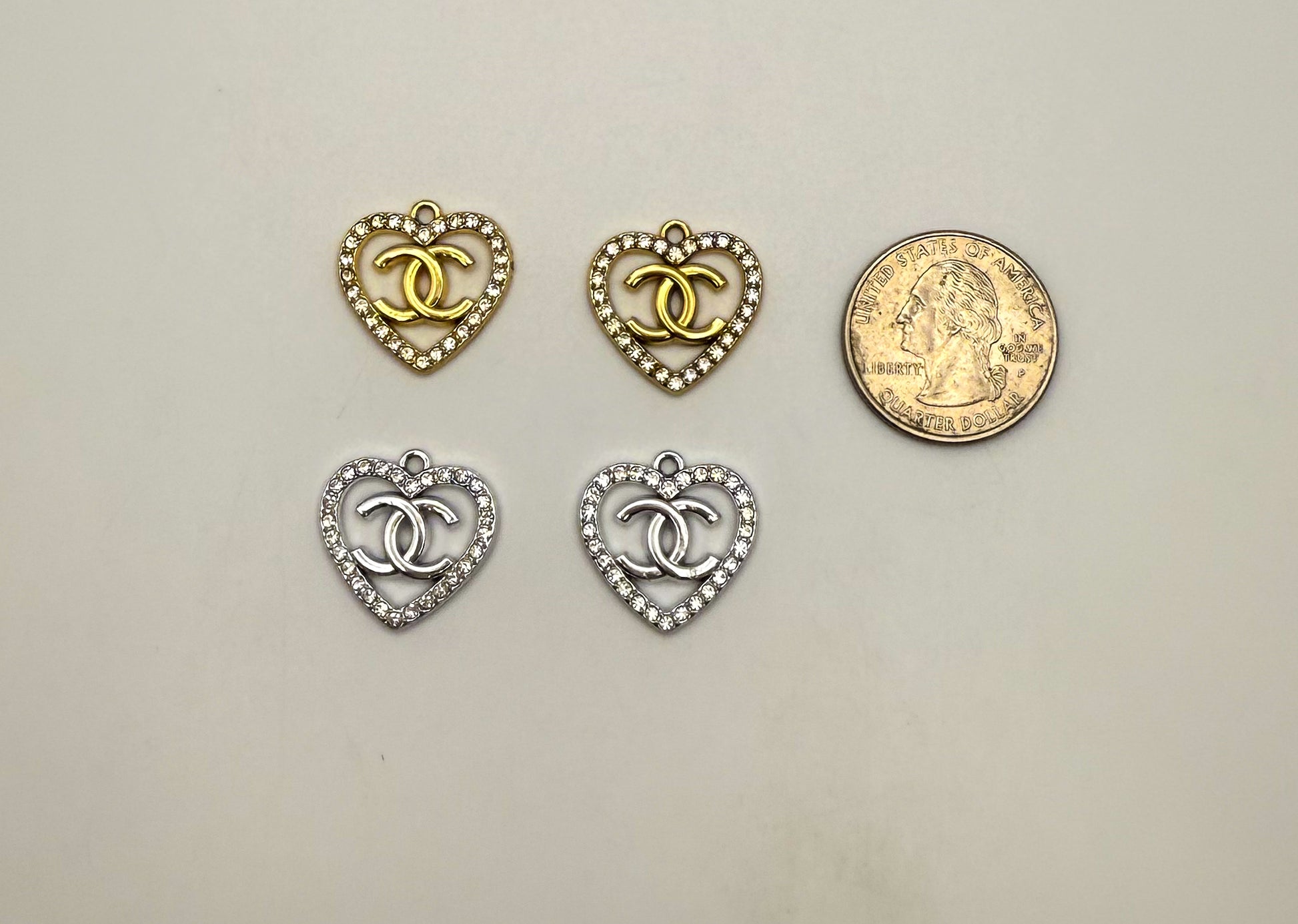 Gold and Silver CC Designer Heart DIY Charms