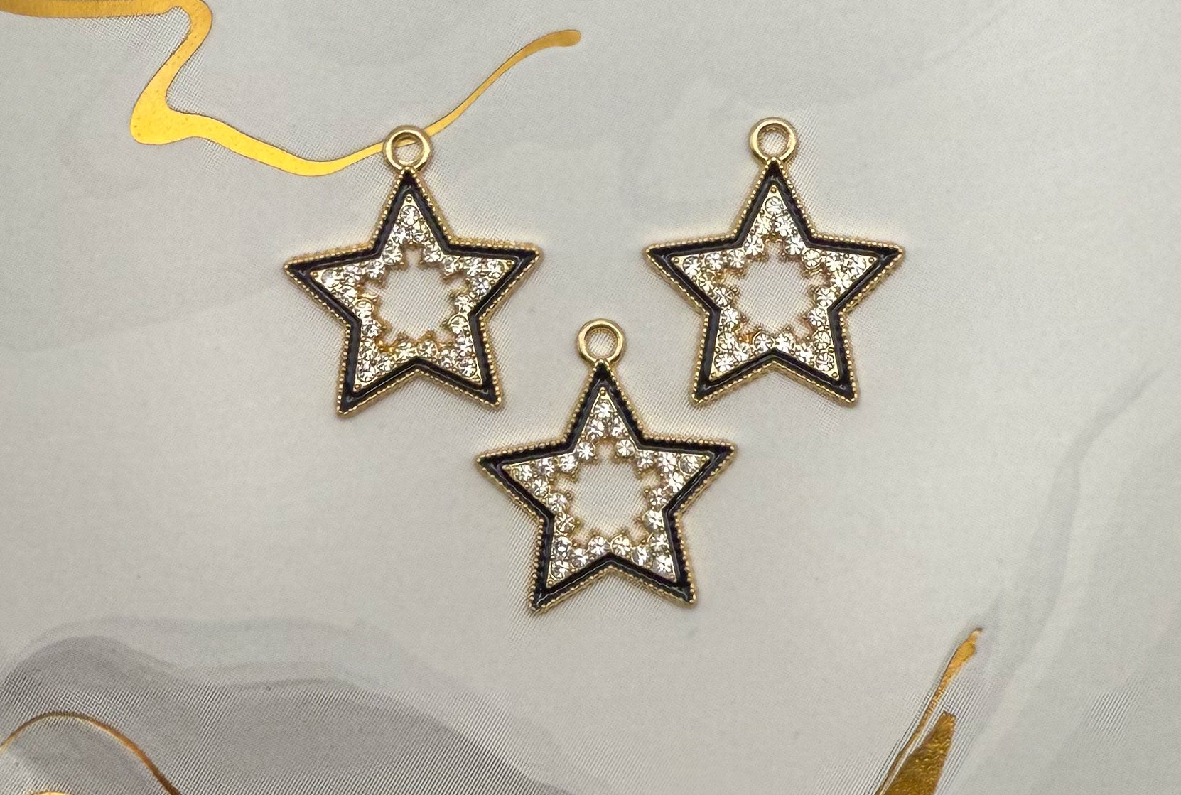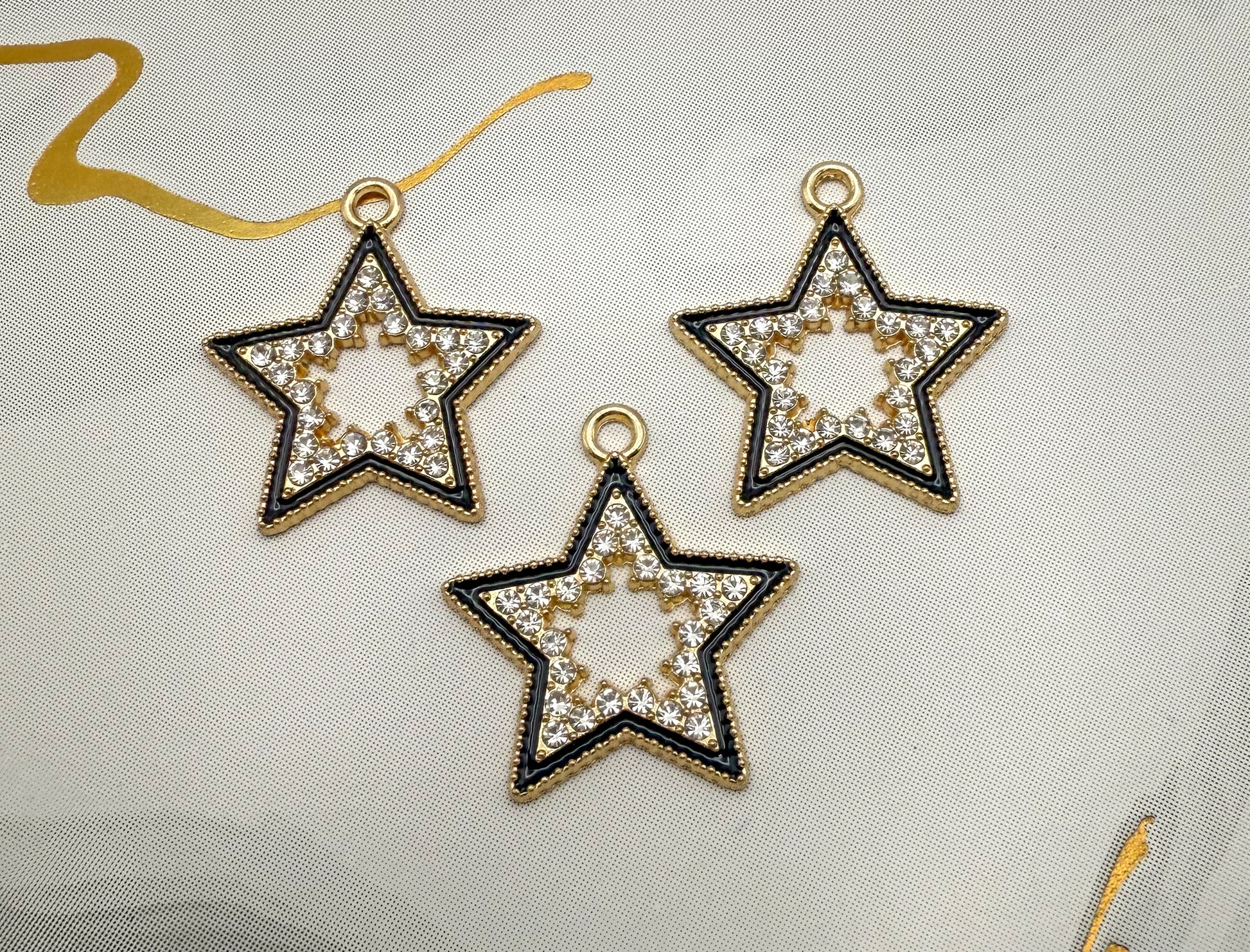 Gold & Black Bling Star DIY Charms