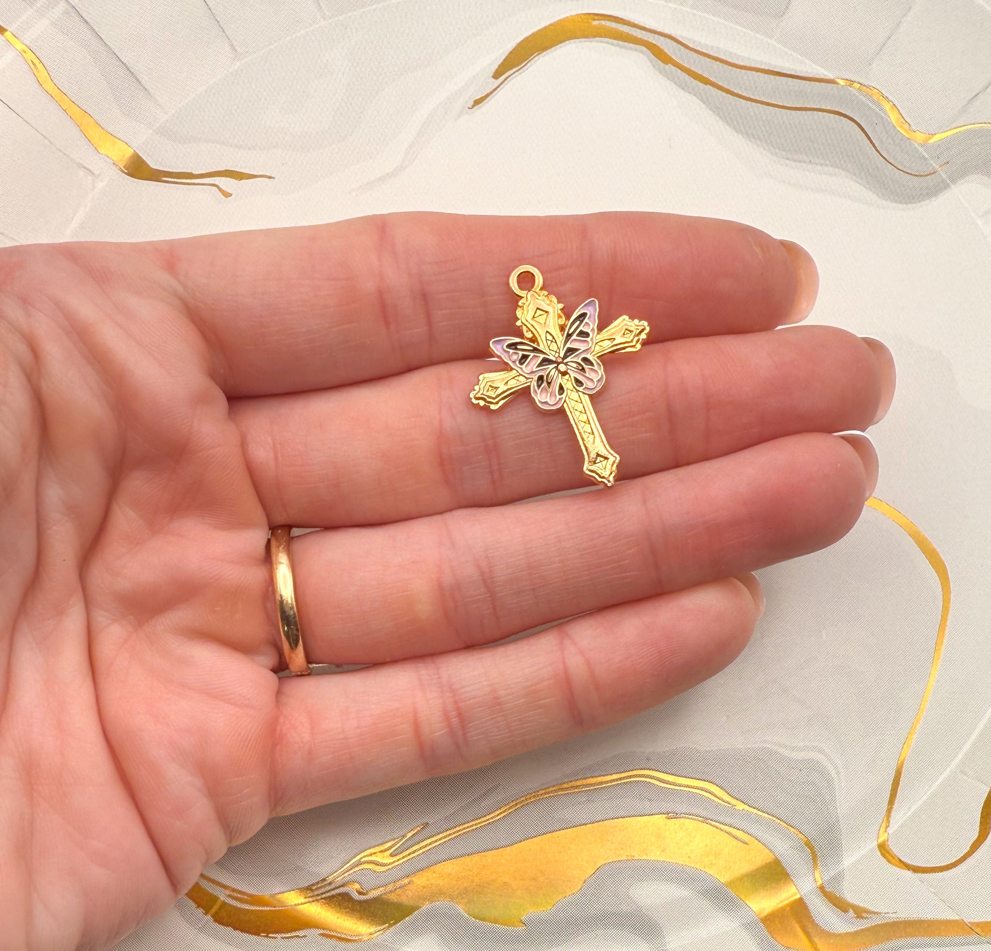 Gold Butterfly Cross DIY Metal Charms