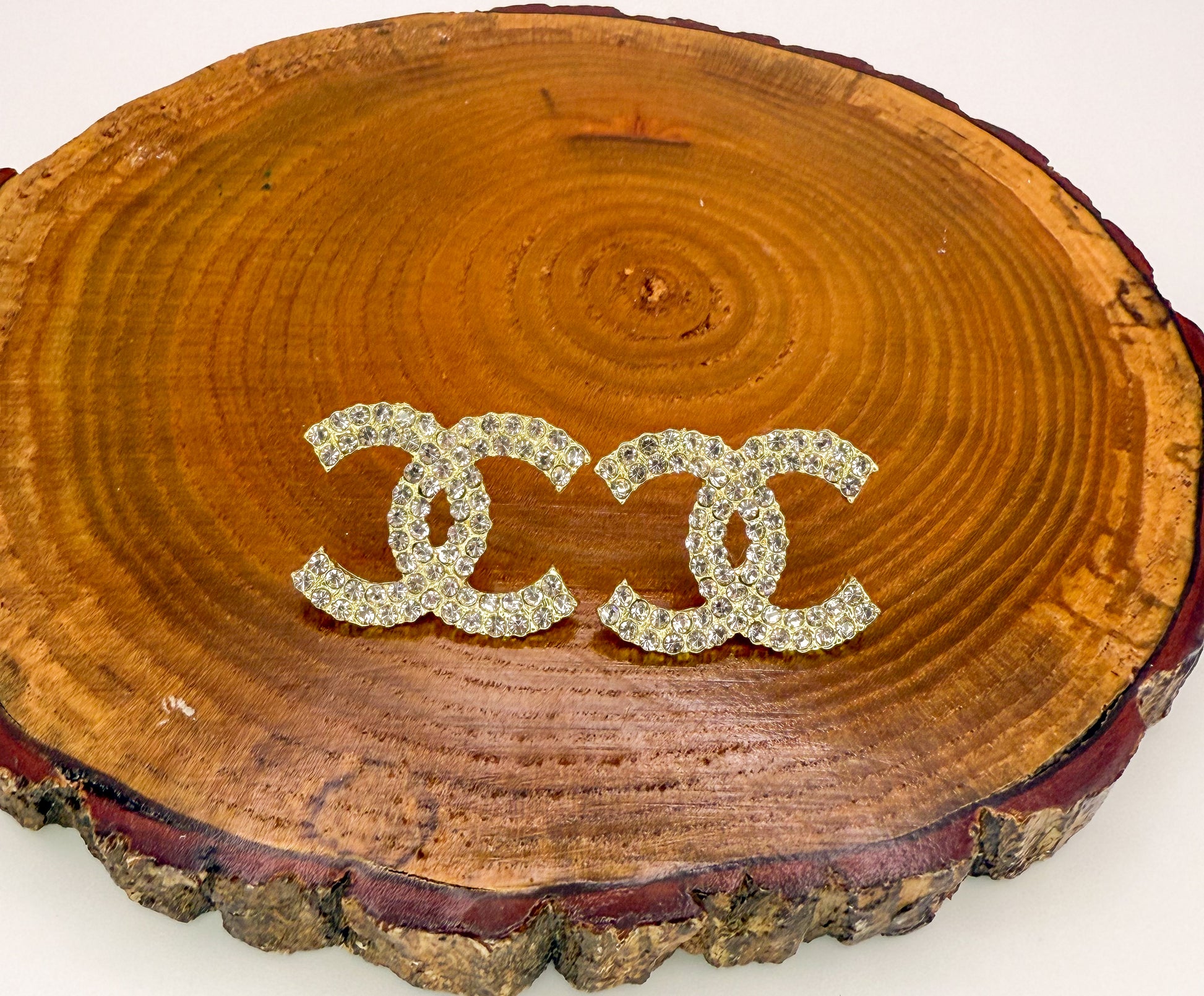 Gold CC Statement Bling Stud Earrings