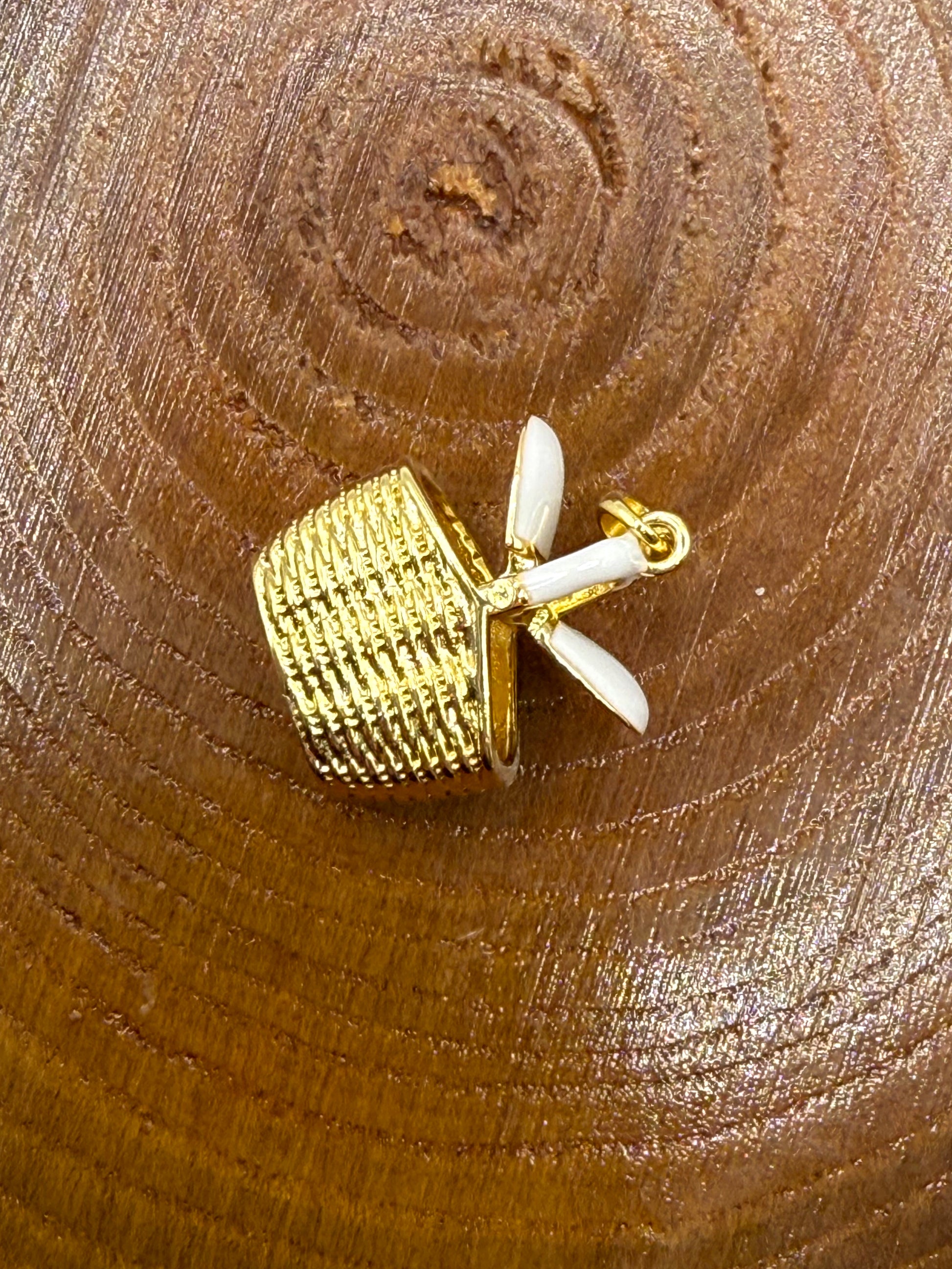 Gold Picnic Basket Charm Pendant