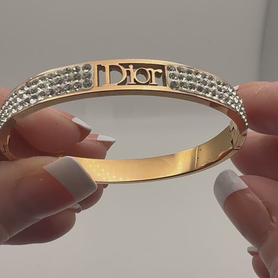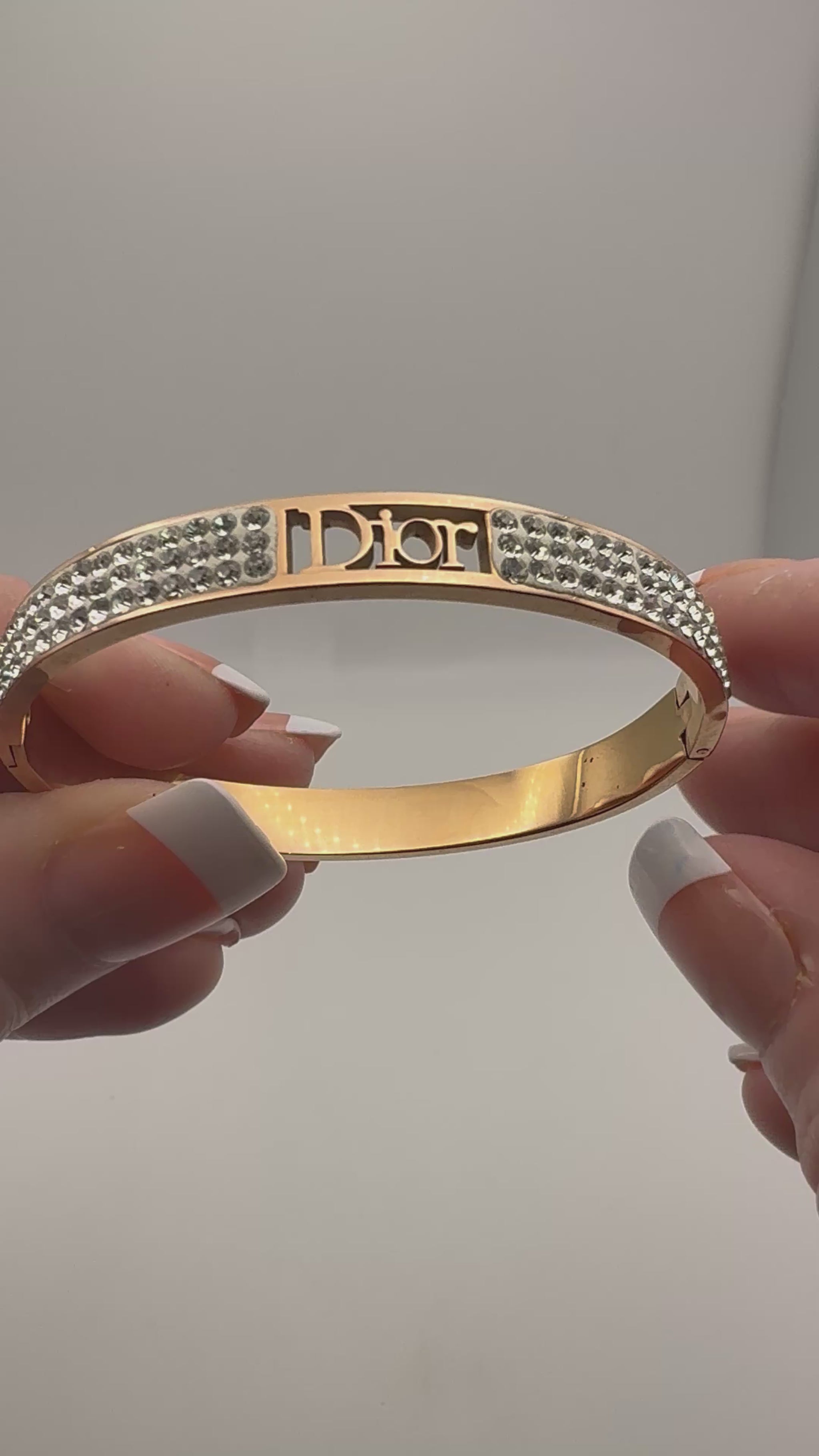 Gold Sparkly Dior Stainless Steel Bangle Bracelet