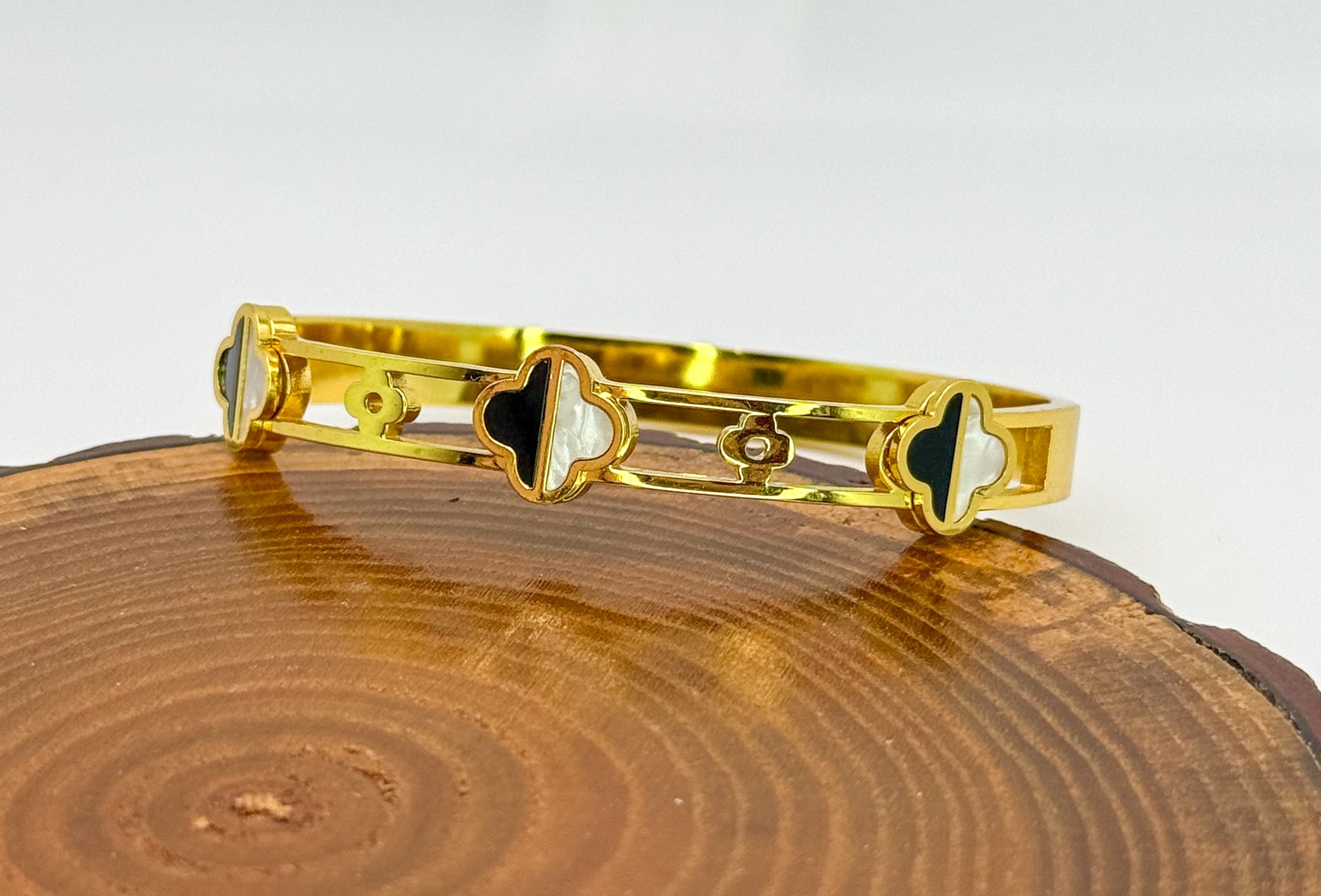 Gold Stainless Steel LV Designer clover Bangle Bracelet