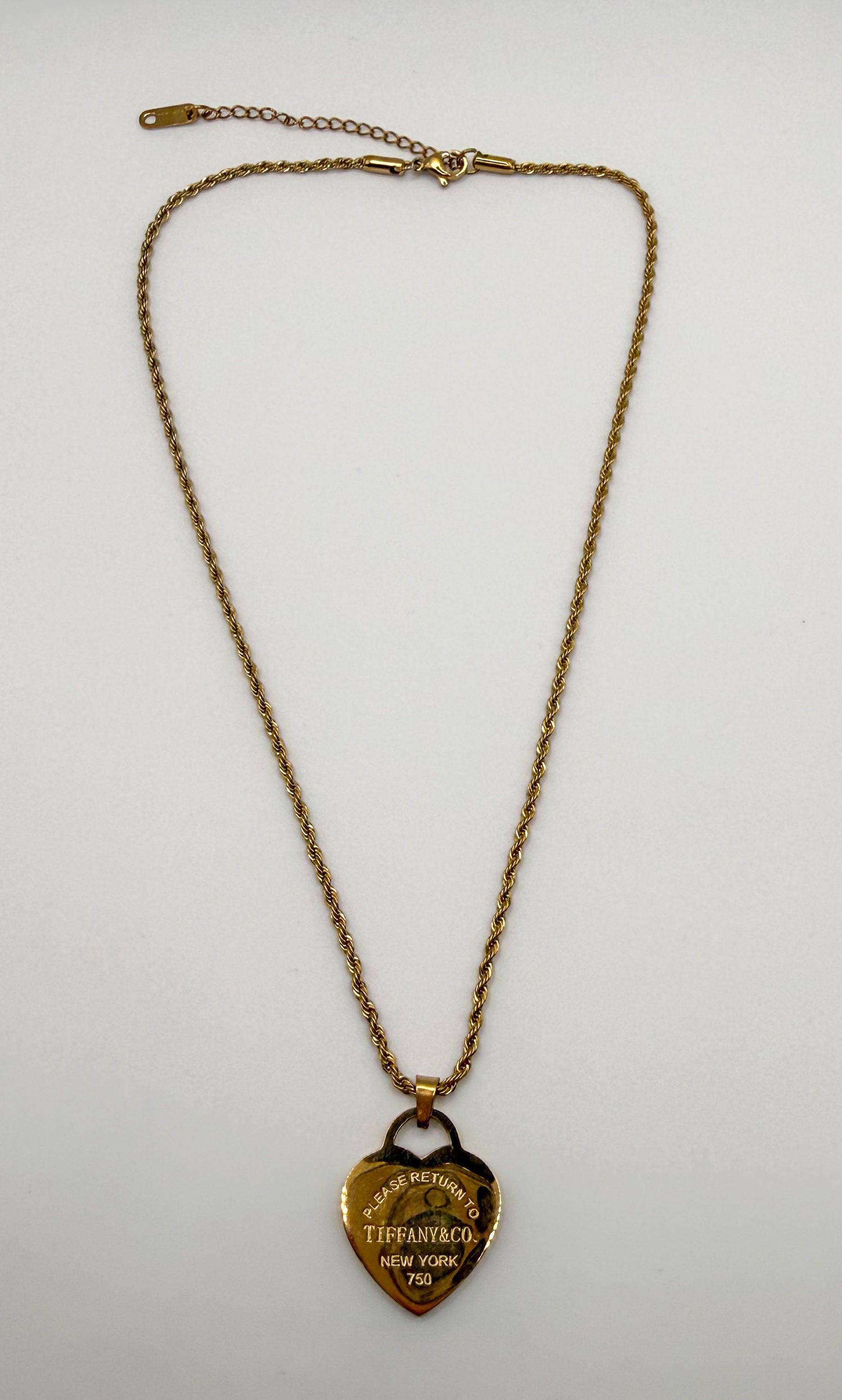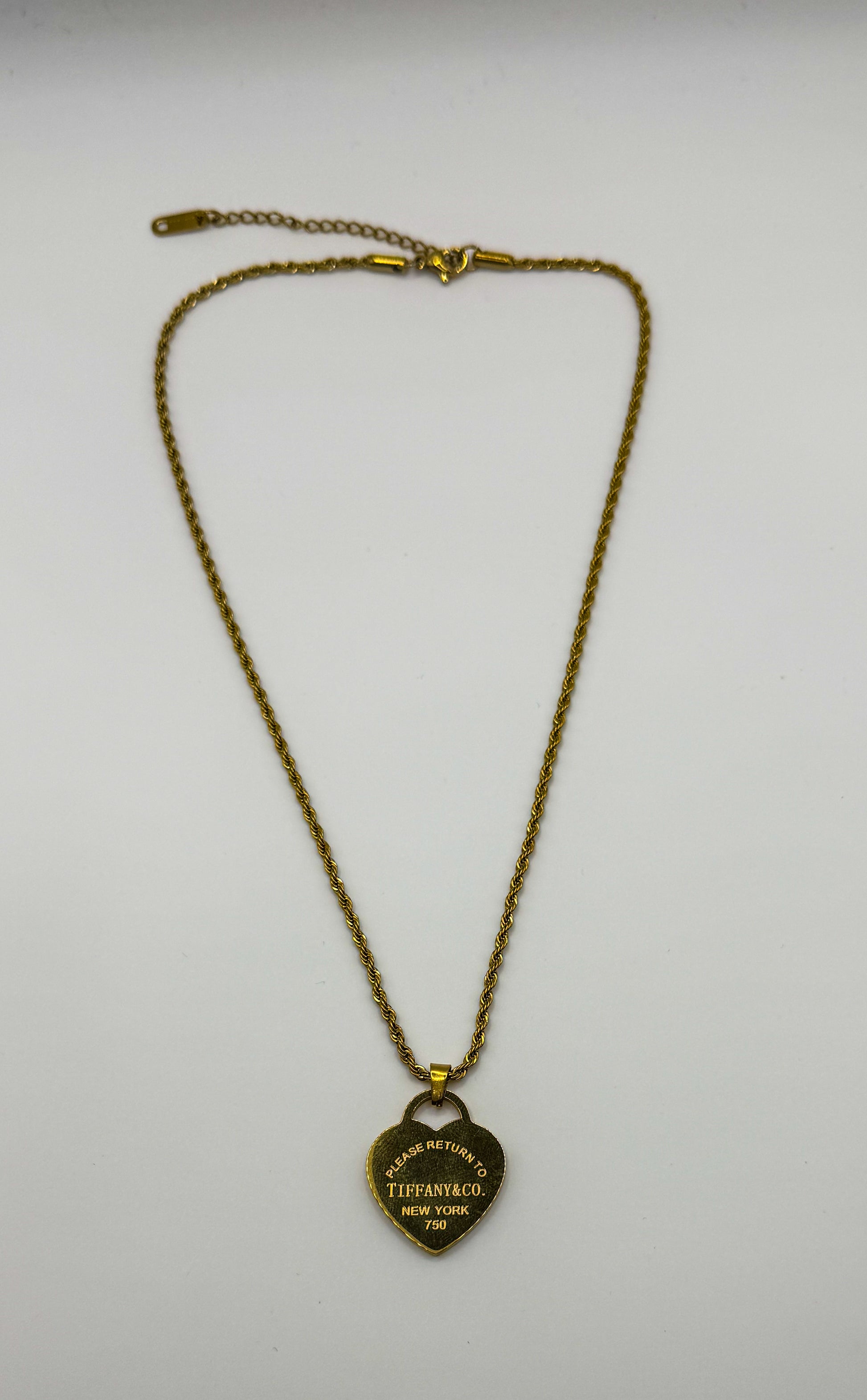 Gold Stainless Steel T&Co Heart Pendant Twist Rope Chain Necklace
