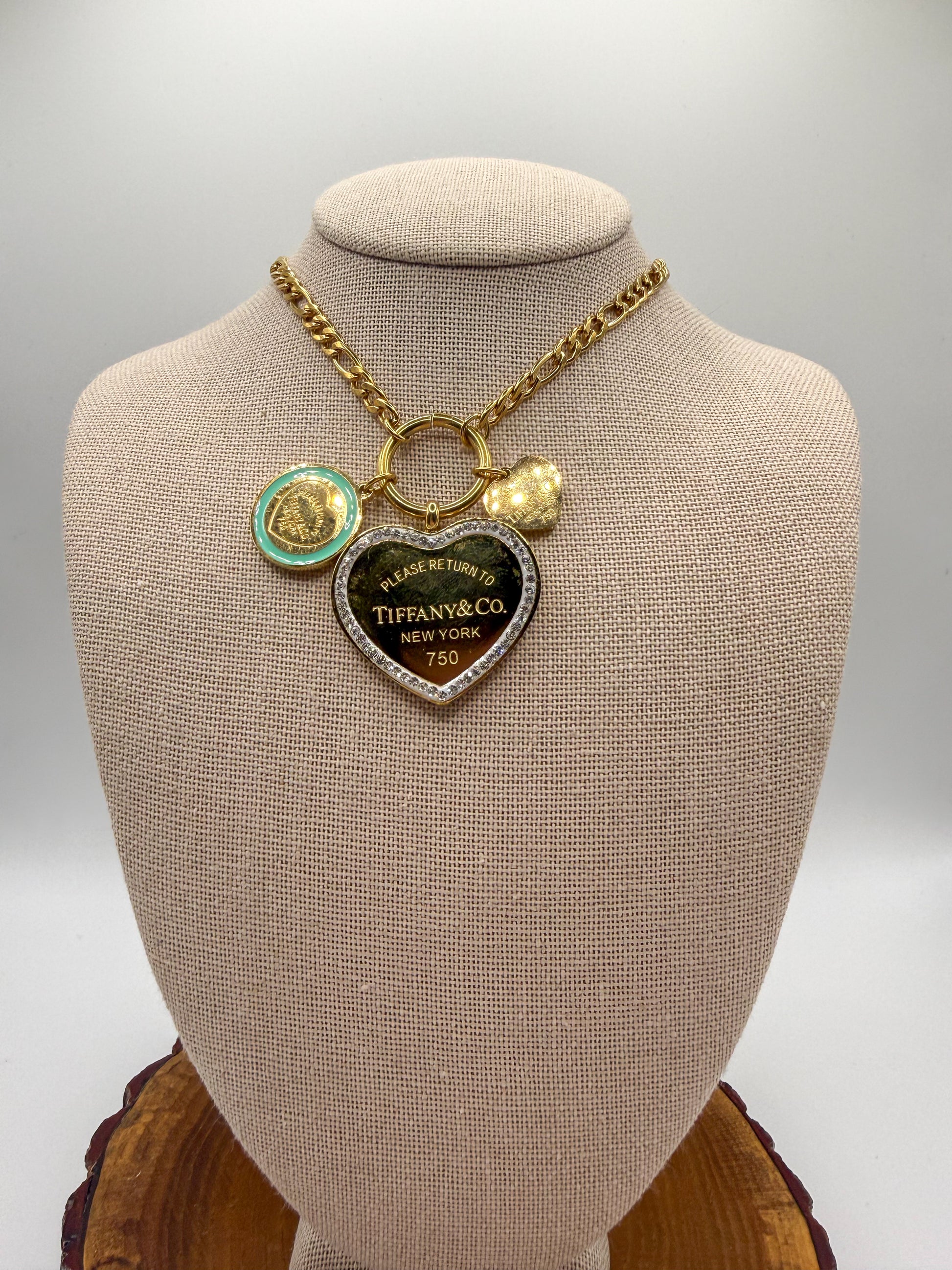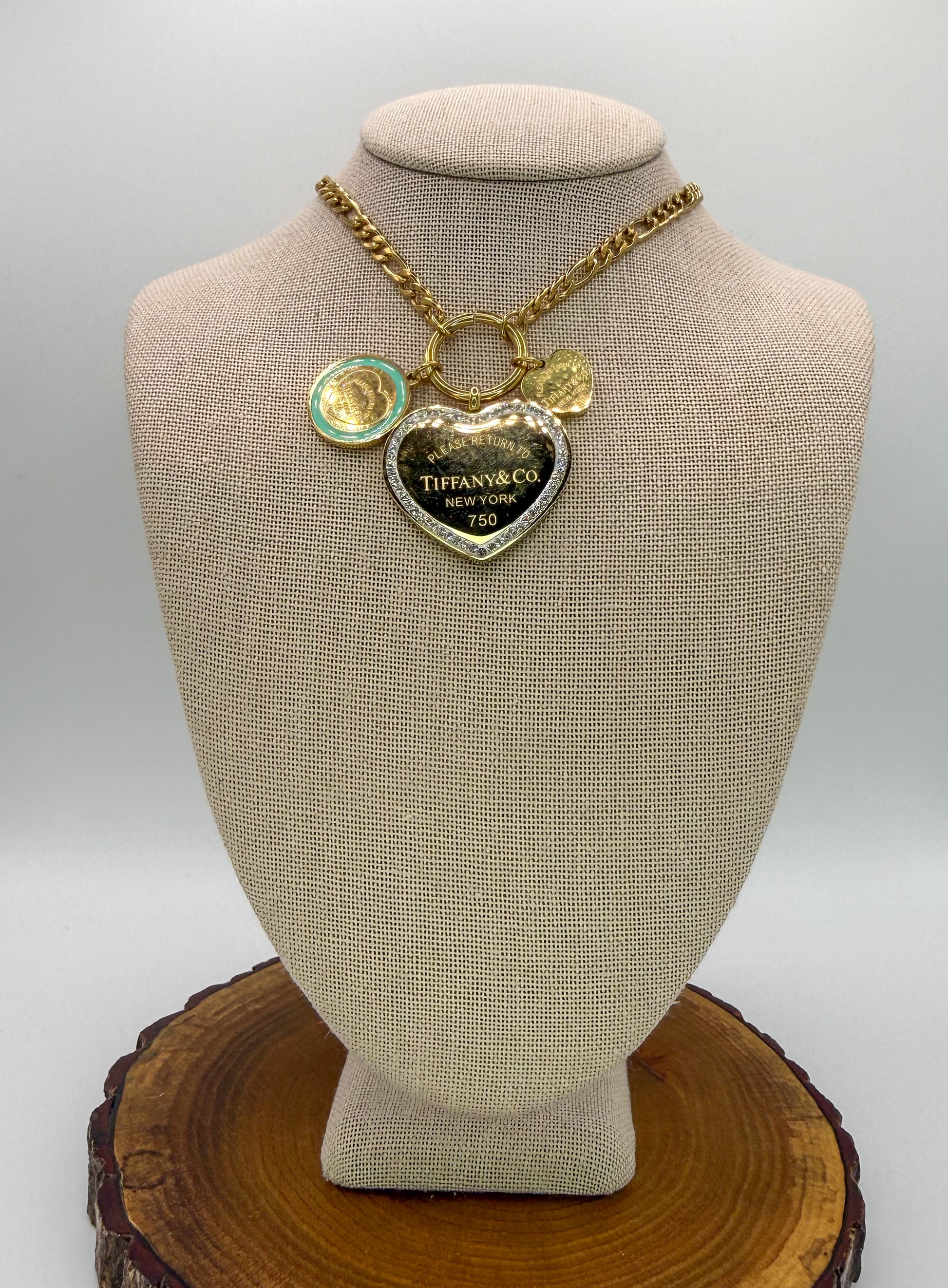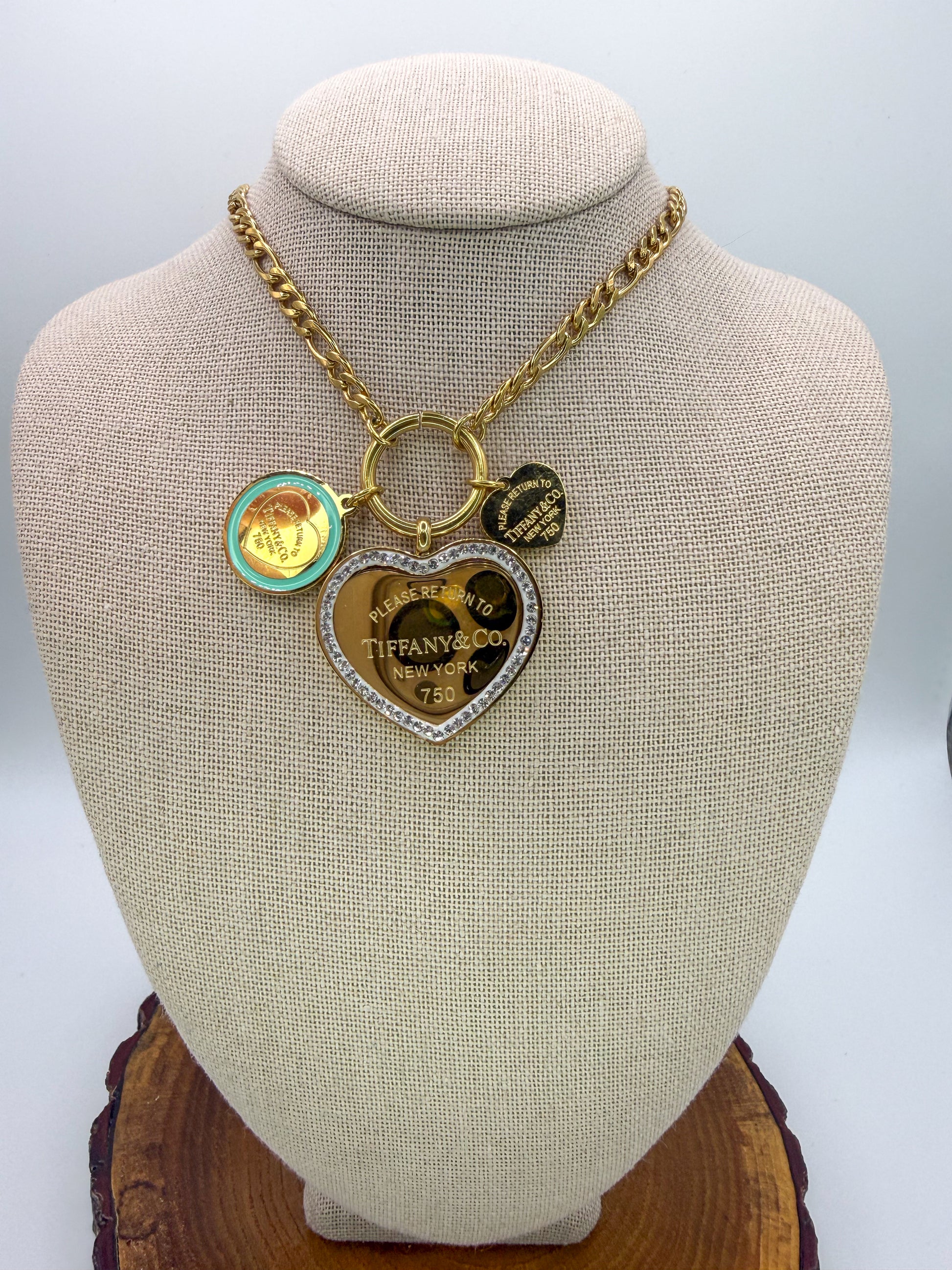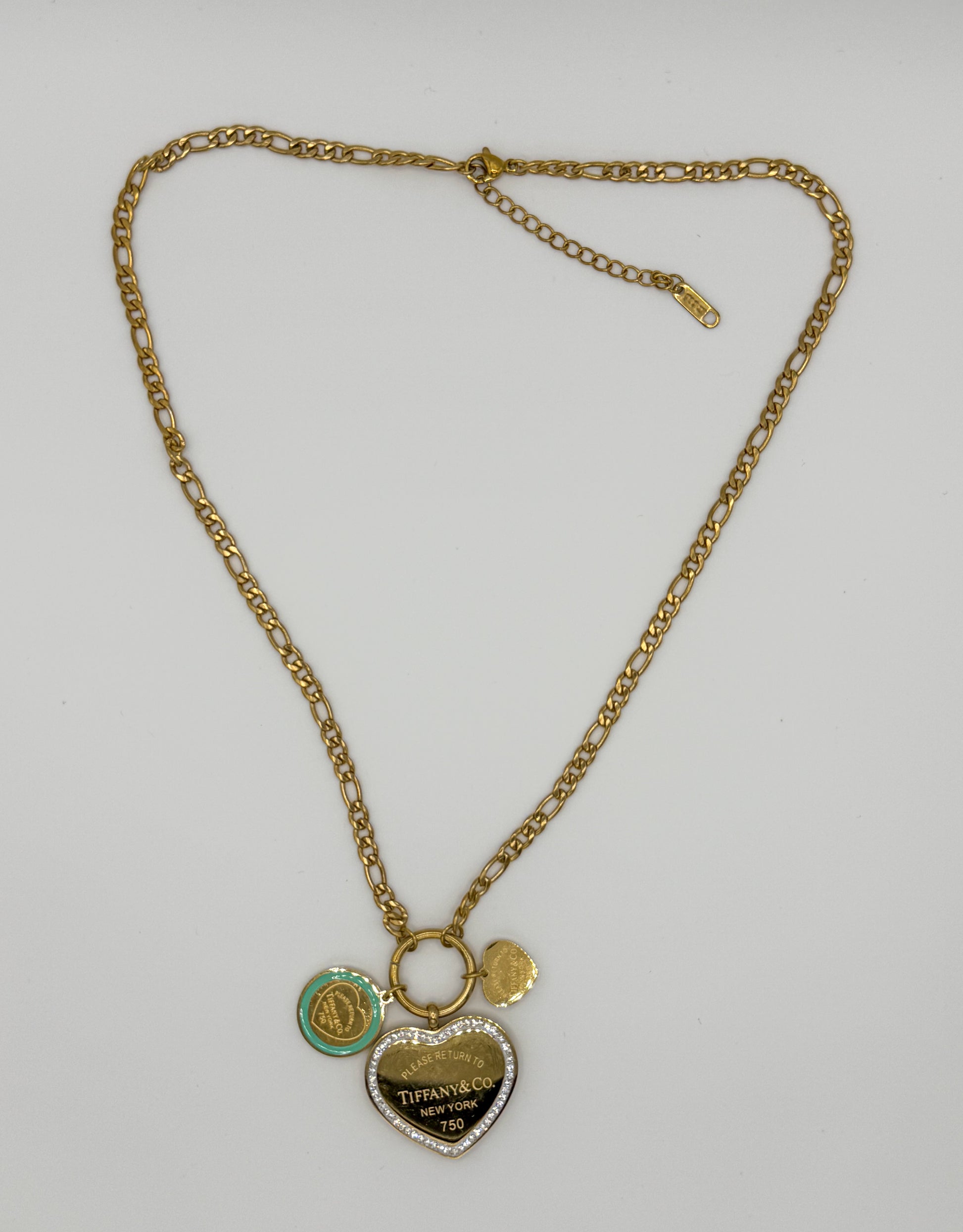 Gold T&Co Trio Charm Stainless Steel Pendant Necklace