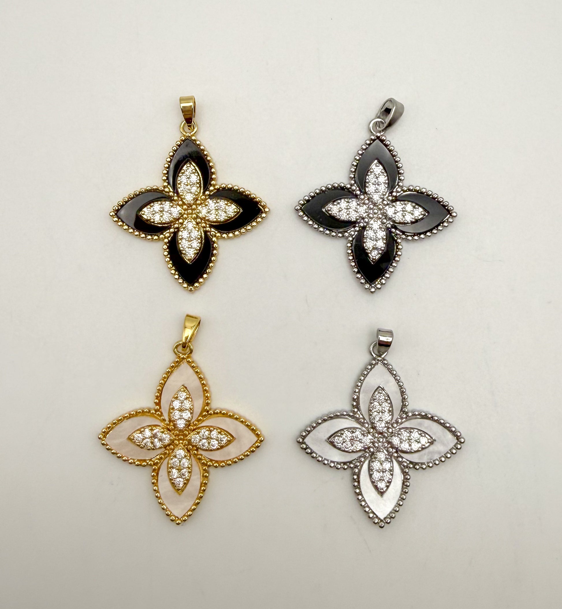 LV Inspired Clover Design Pendants with Natural Shell Inserts