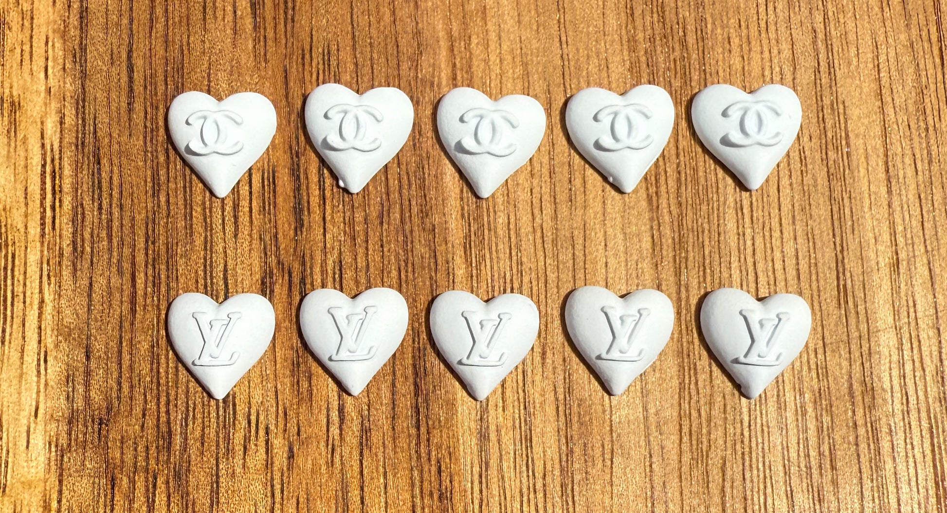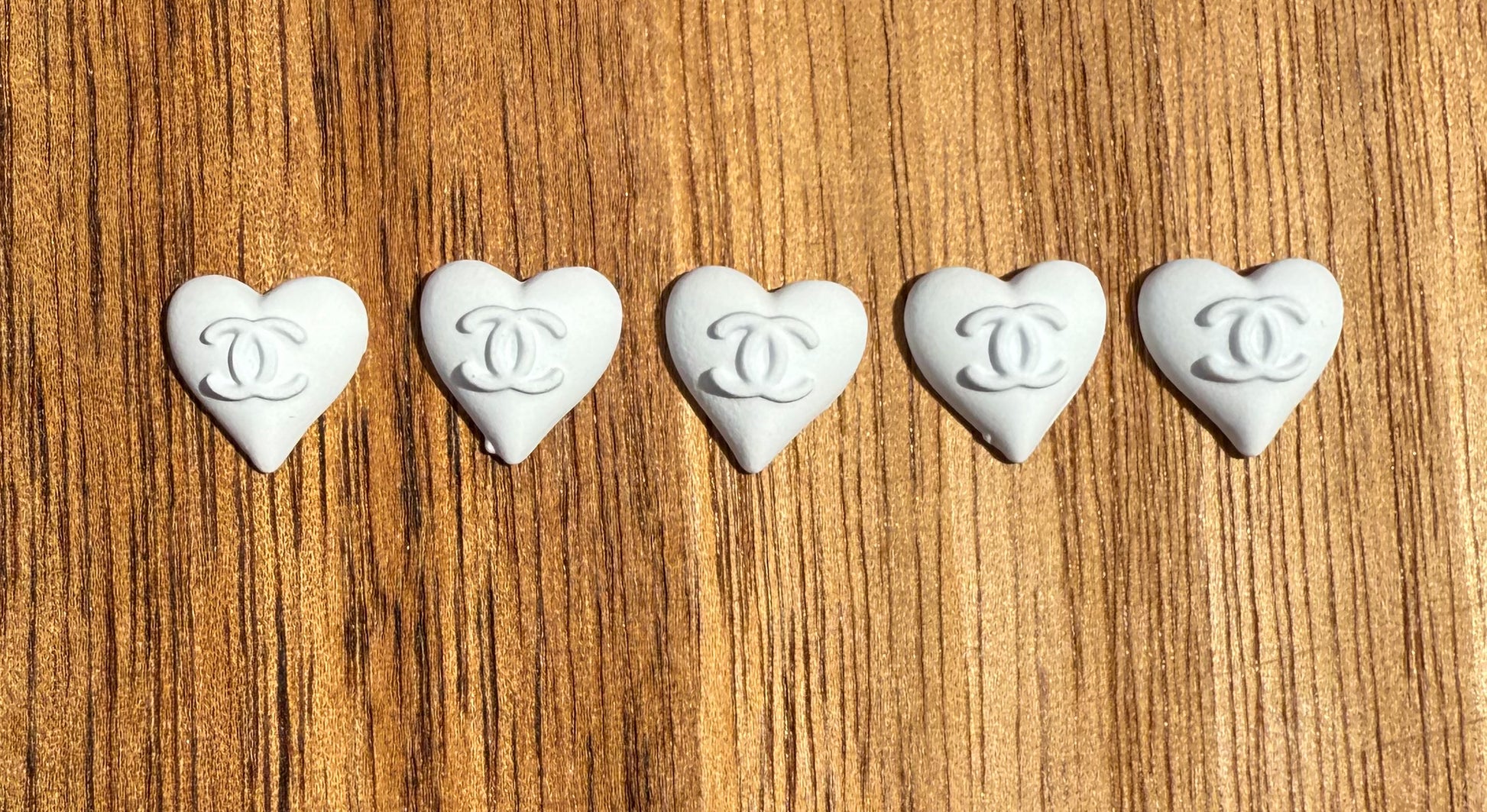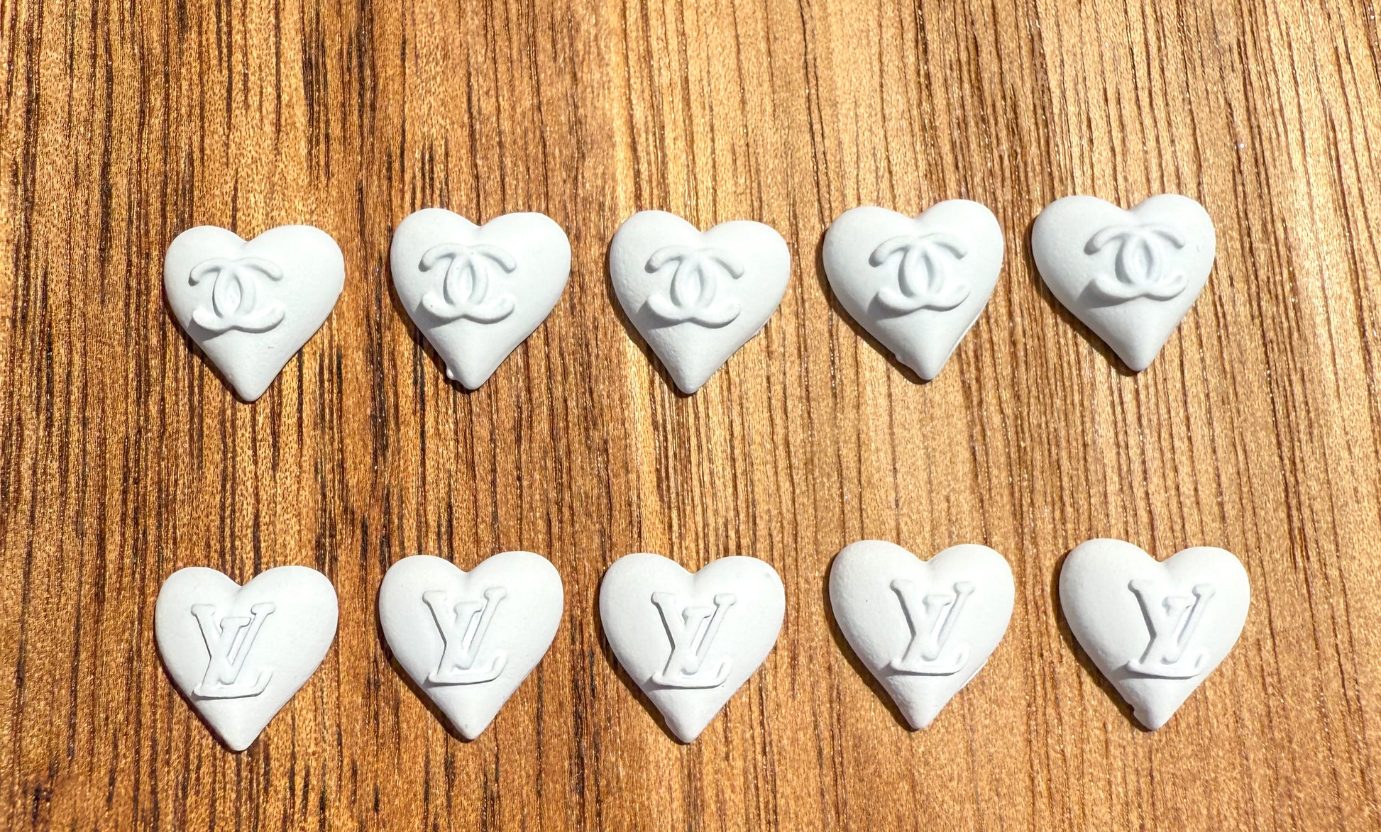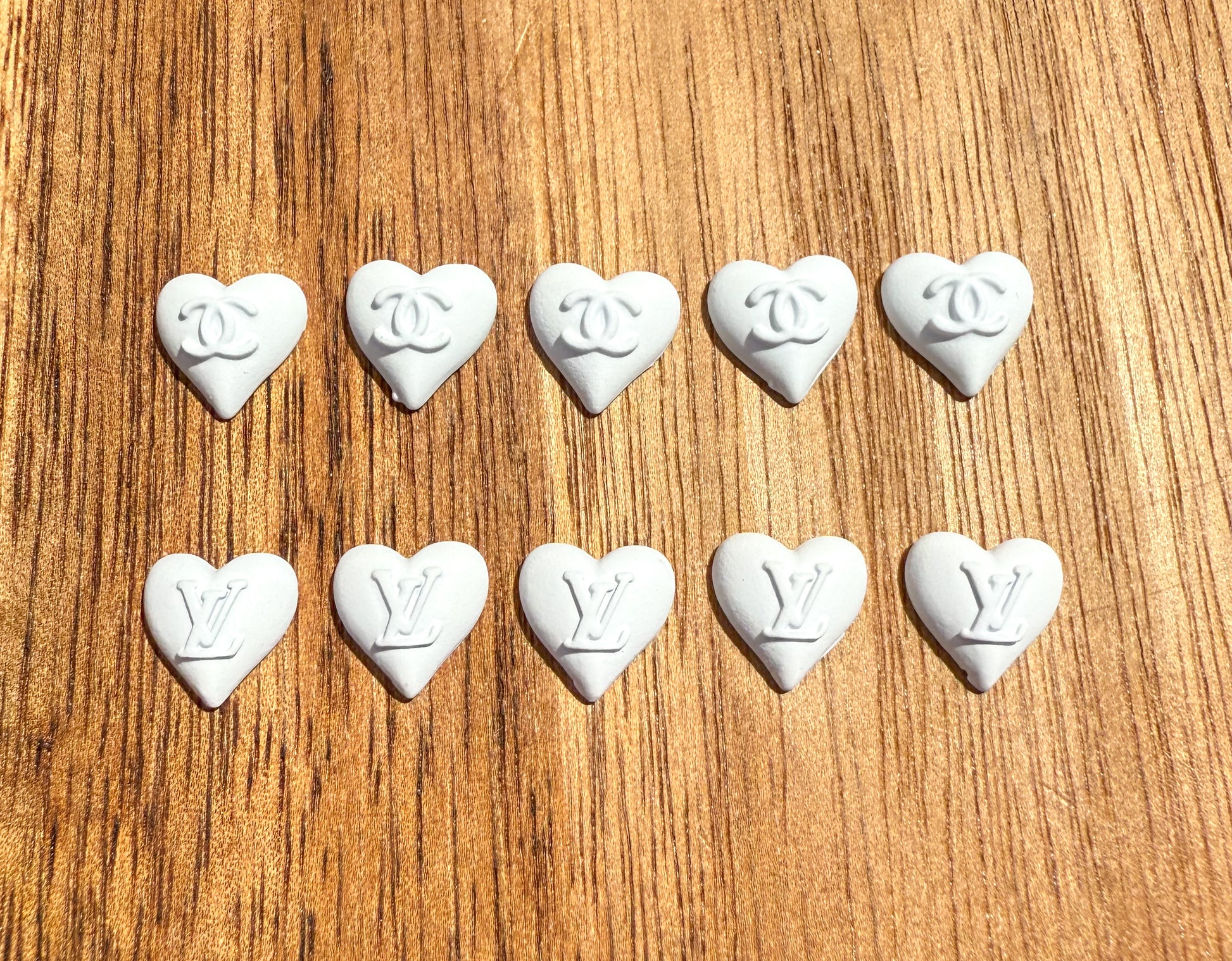 Metal White Enamel CC & LV Heart DIY Nail Charms