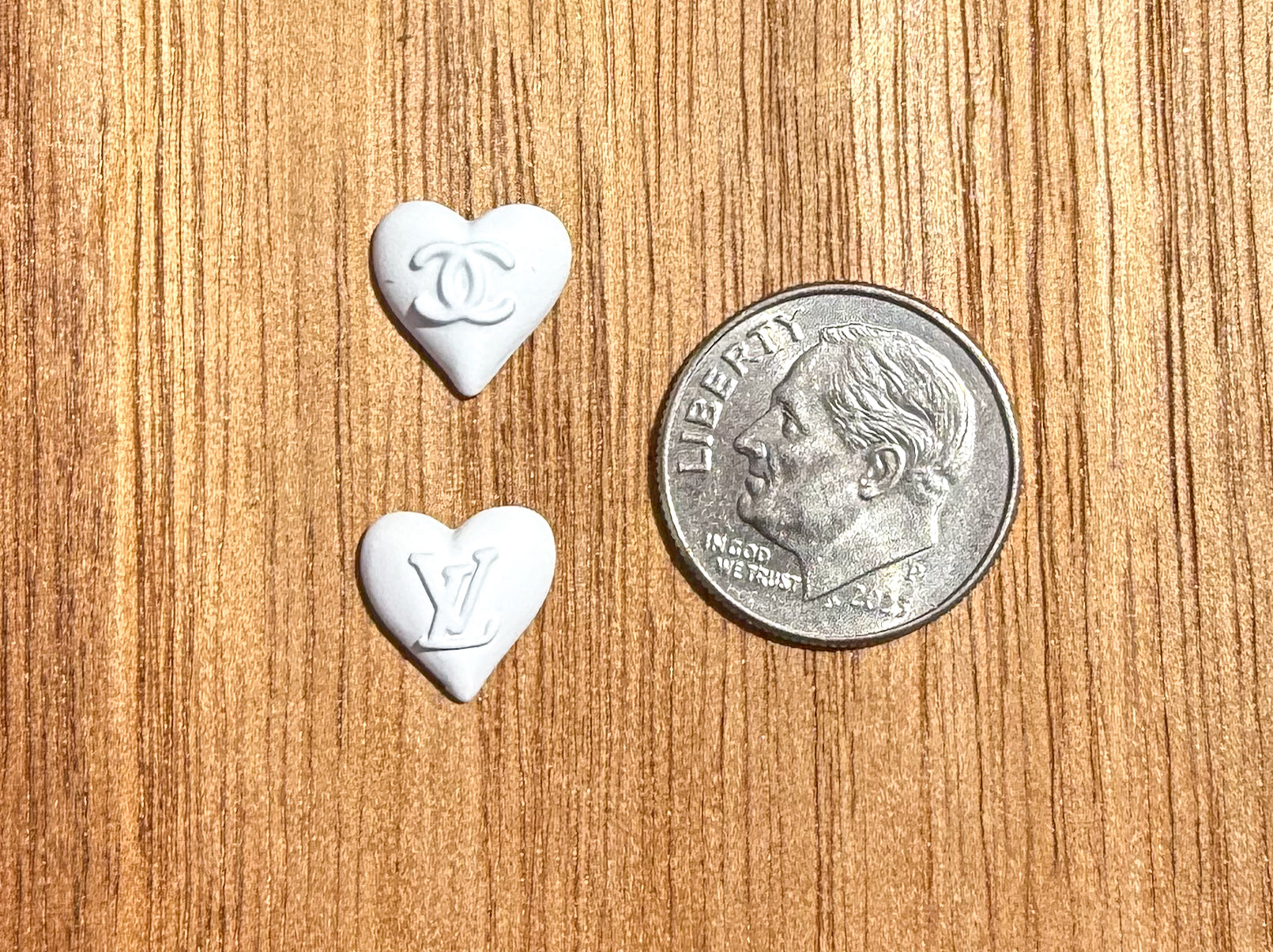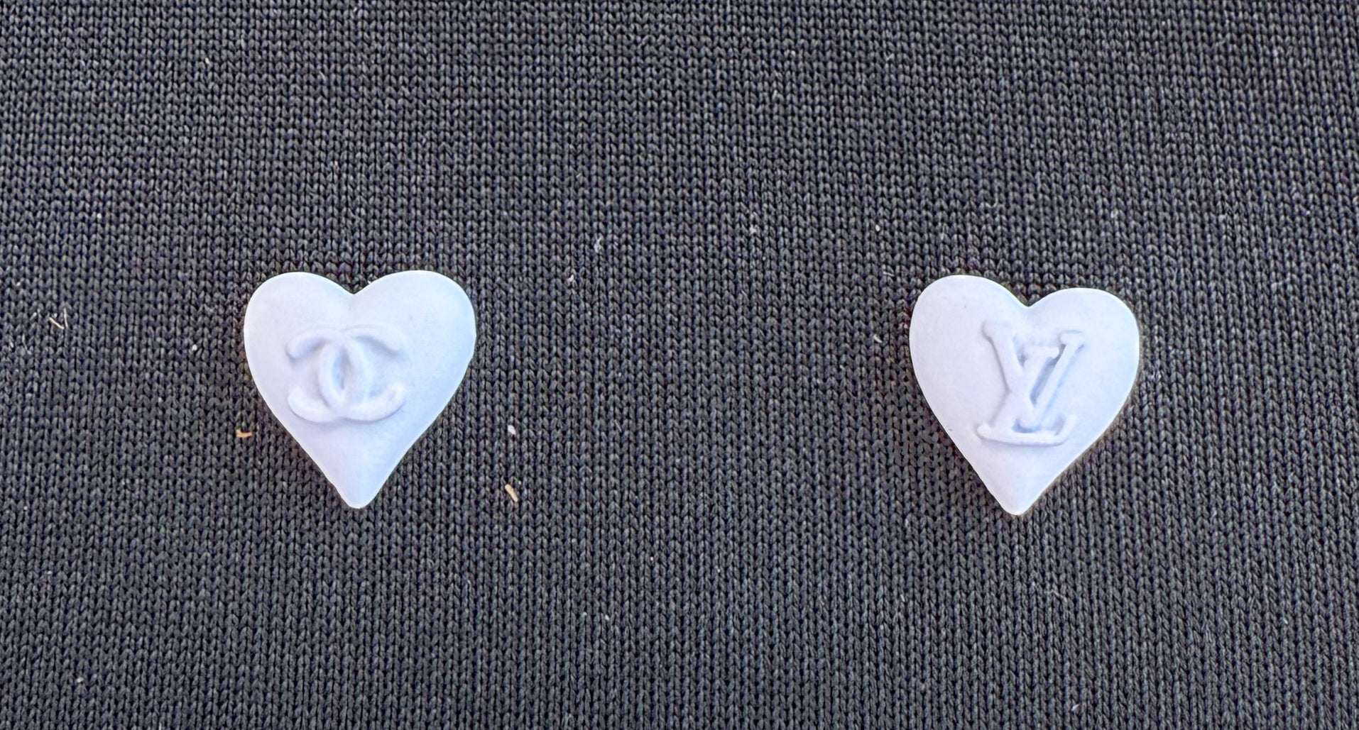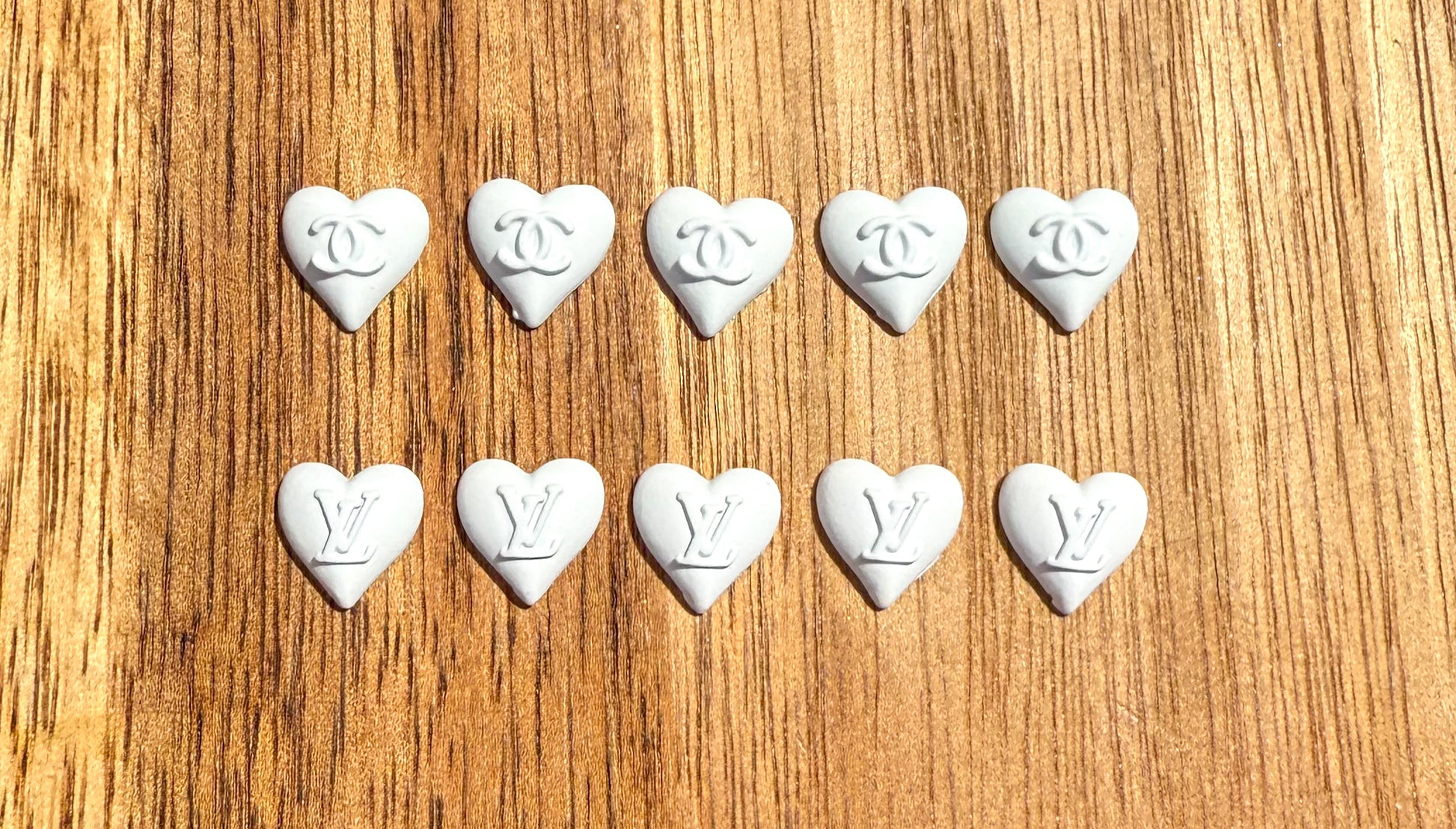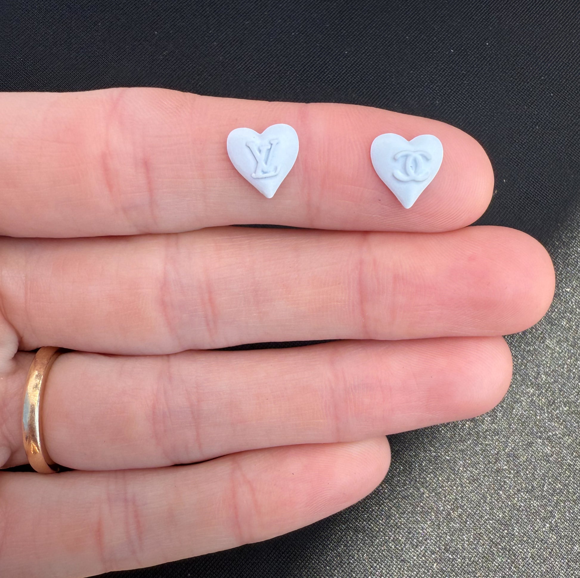 Metal White Enamel CC & LV Heart DIY Nail Charms