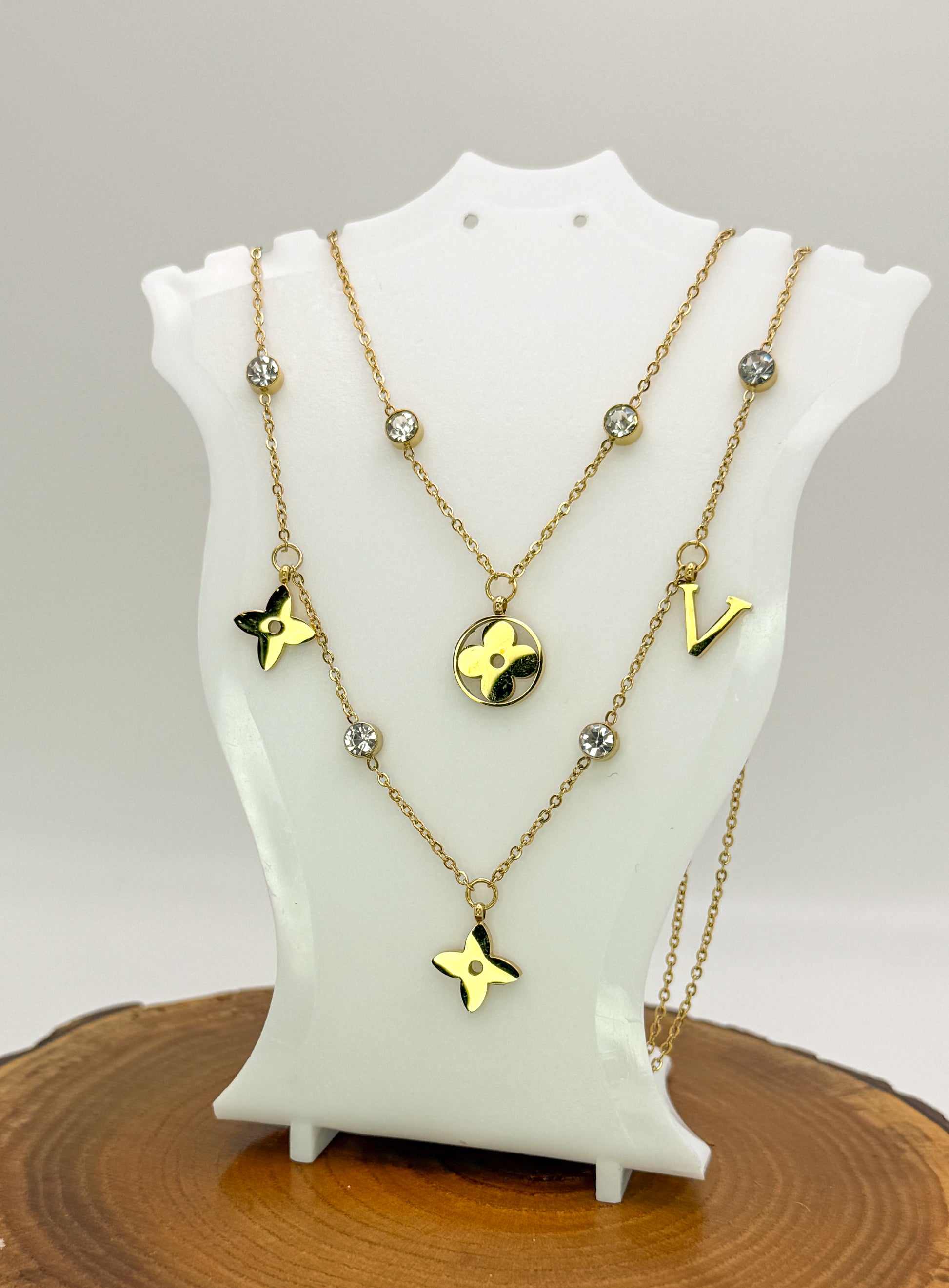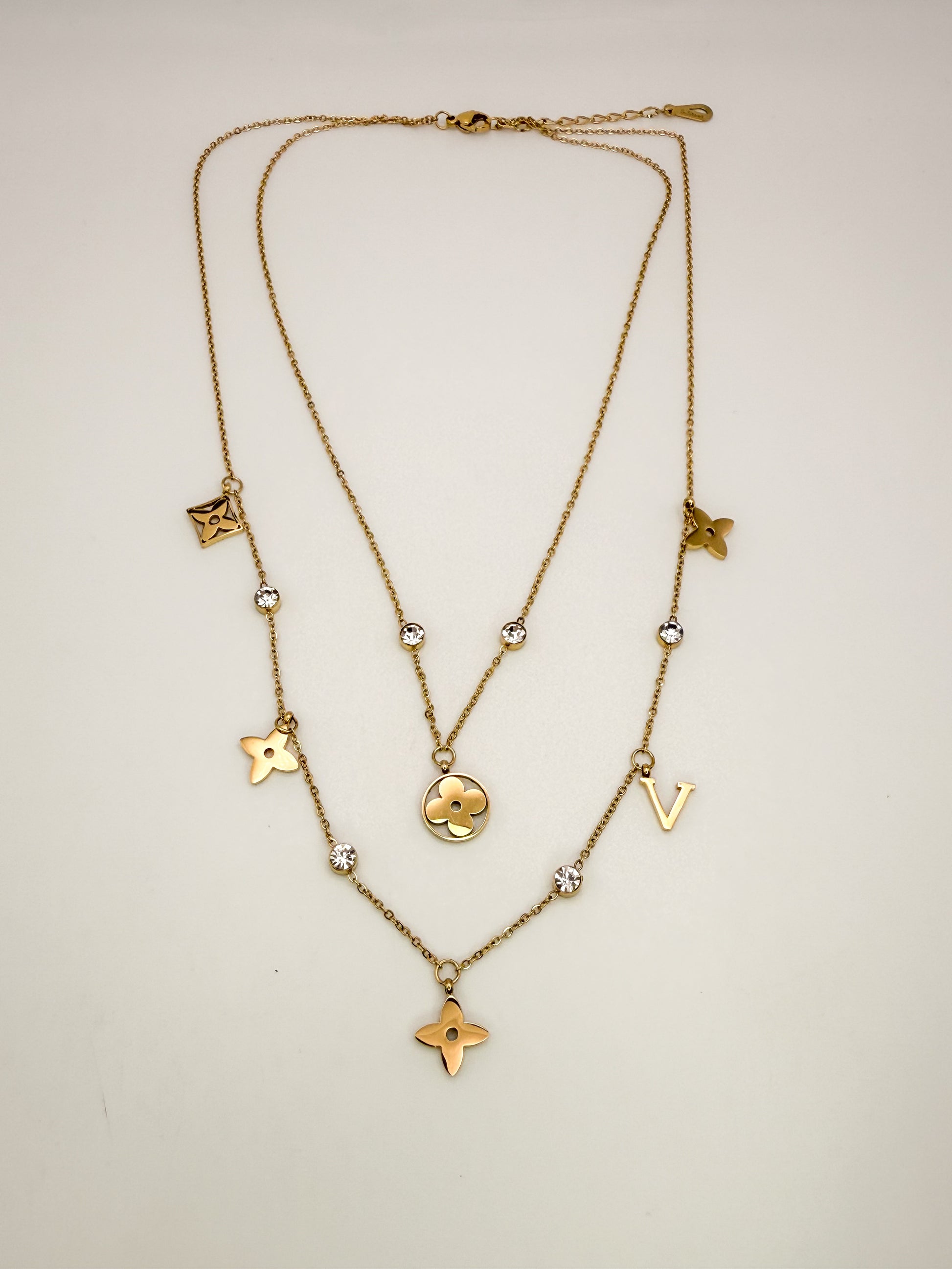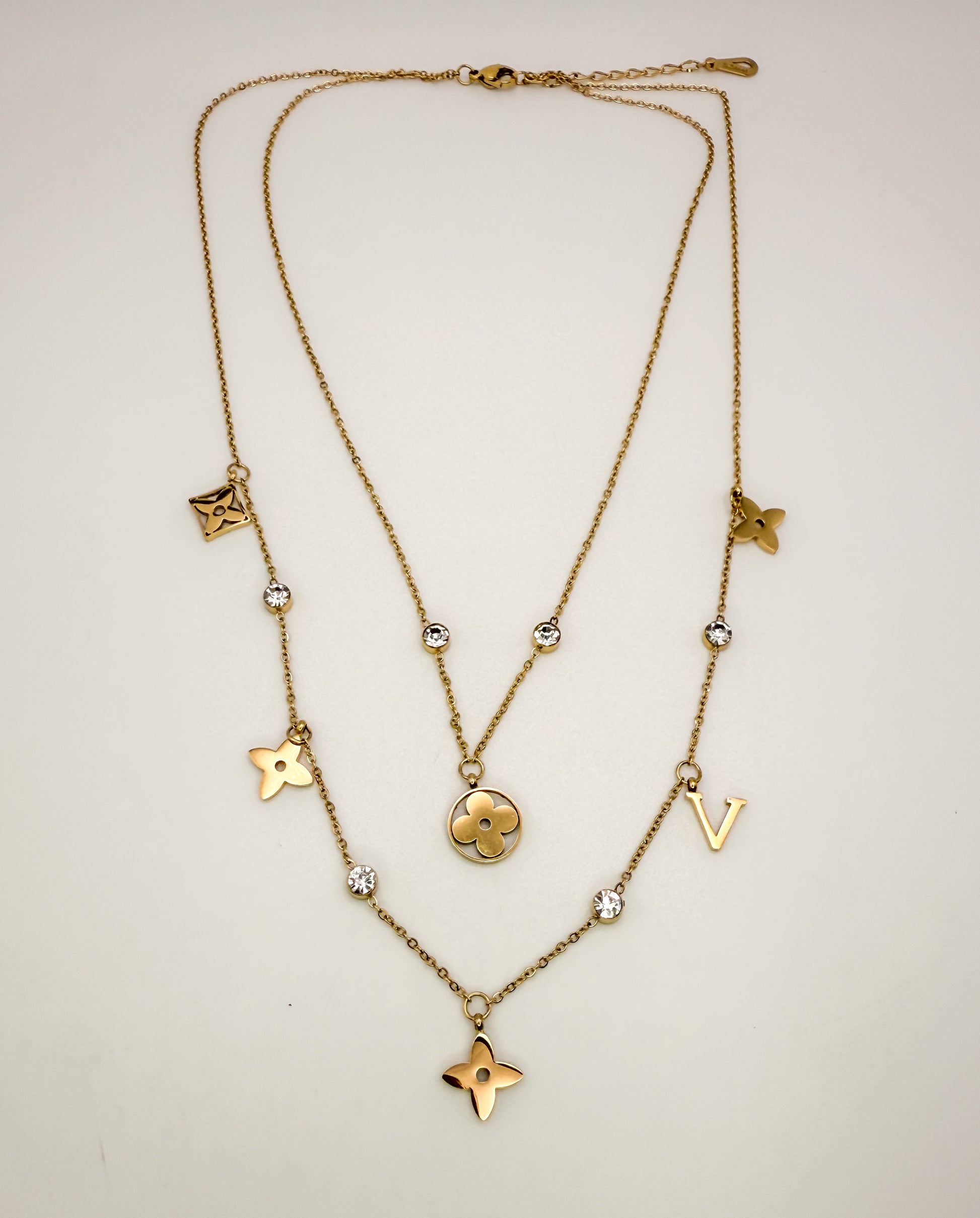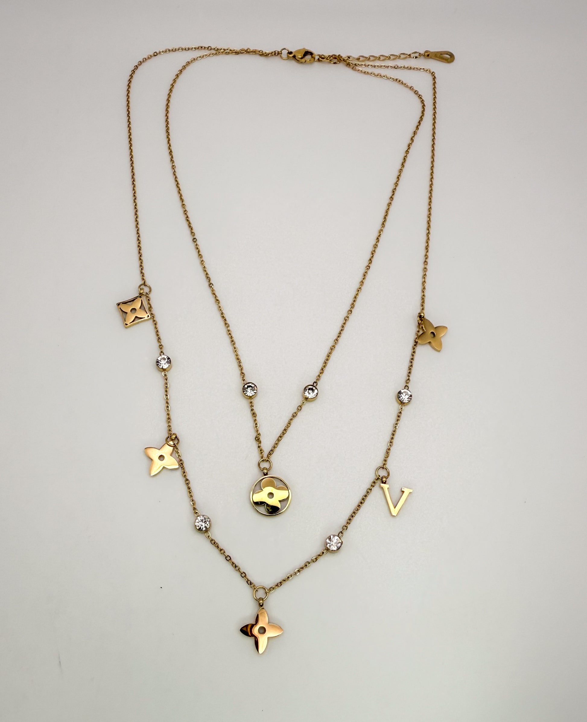 Mixed LV Designer Logo Gold Double Layered Necklace