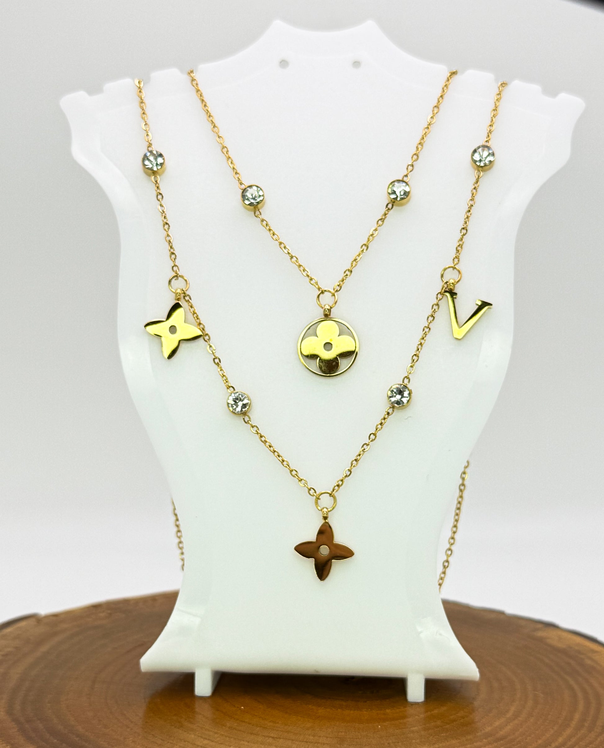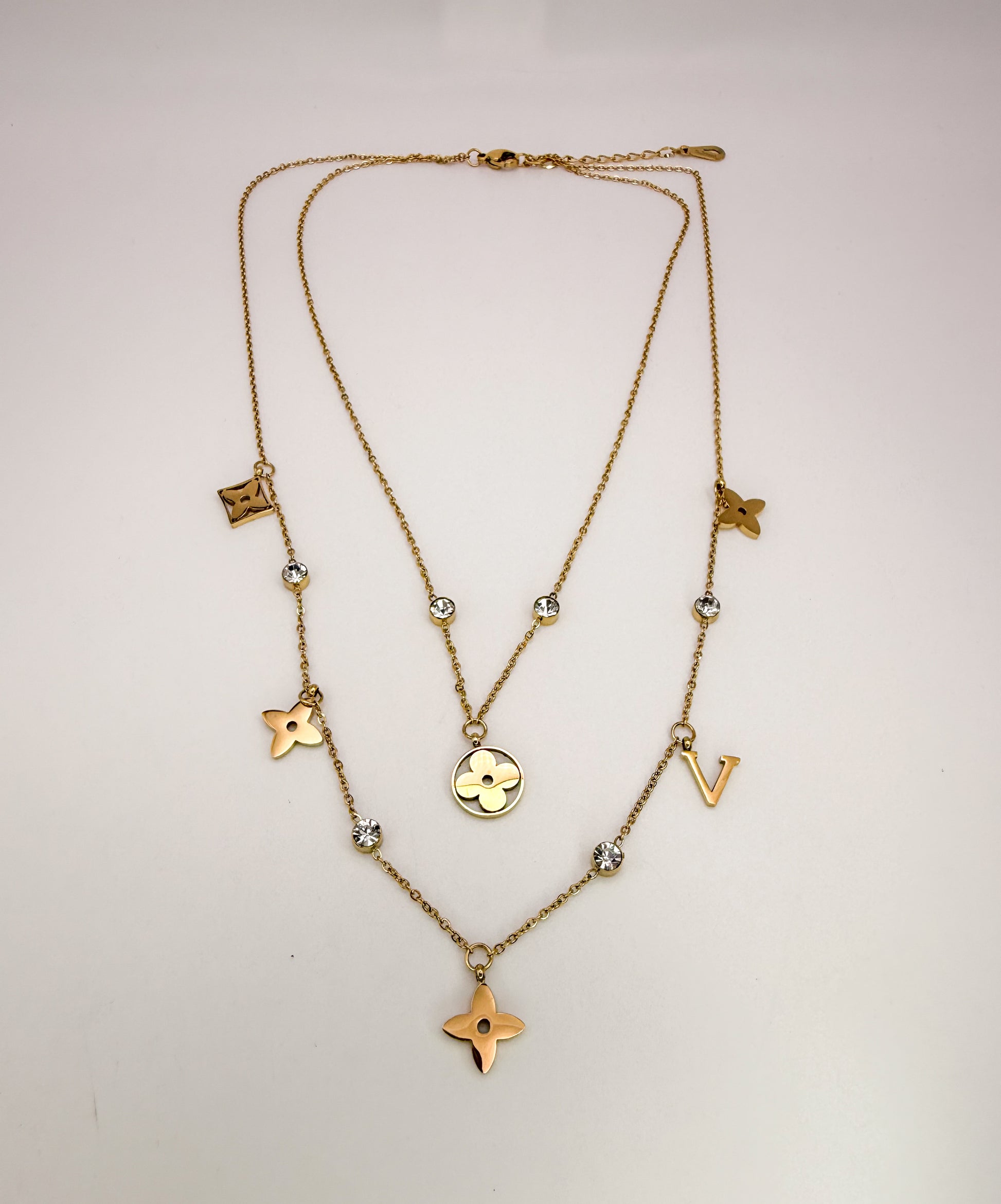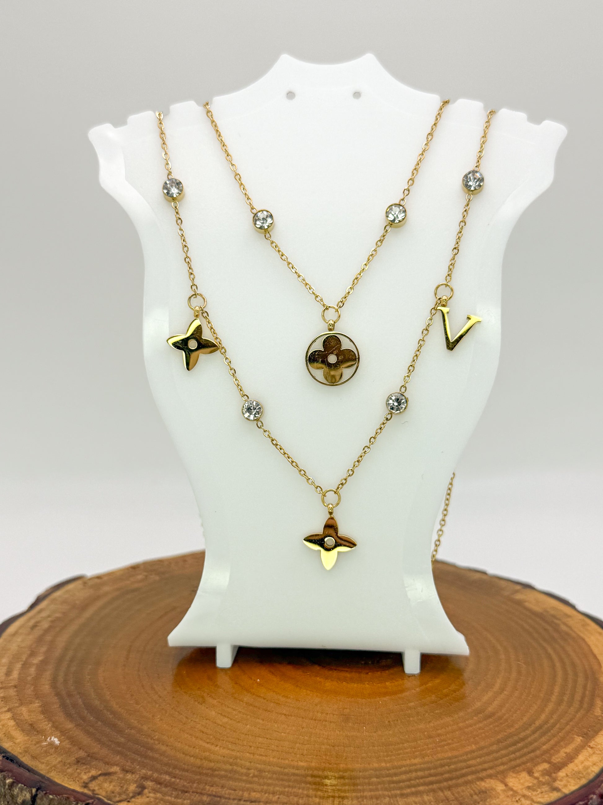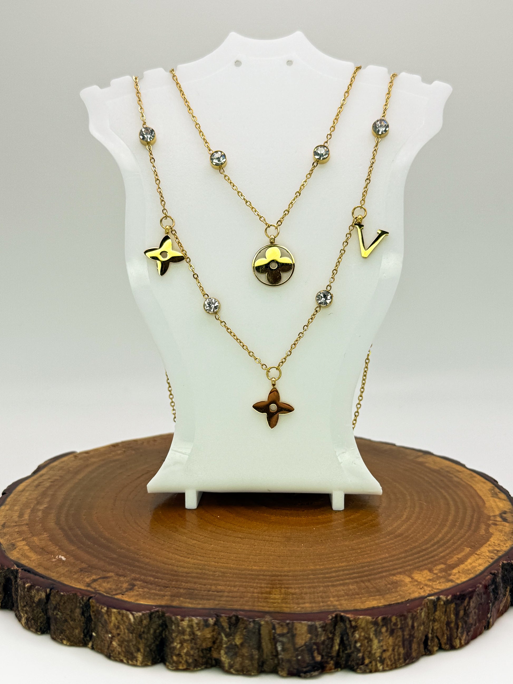 Mixed LV Designer Logo Gold Double Layered Necklace