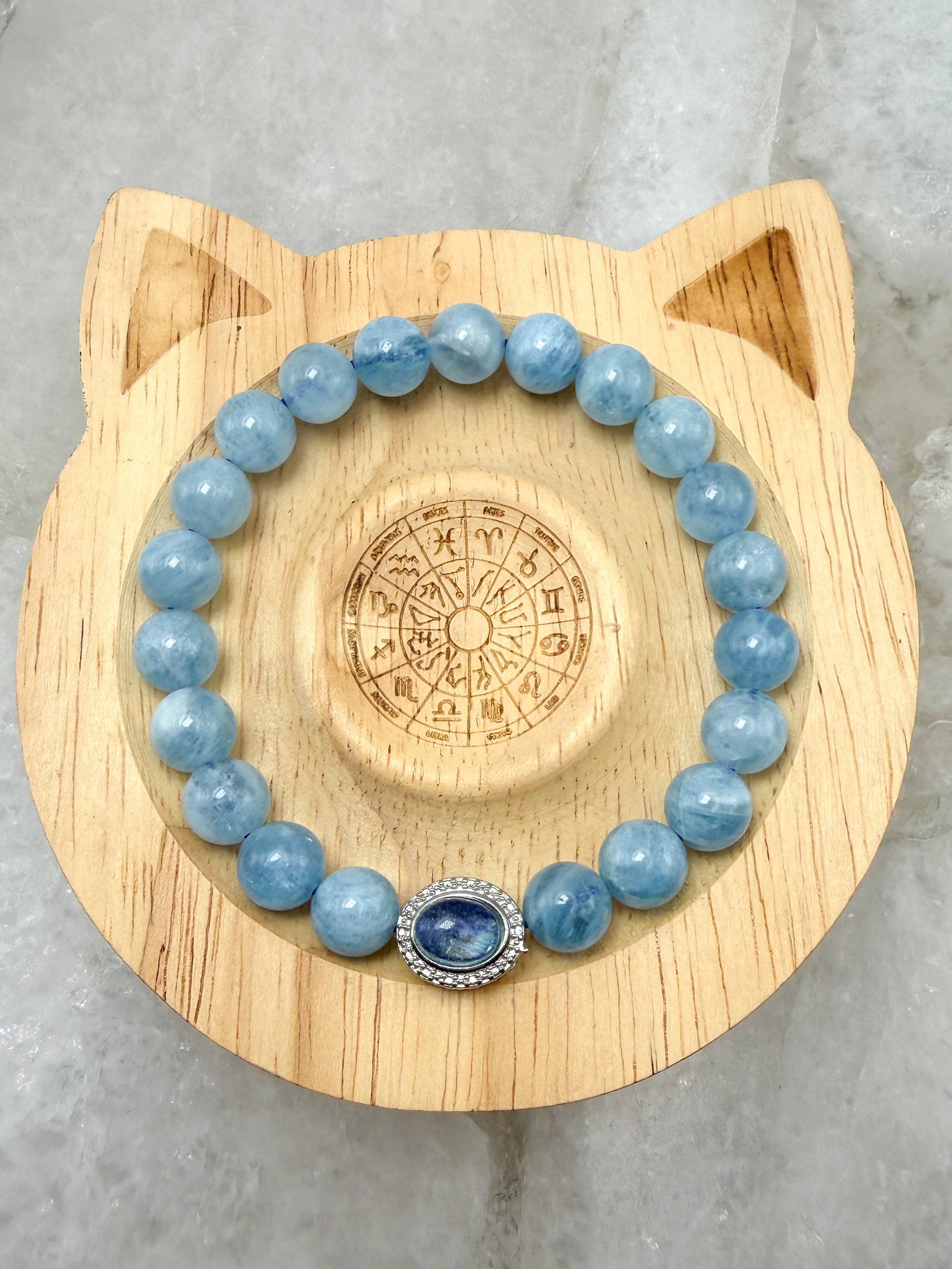 All Natural Aquamarine Crystal Beads and Silver cased Bead