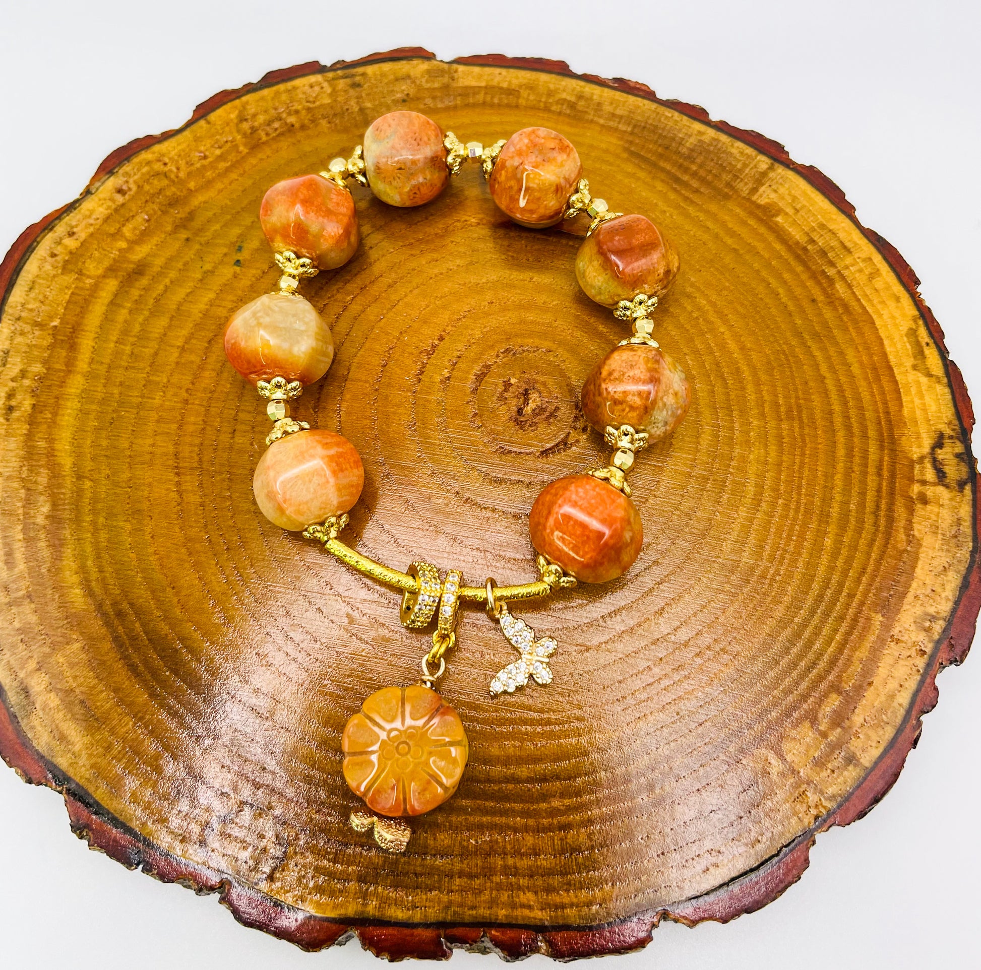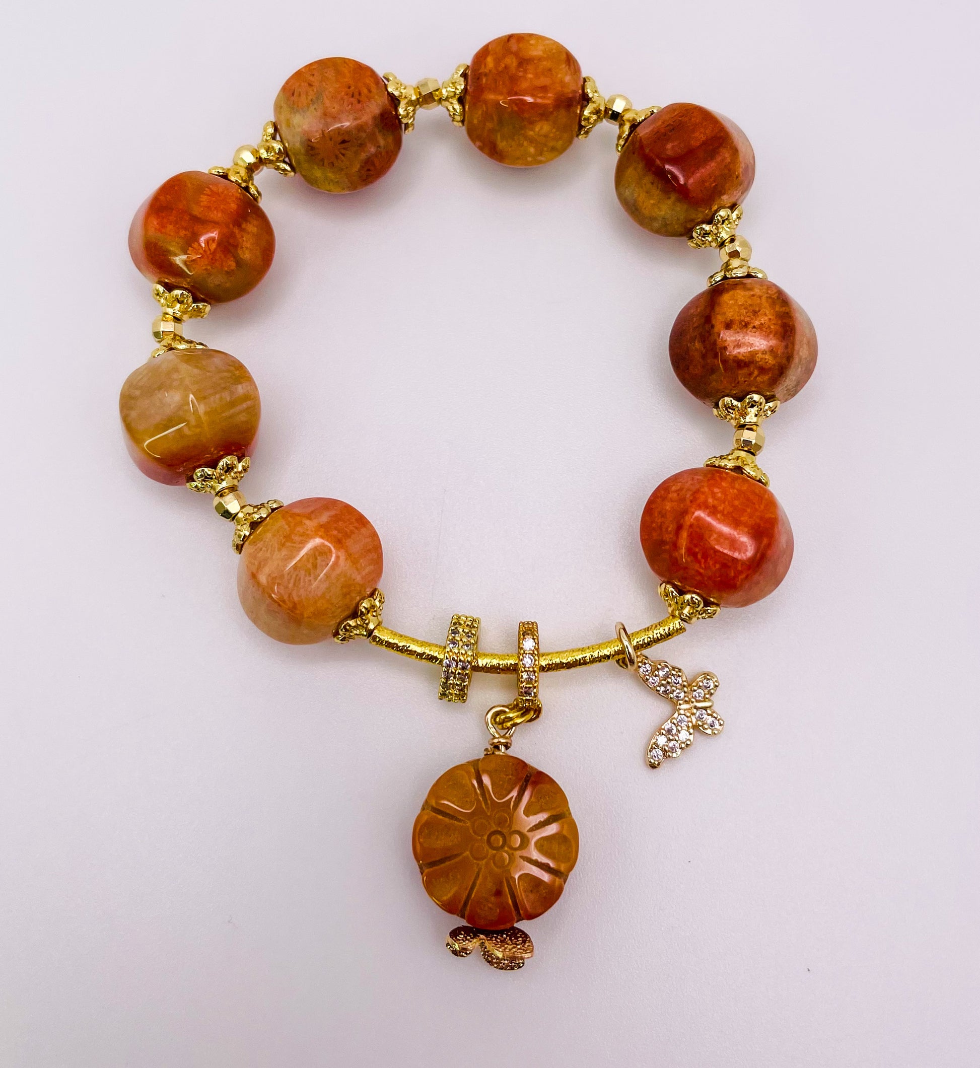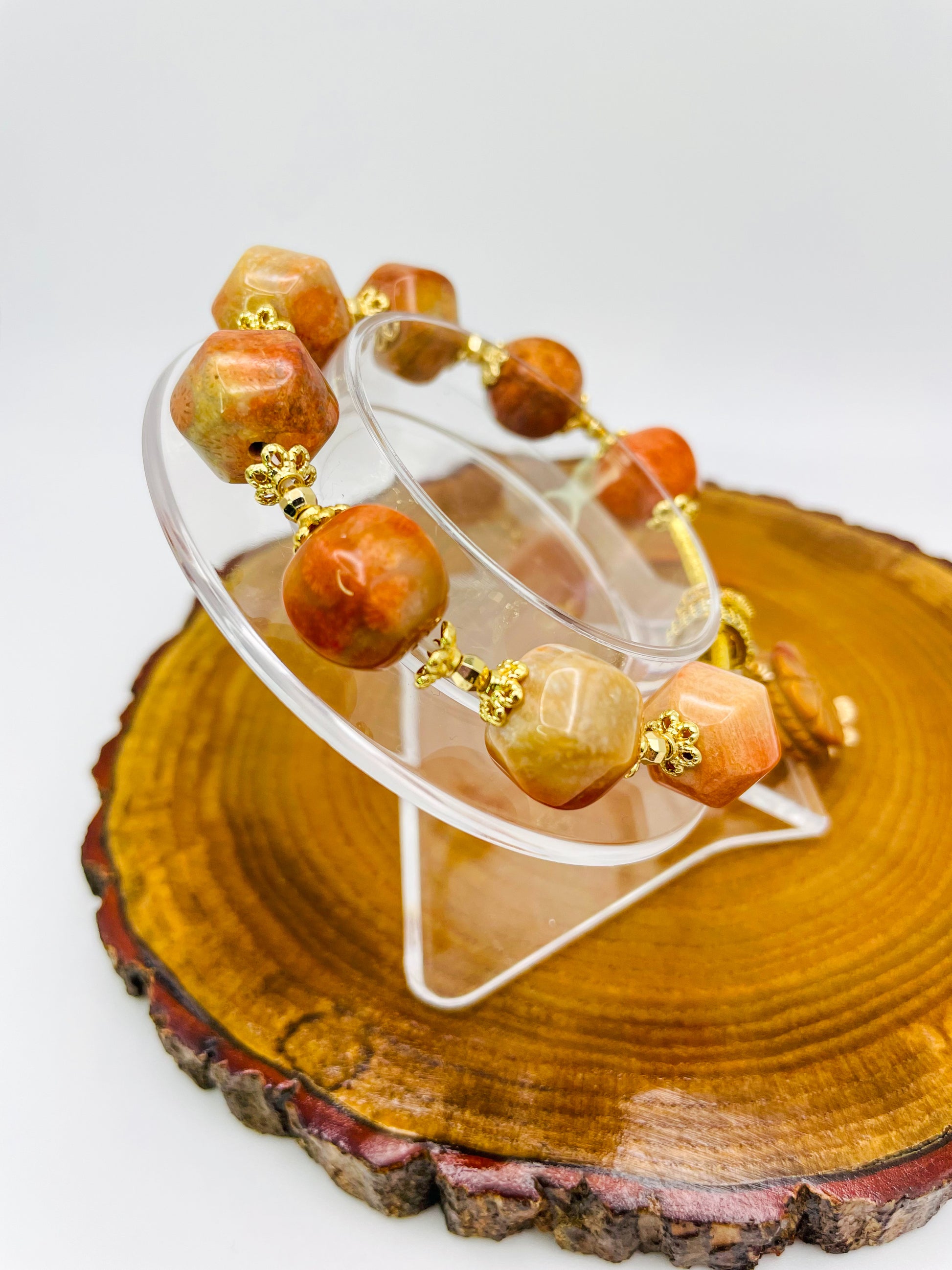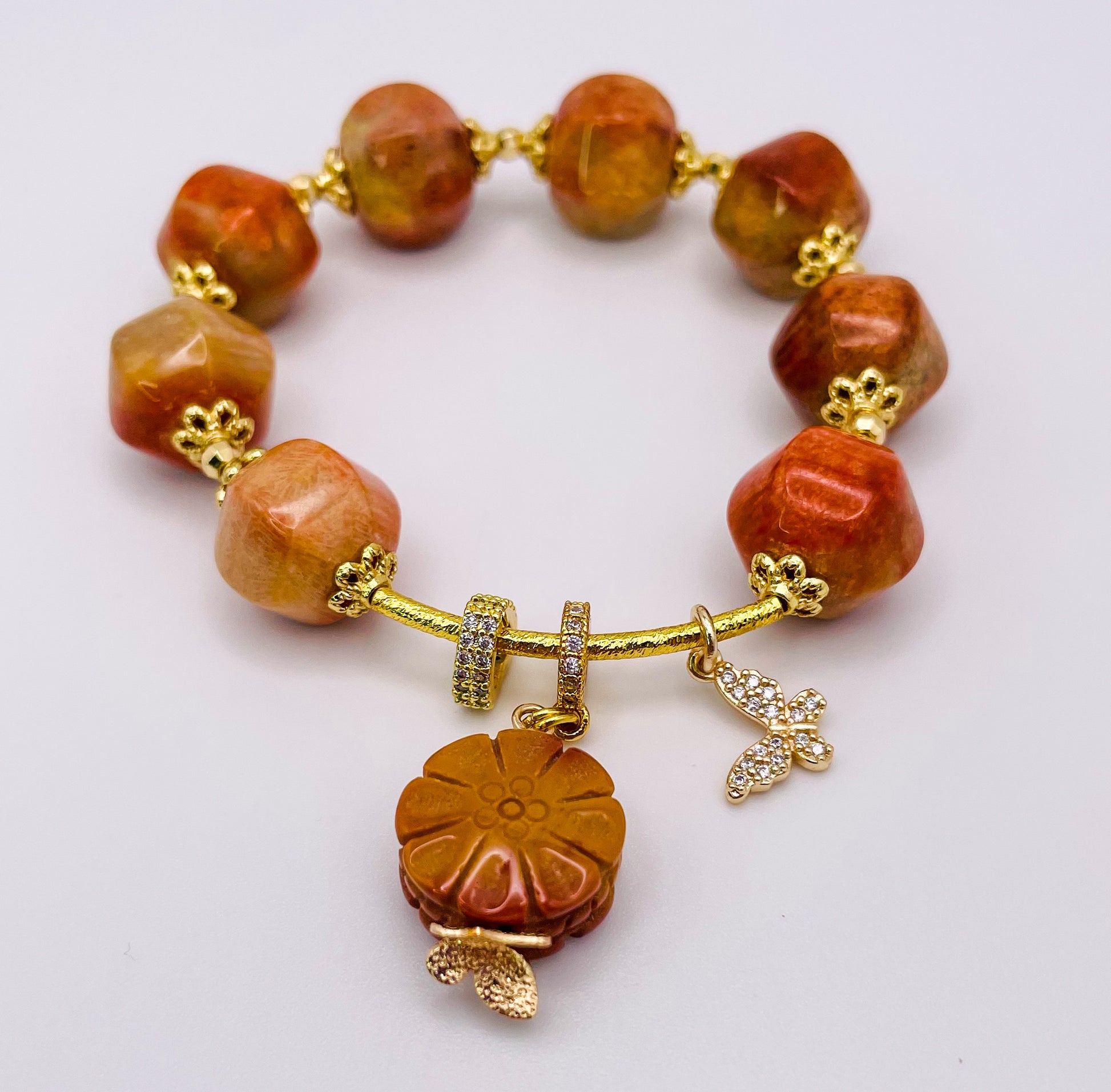 Natural Coral Jade Statement Bracelet