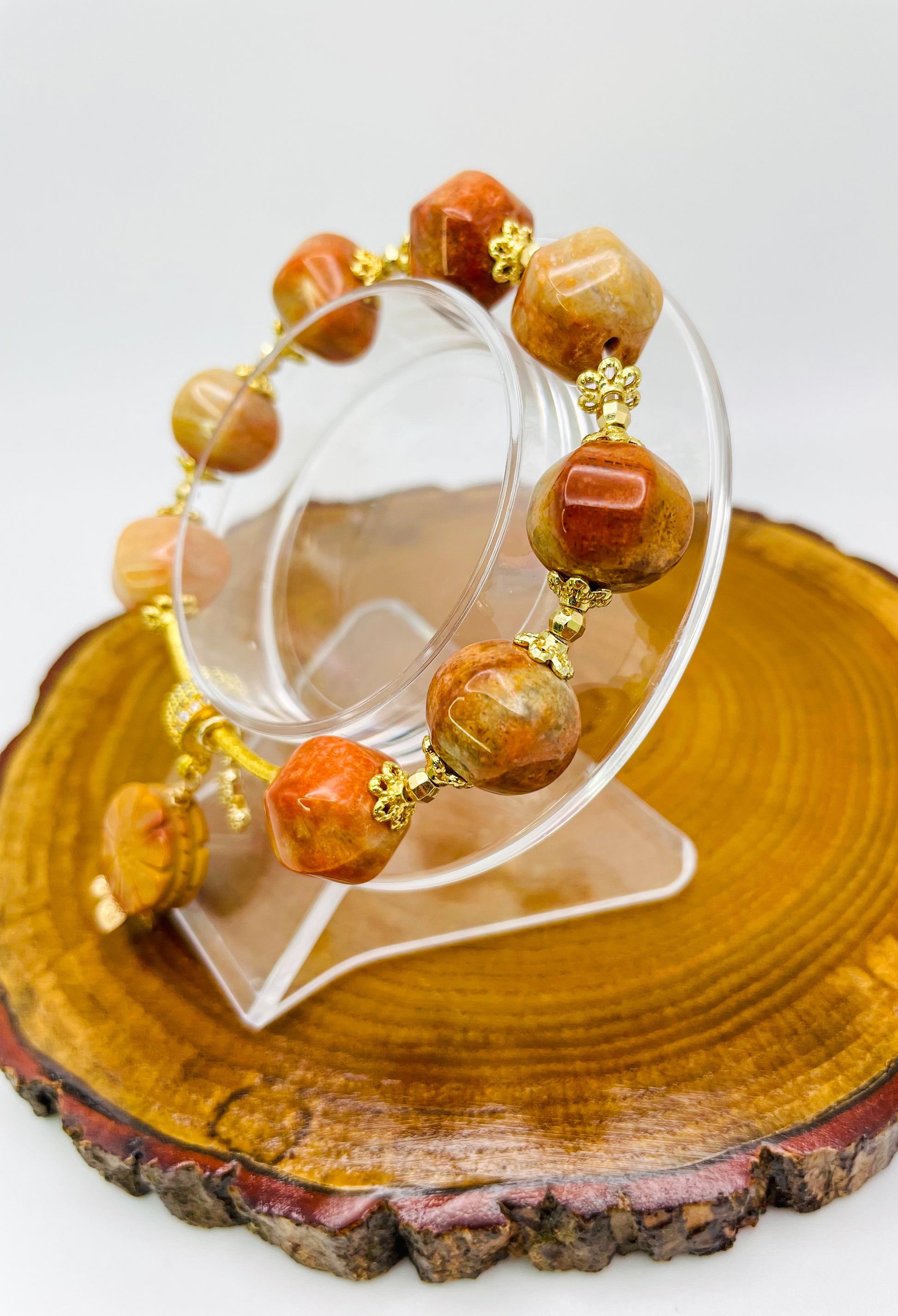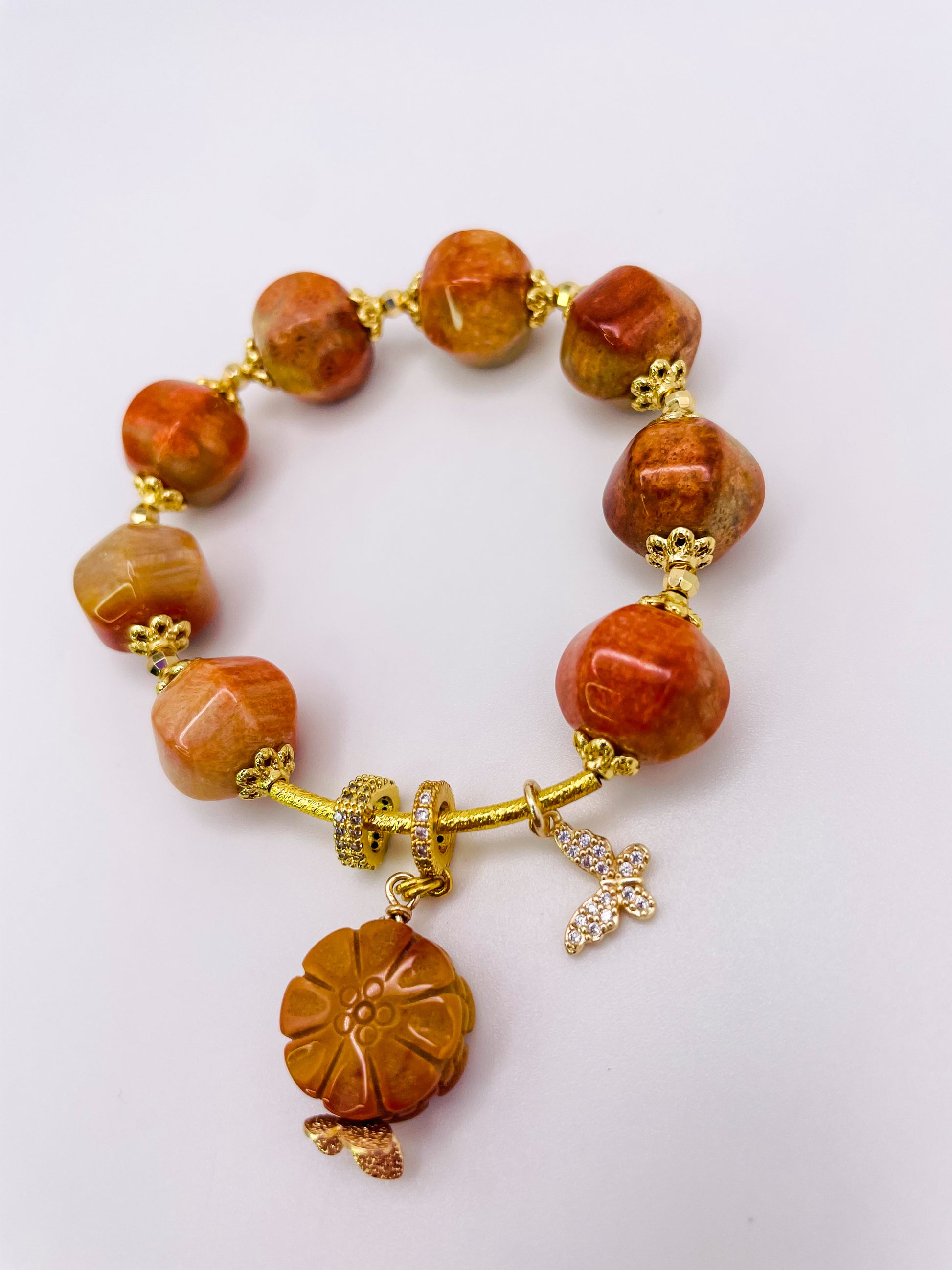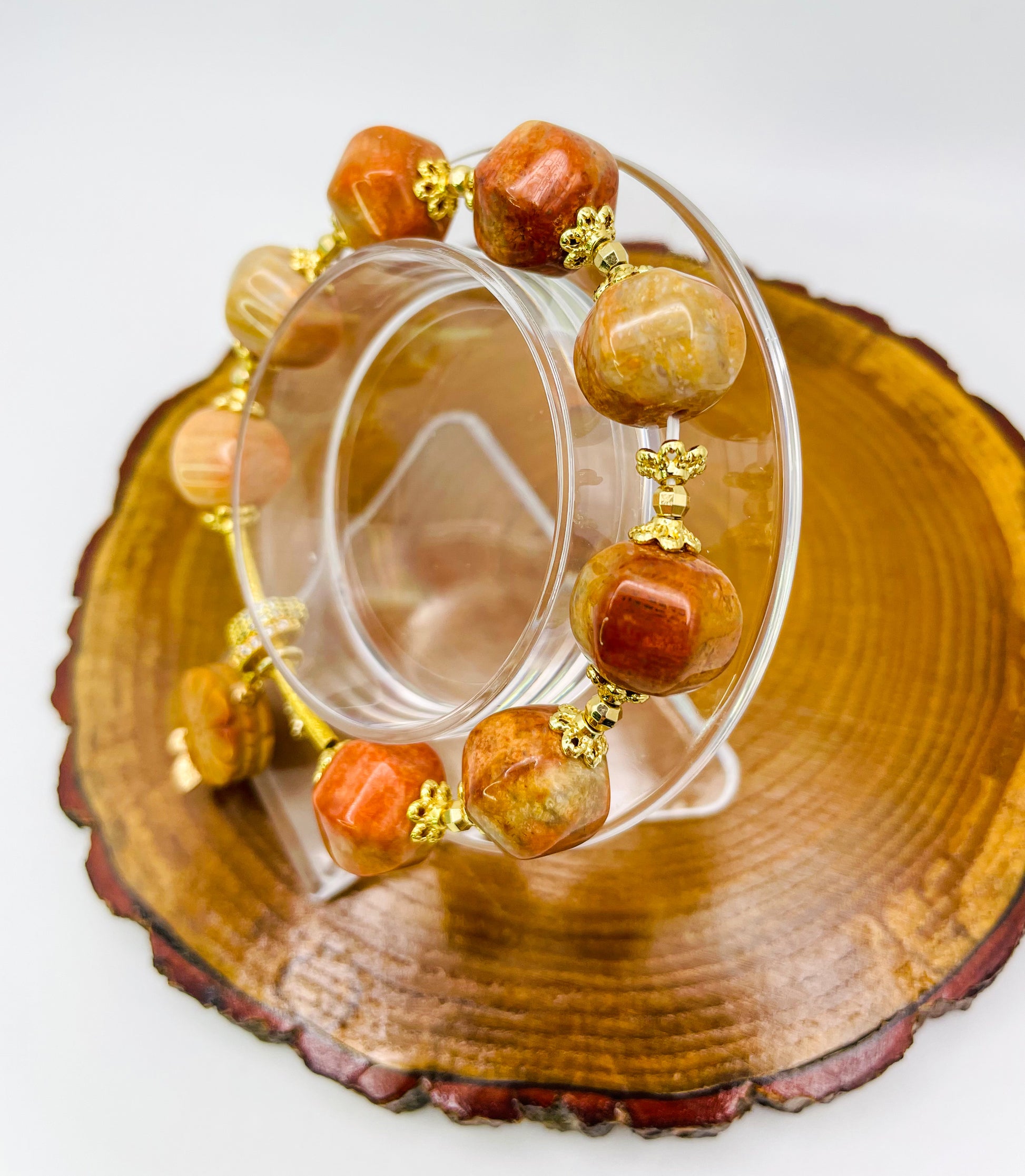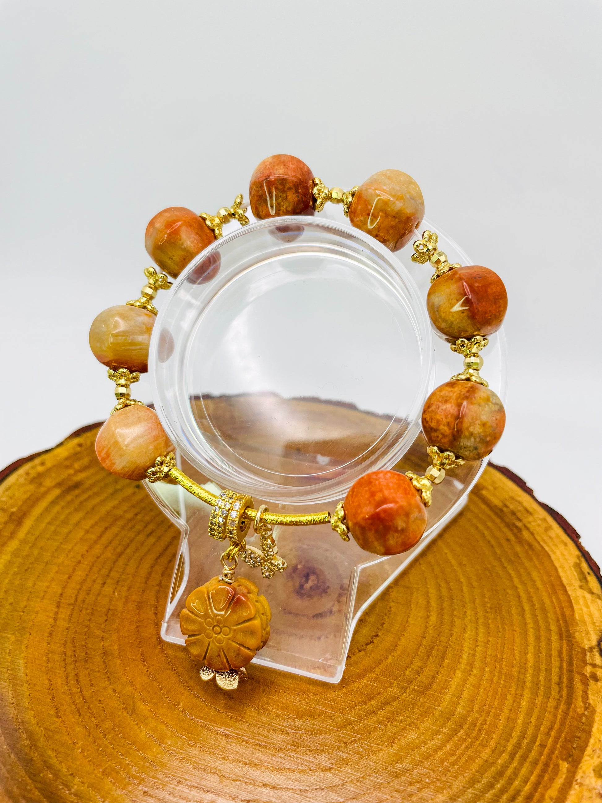 Natural Coral Jade Statement Bracelet