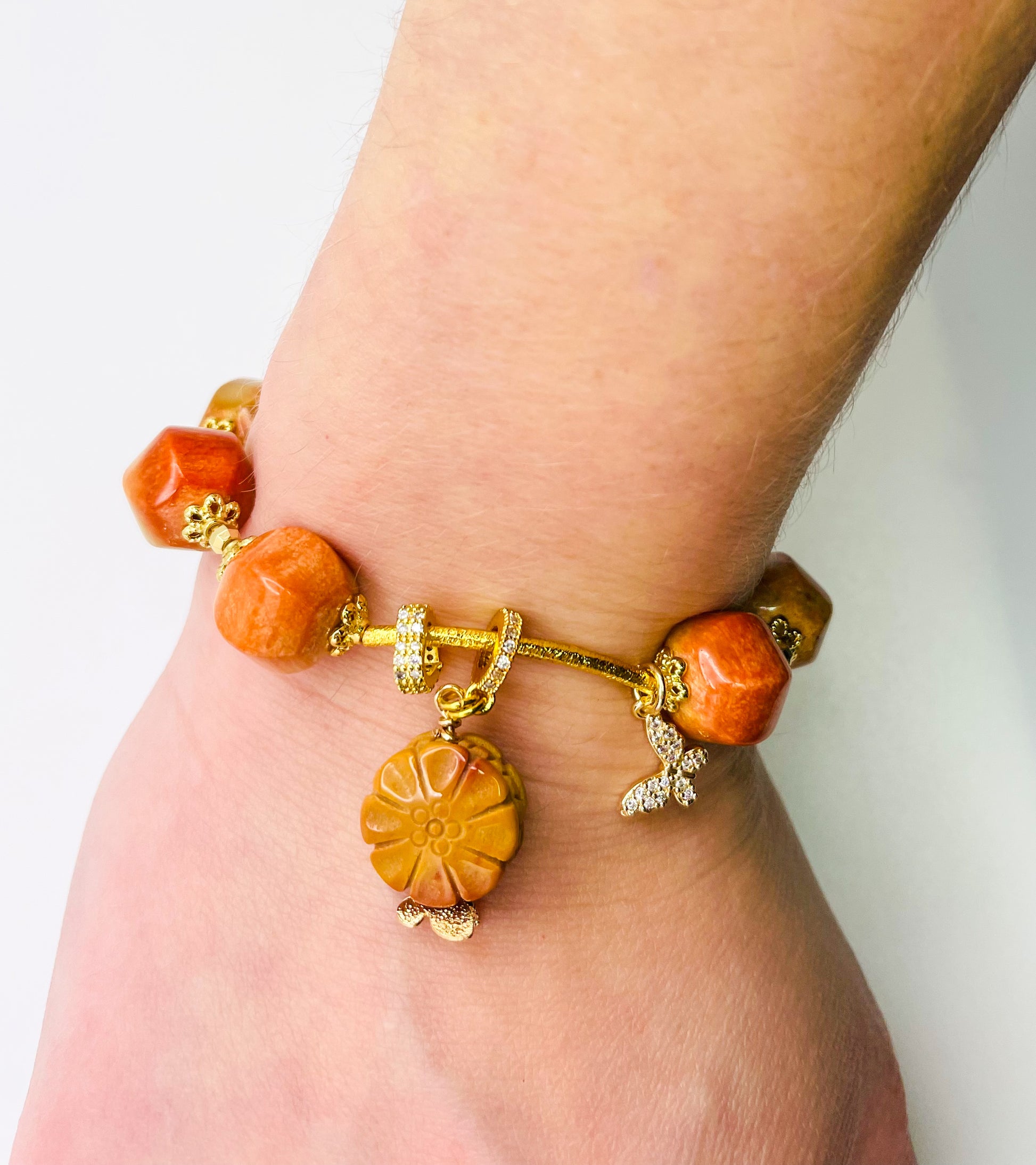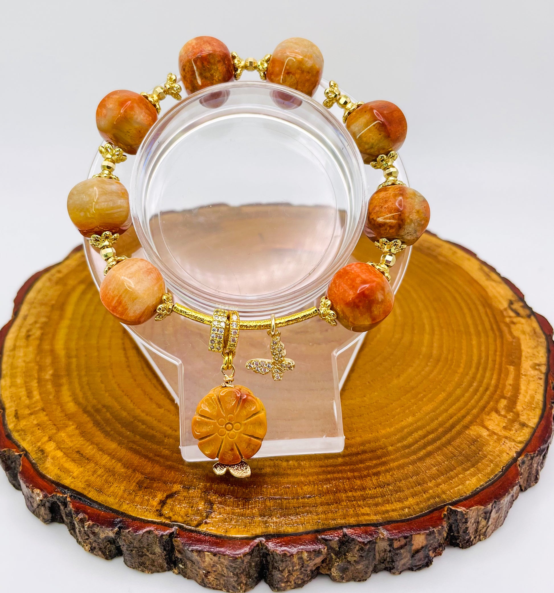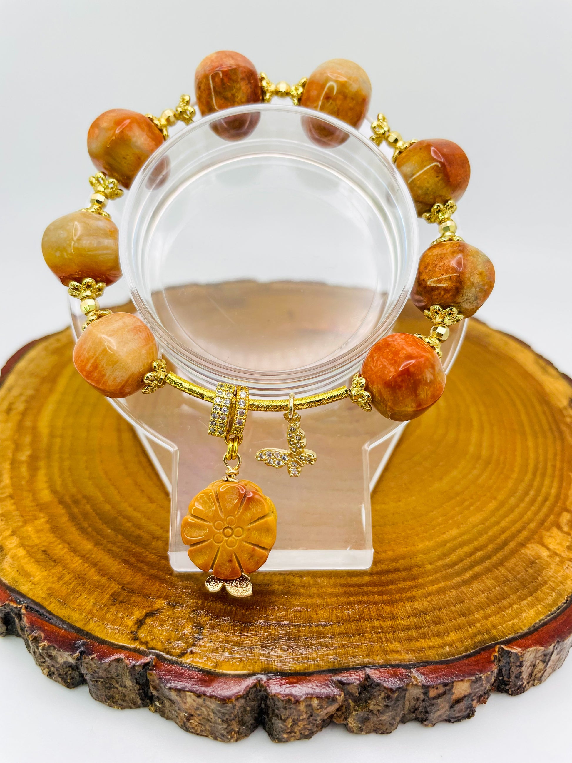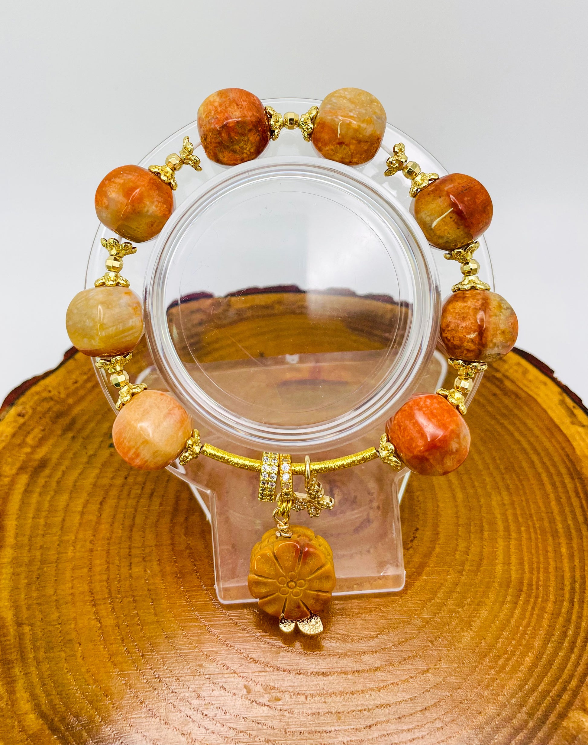 Natural Coral Jade Statement Bracelet
