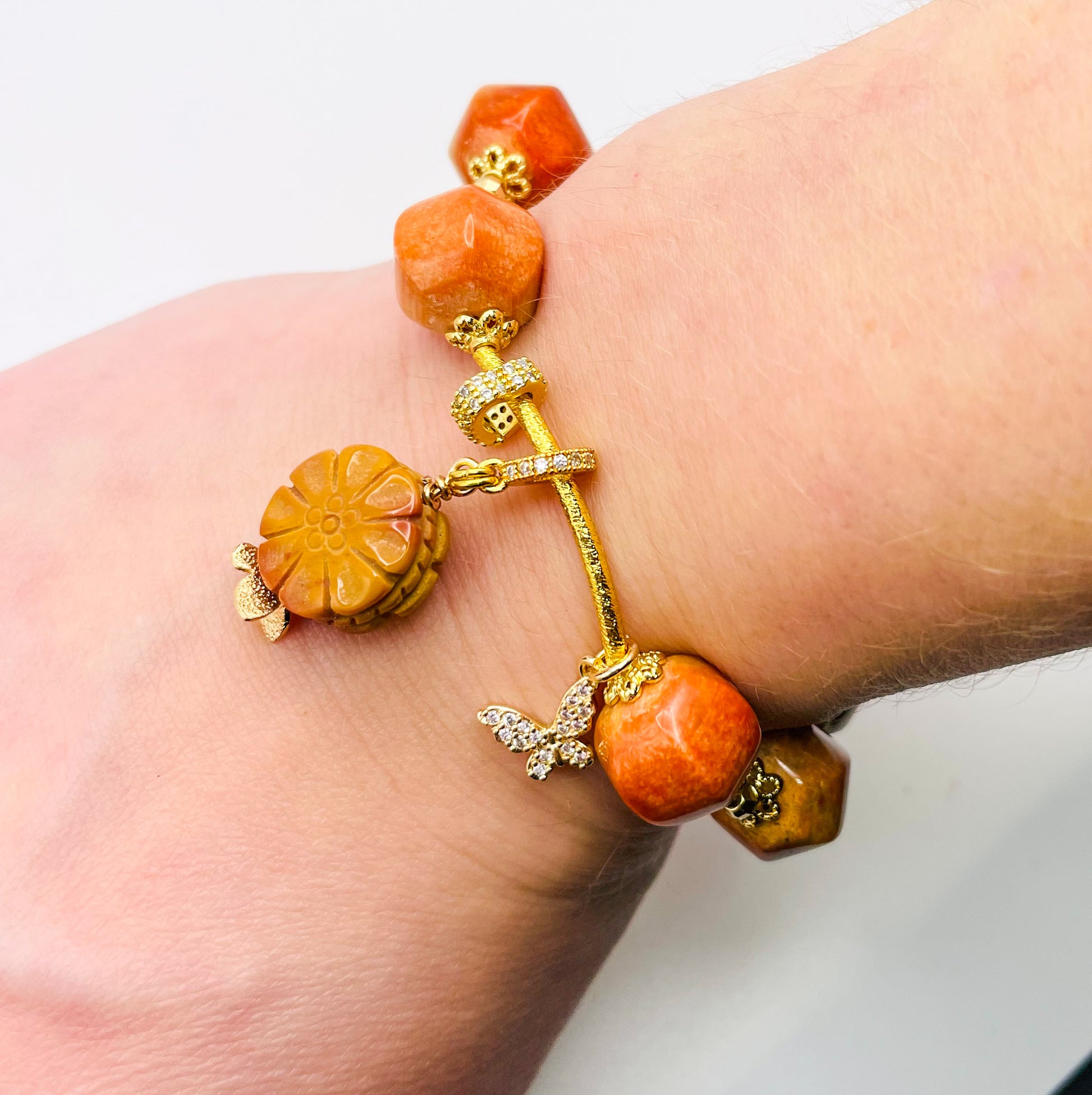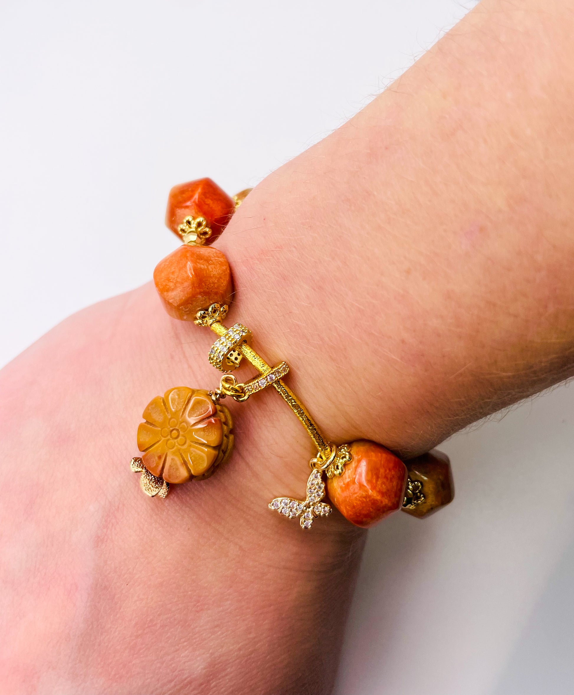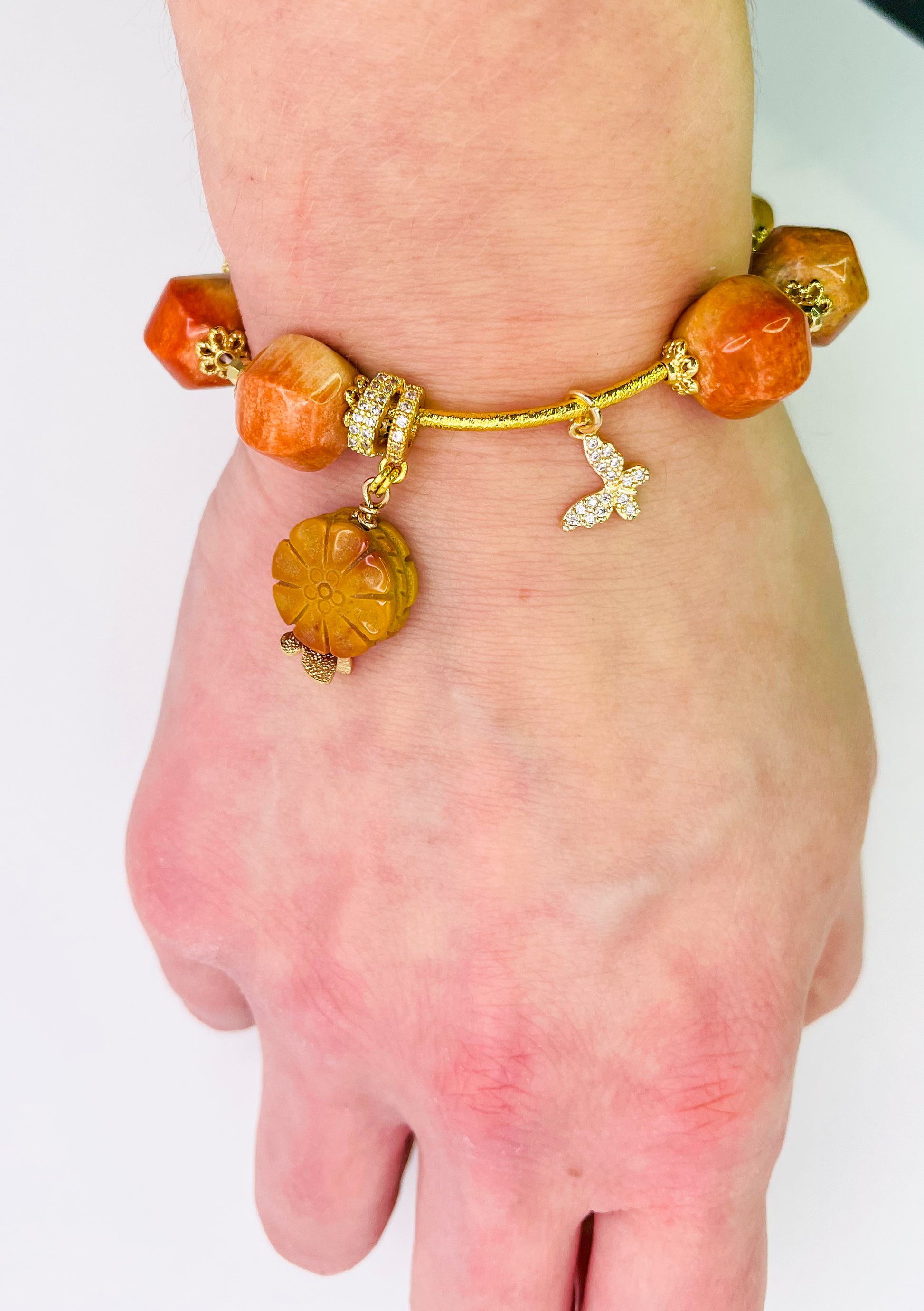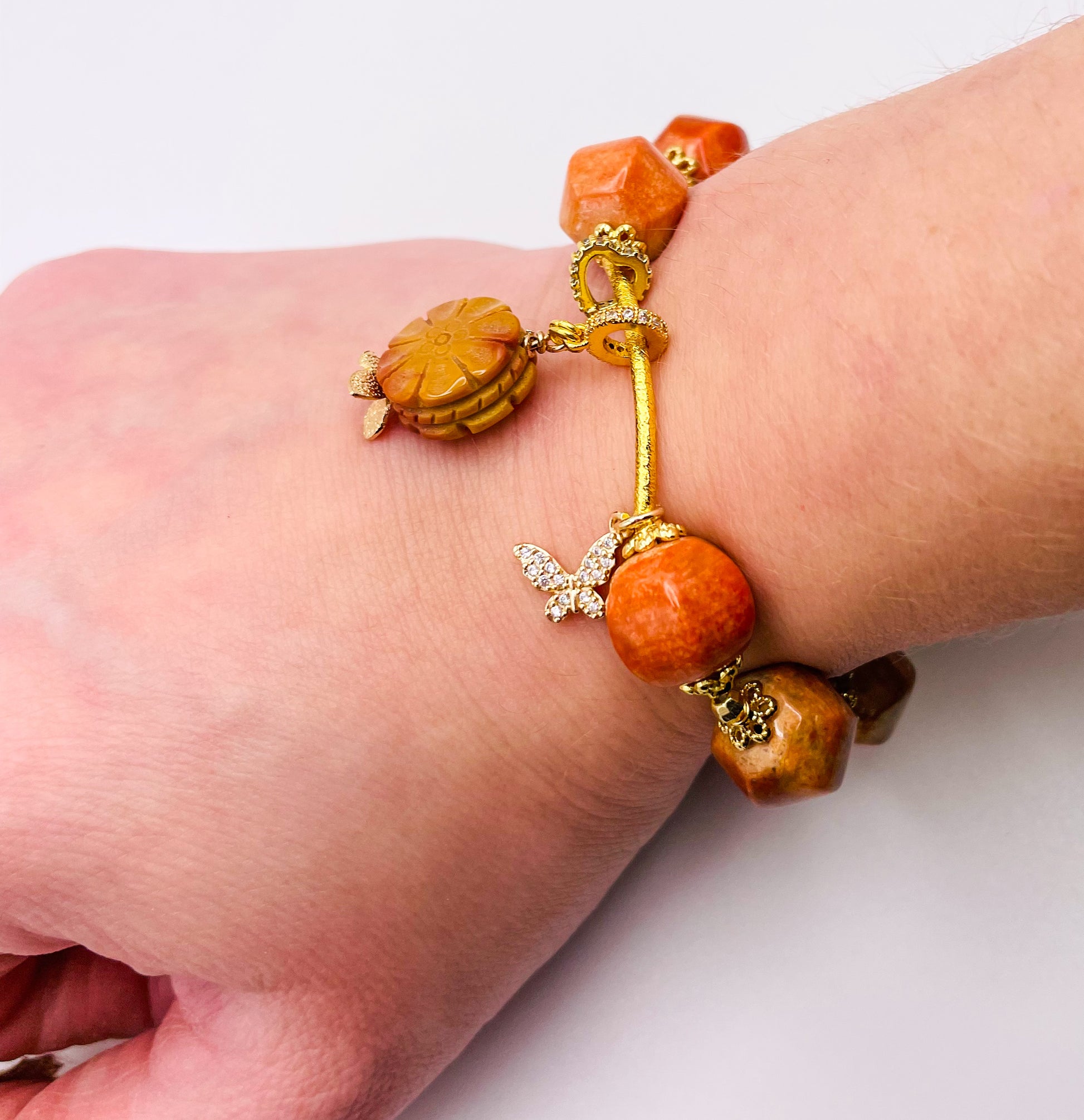 Natural Coral Jade Statement Bracelet