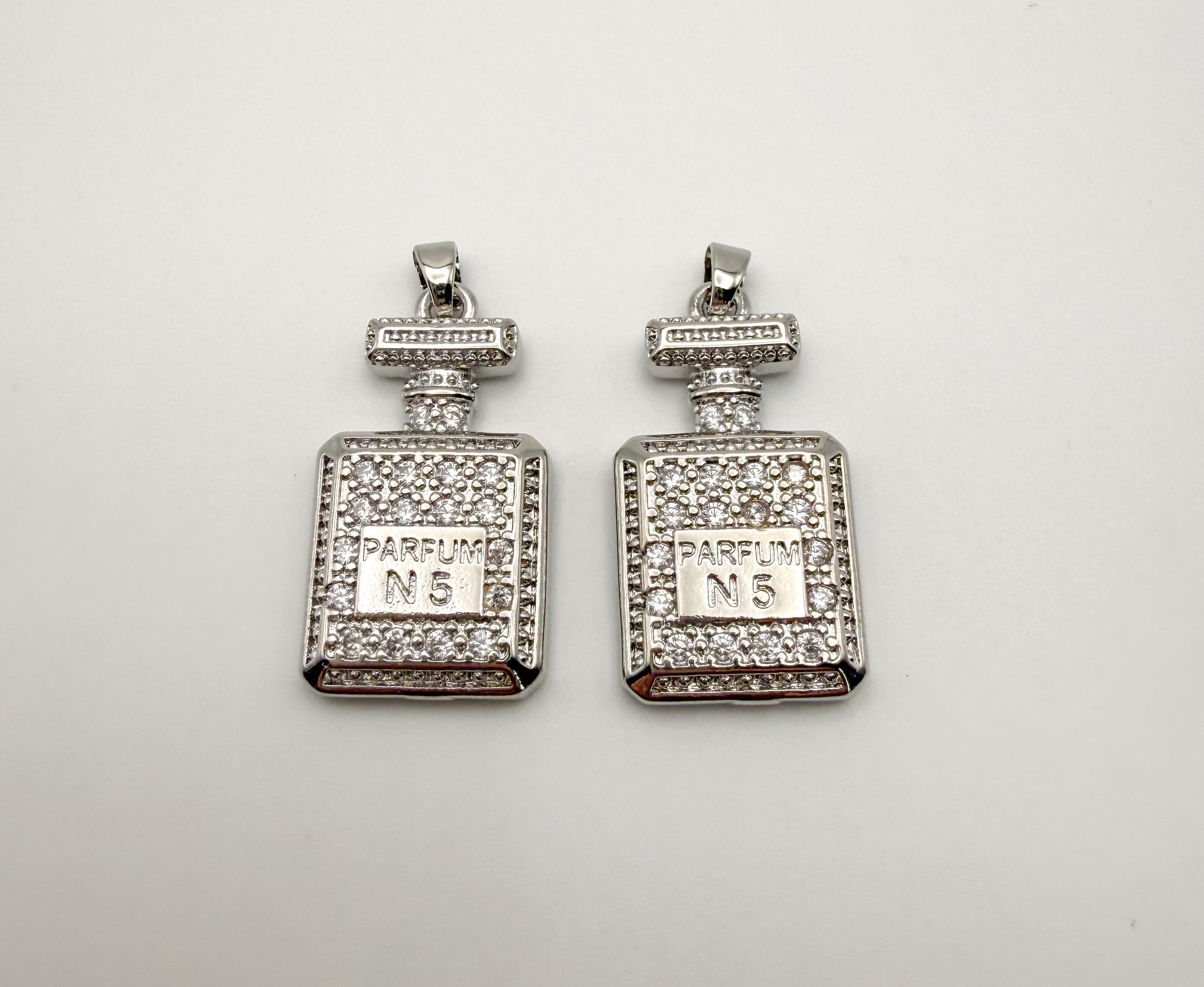 No.5 CC Inspired Silver Sparkling Perfume Bottle High Quality Metal Pendant