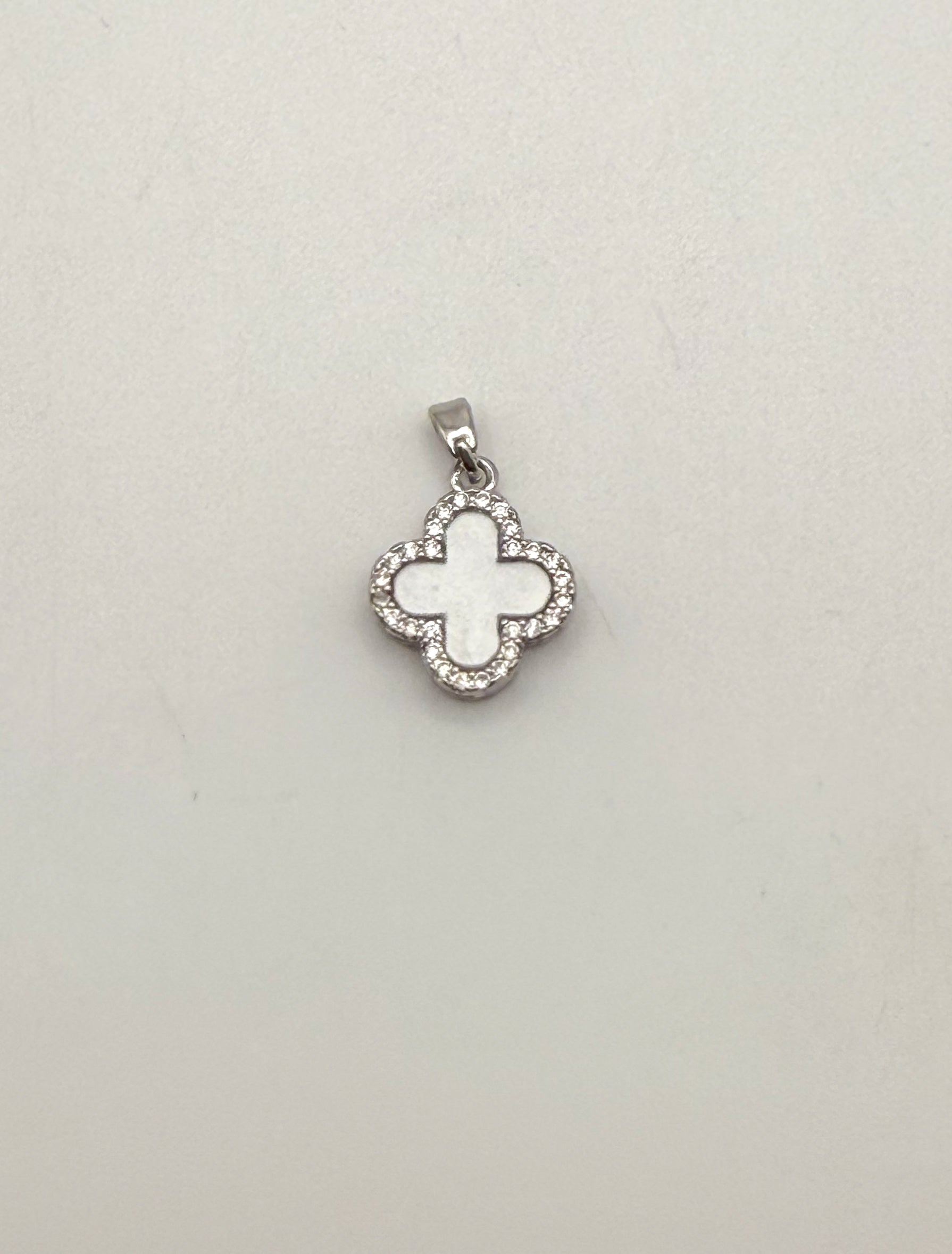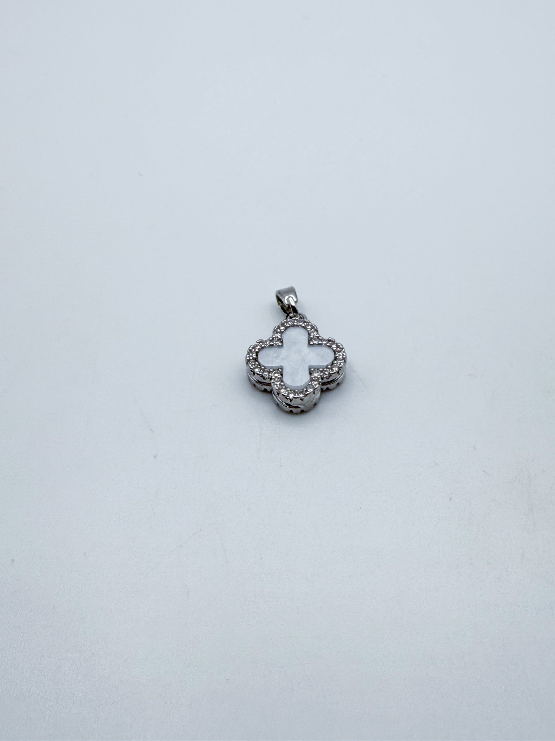 Reversible Black & White Gold or Silver Fancy Clover Pendant