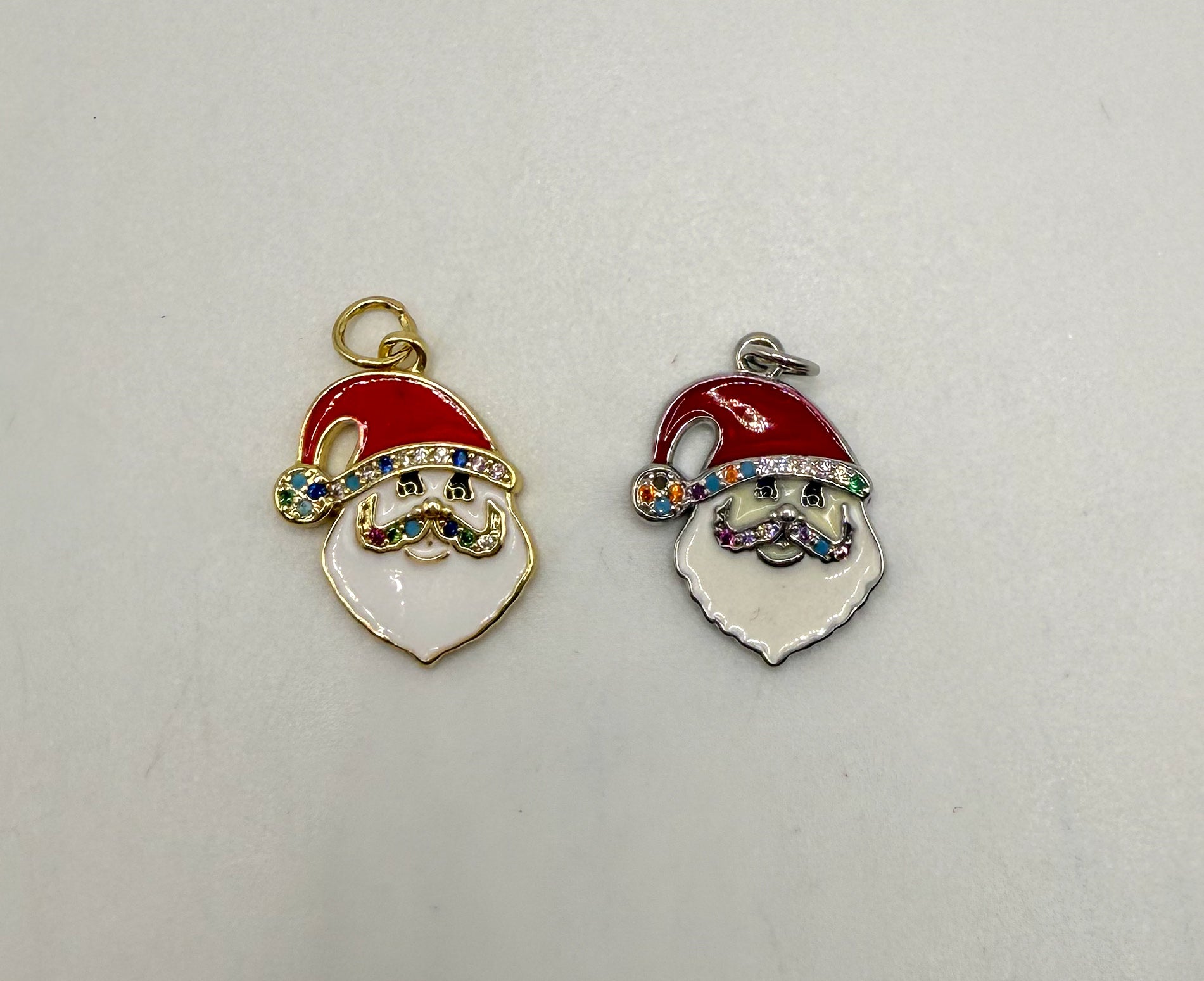 Santa Head with Colorful CZ & Enamel Silver & Pendant