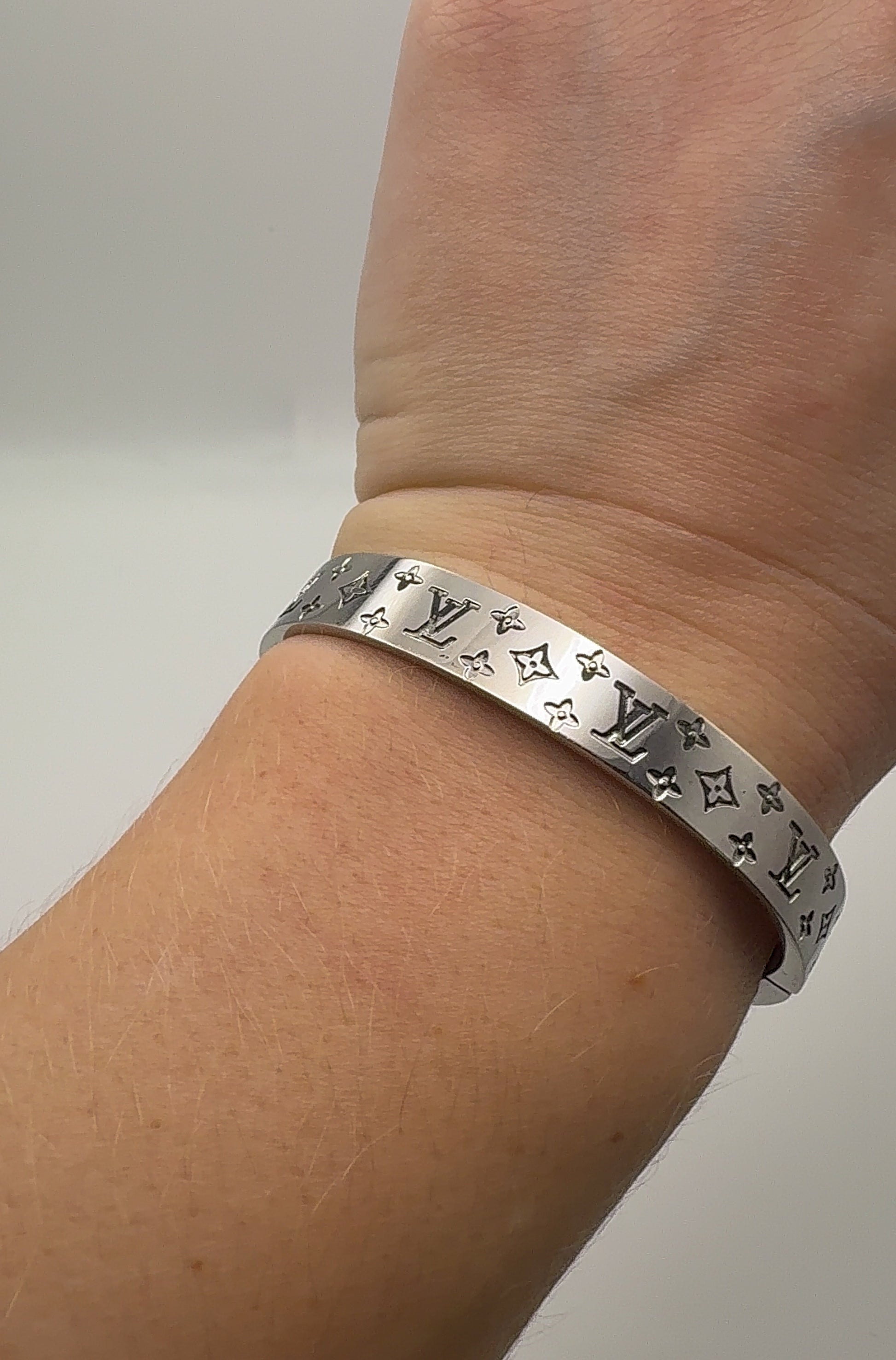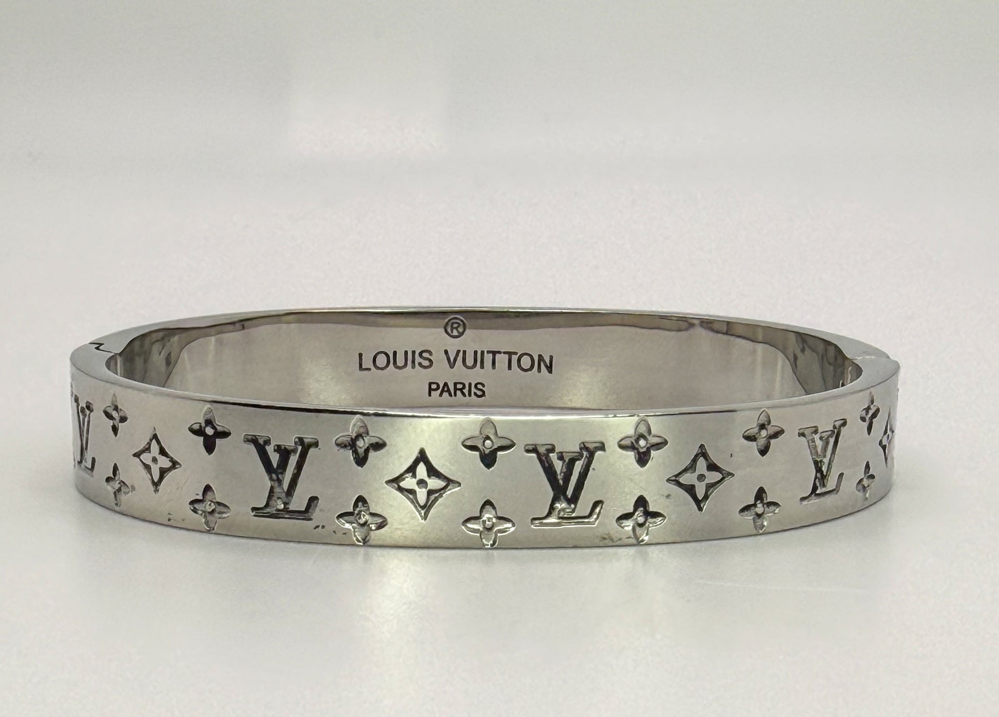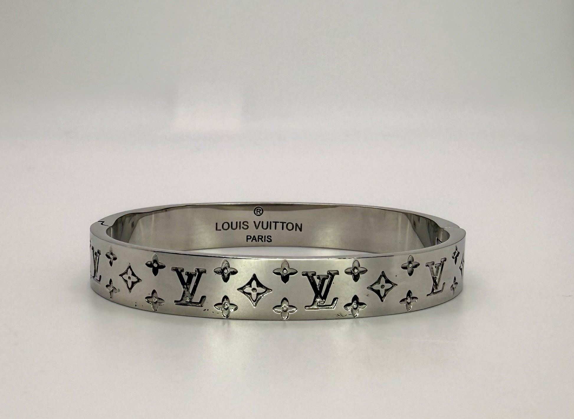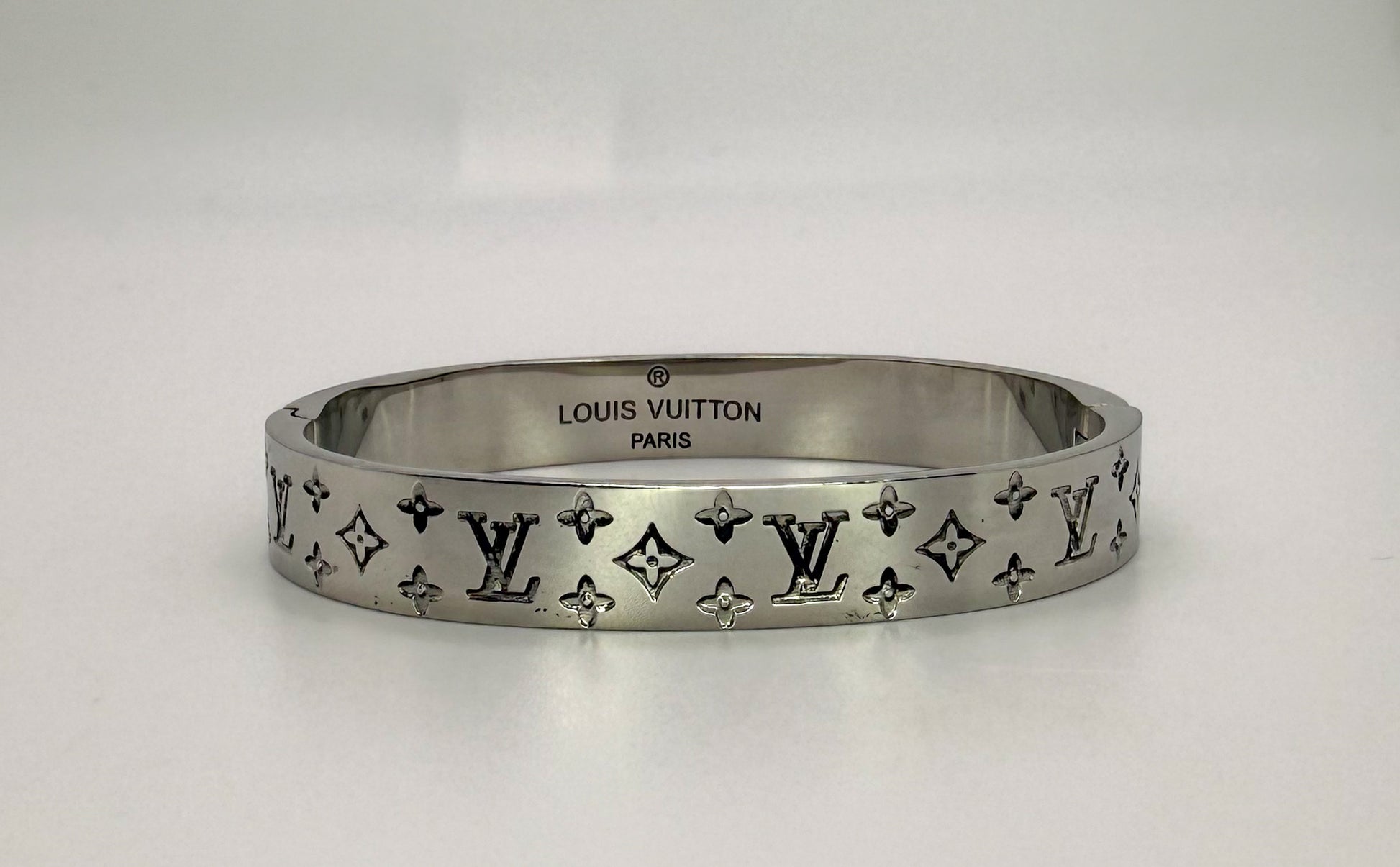 Silver LV Designer Stainless Steel Bangle Bracelet