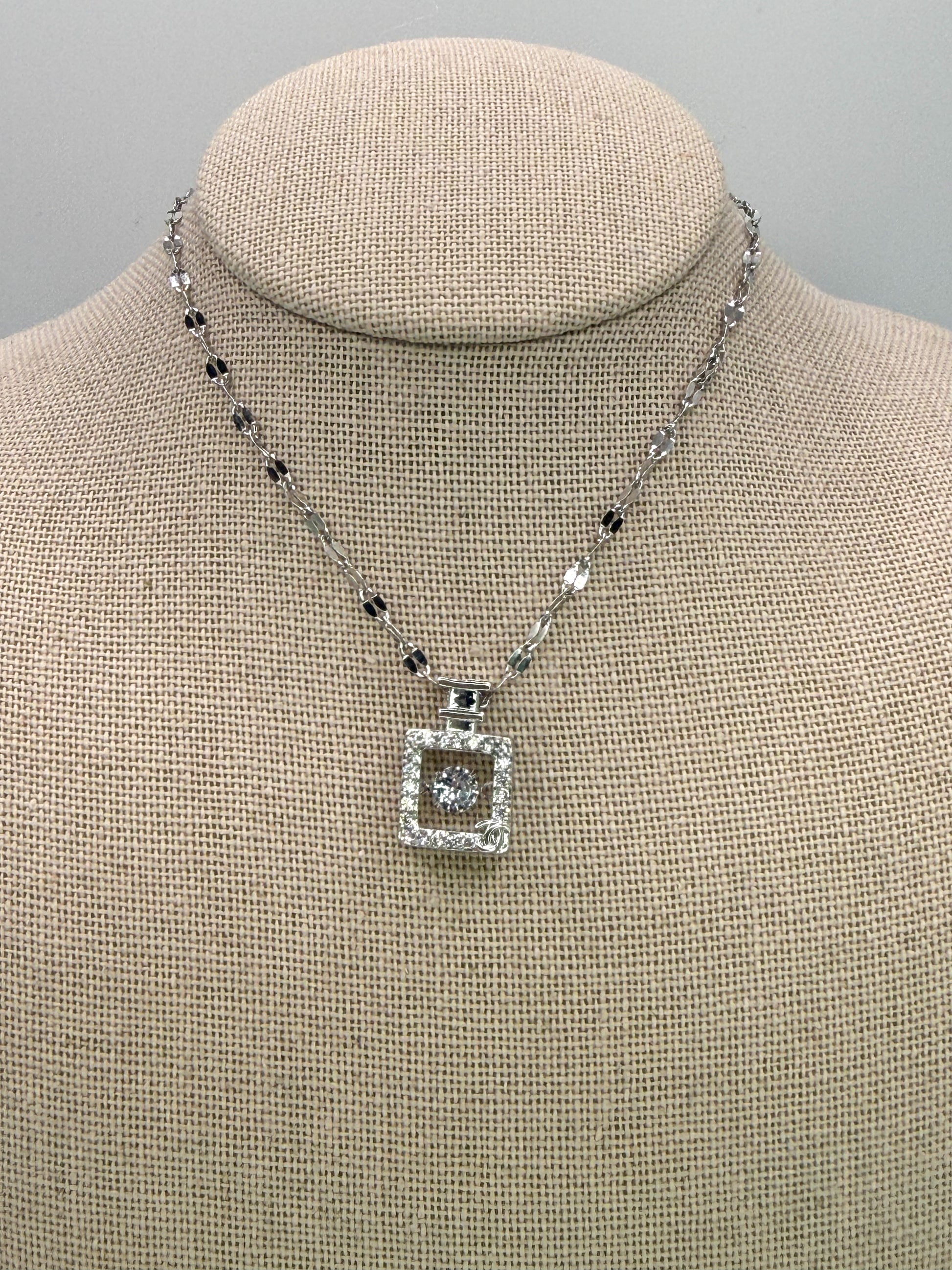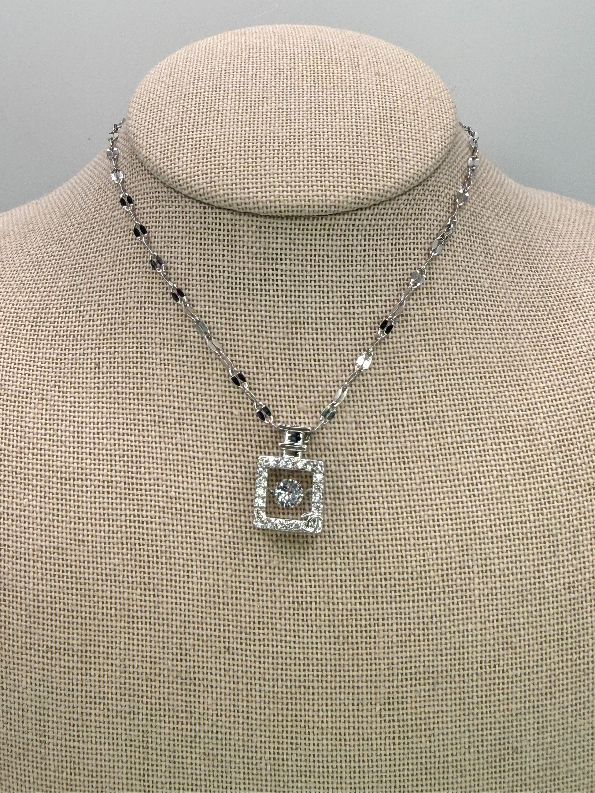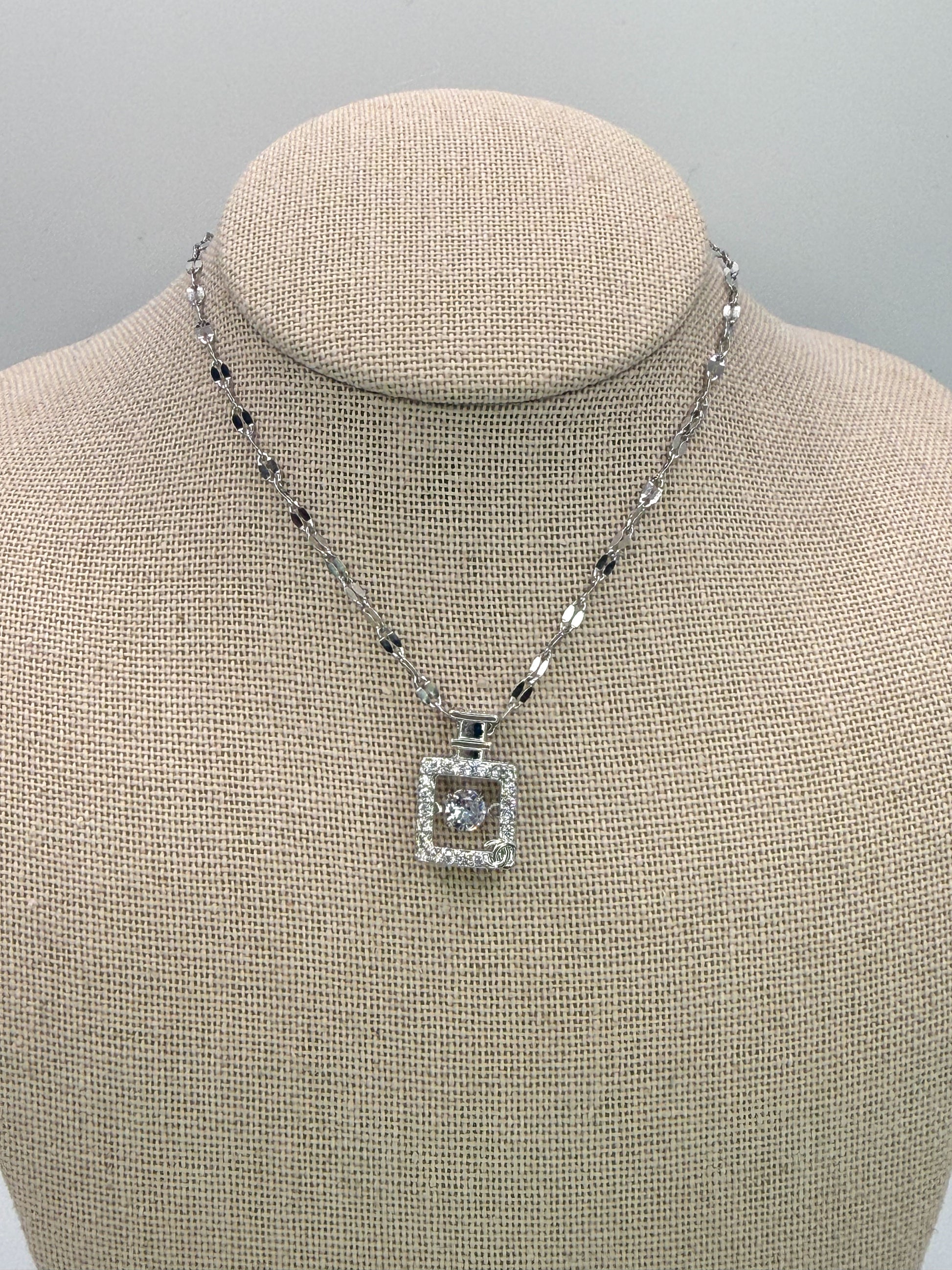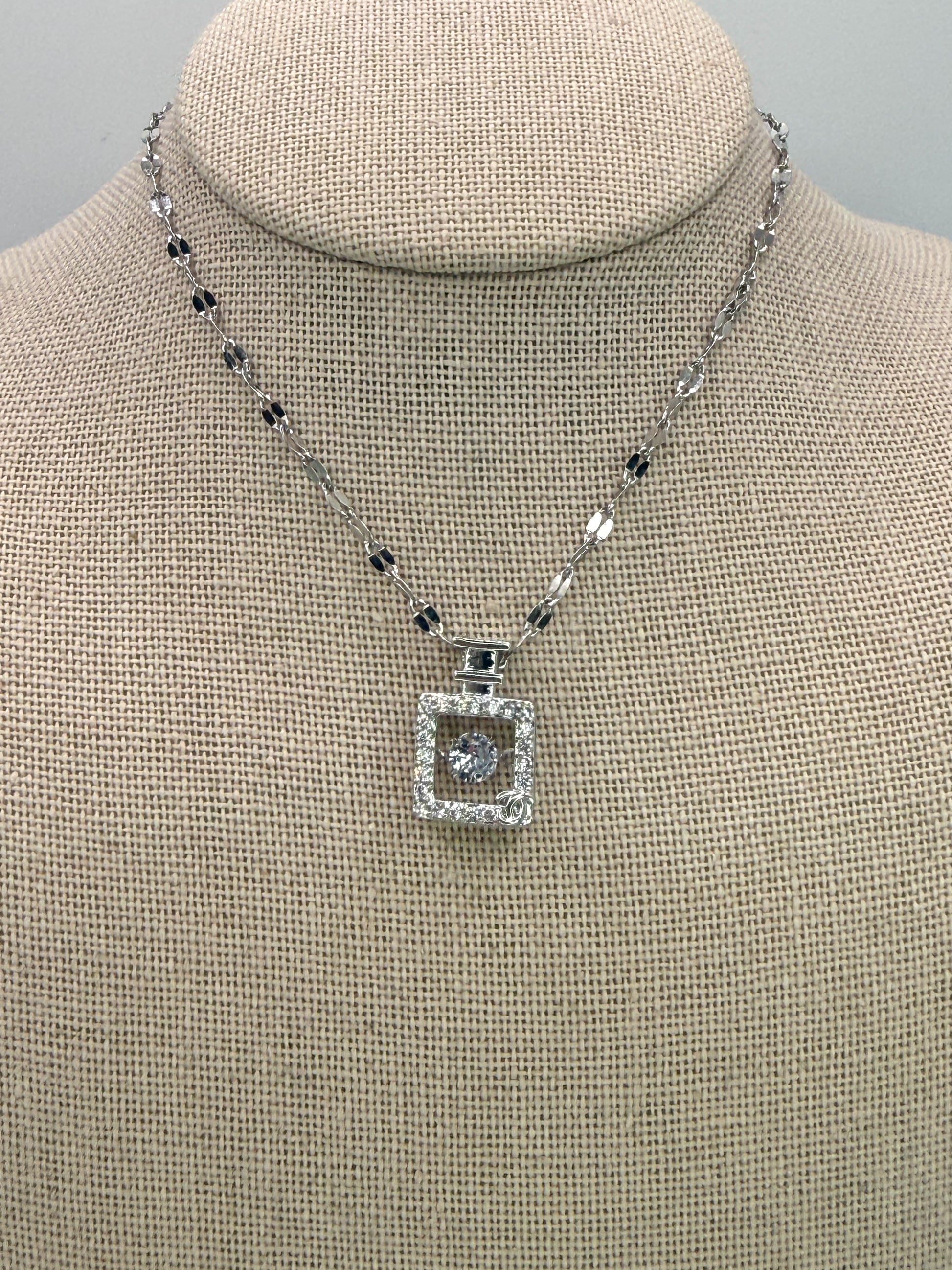 Silver Perfume Bottle For Pendant Necklace with Moveable Zircon in middle