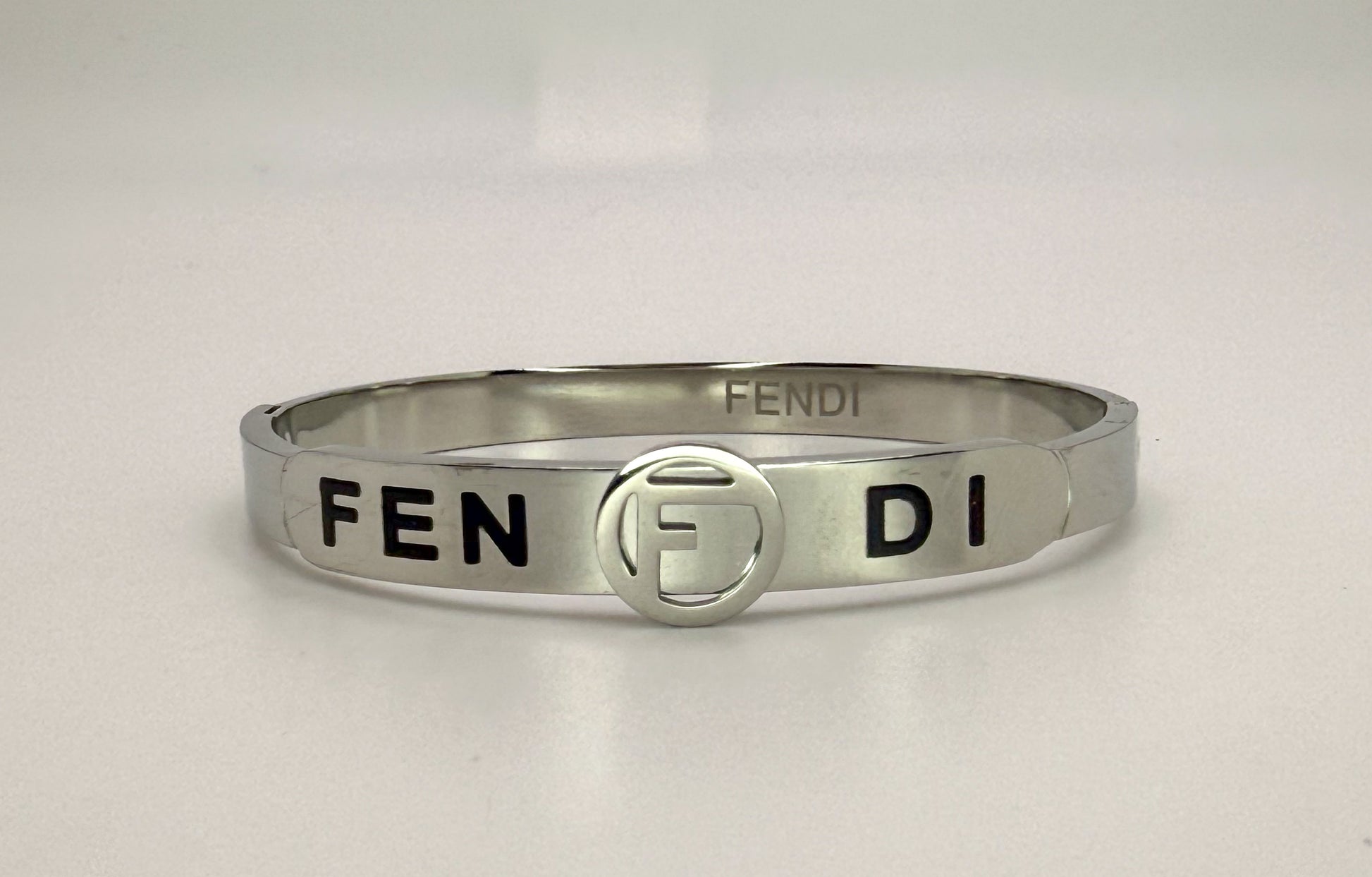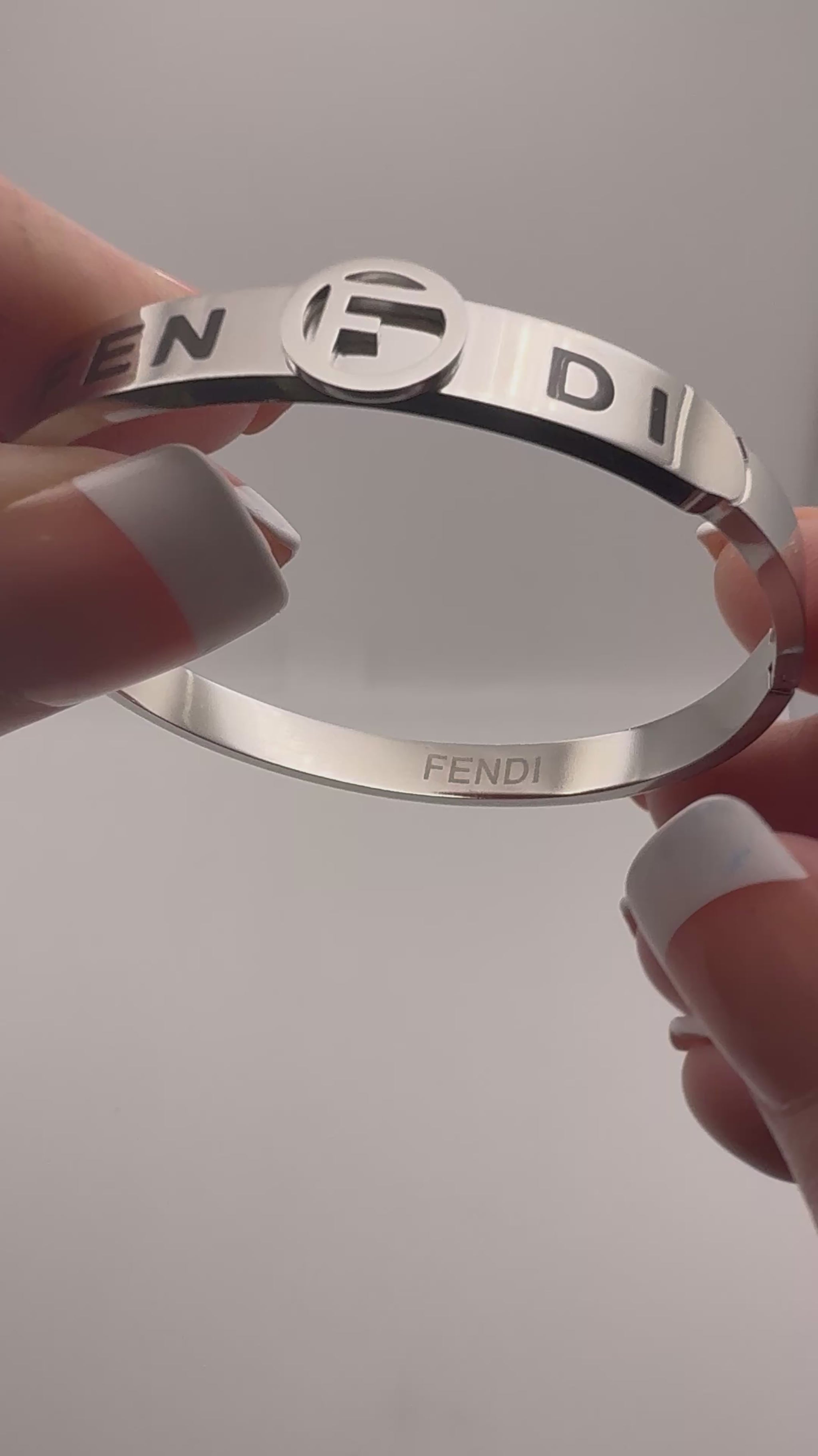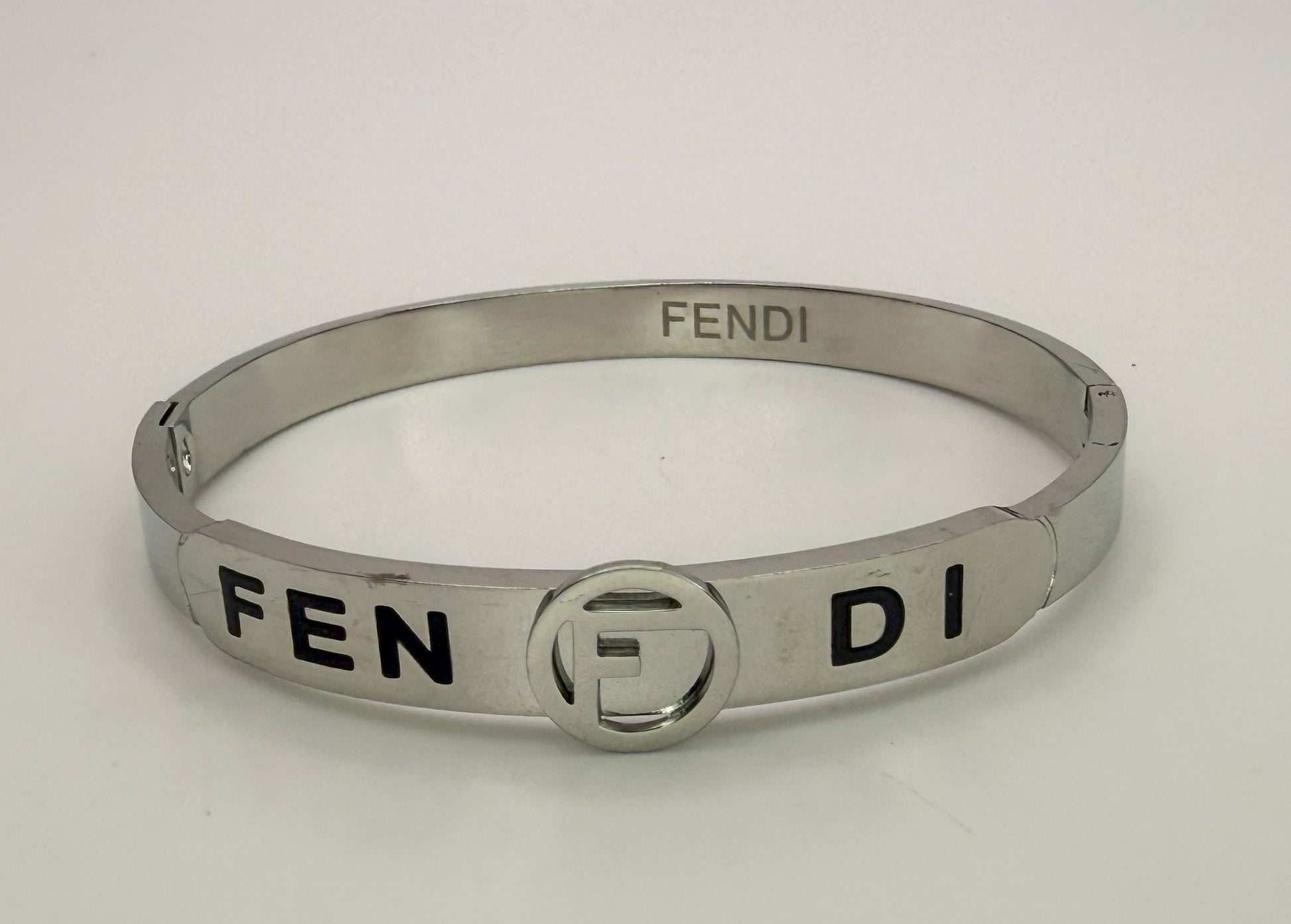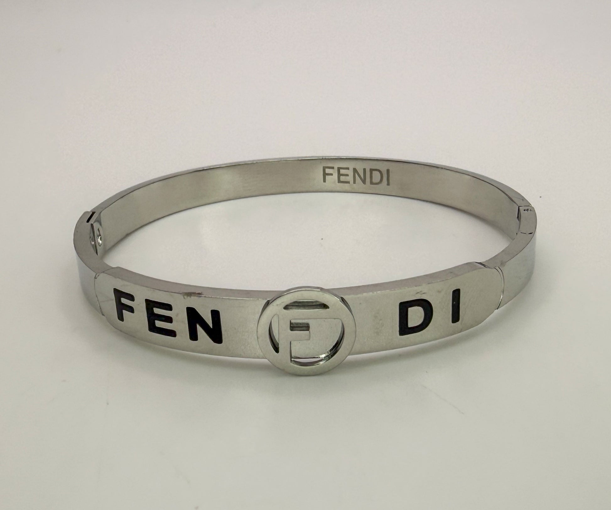 Silver Stainless Steel Fendi Designer Bangle Bracelet