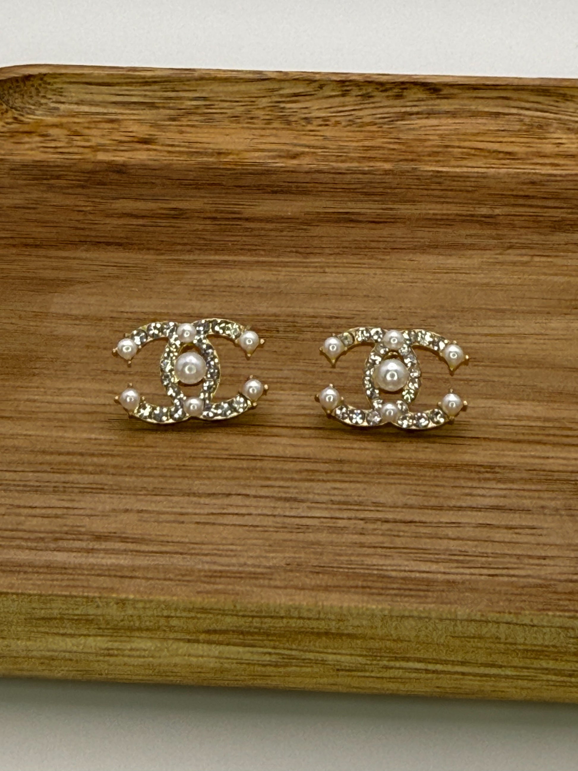 Small CC Designer Gold or Silver Stud Earrings
