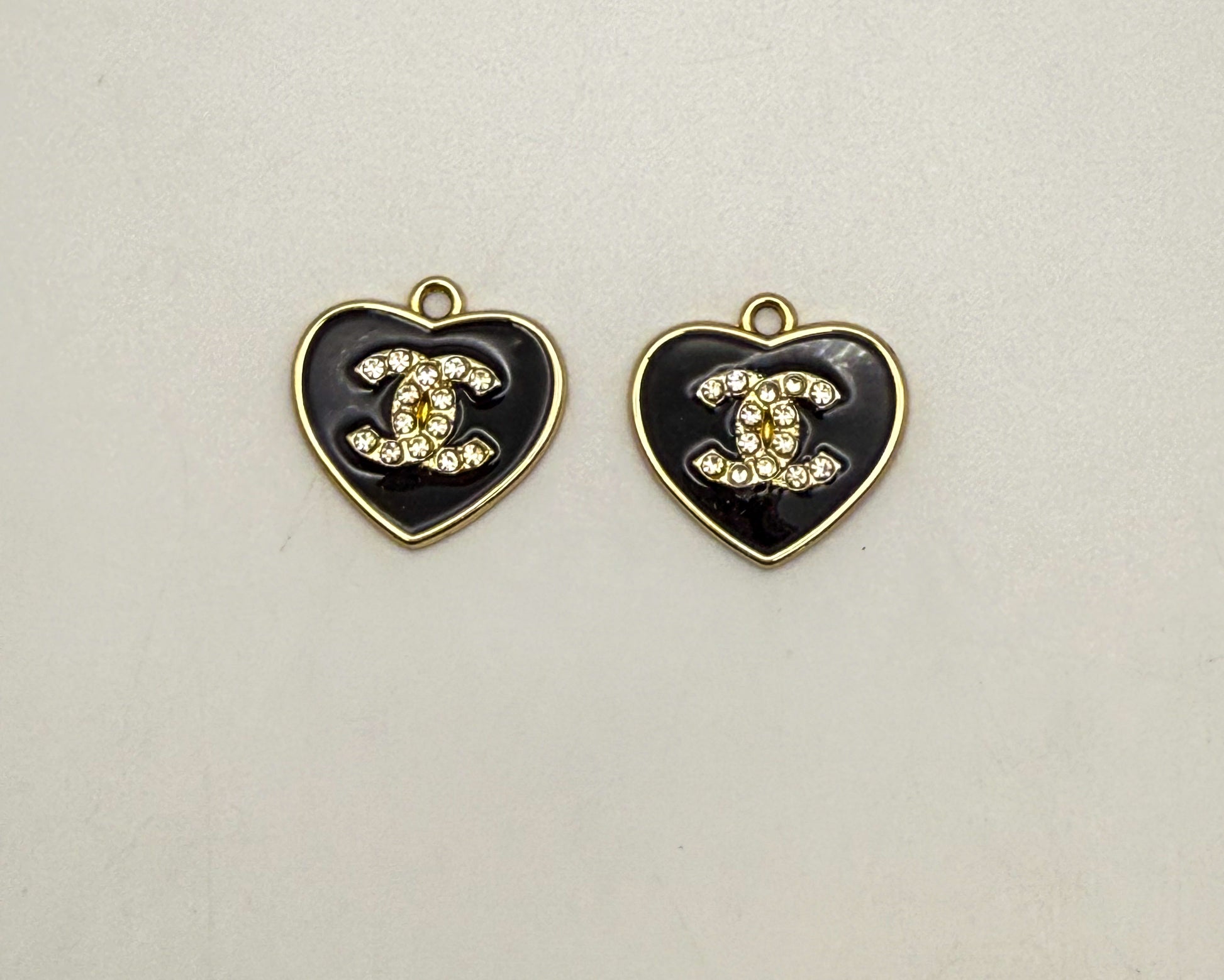 Solid Black CC Designer Heart Gold and Silver DIY Charms
