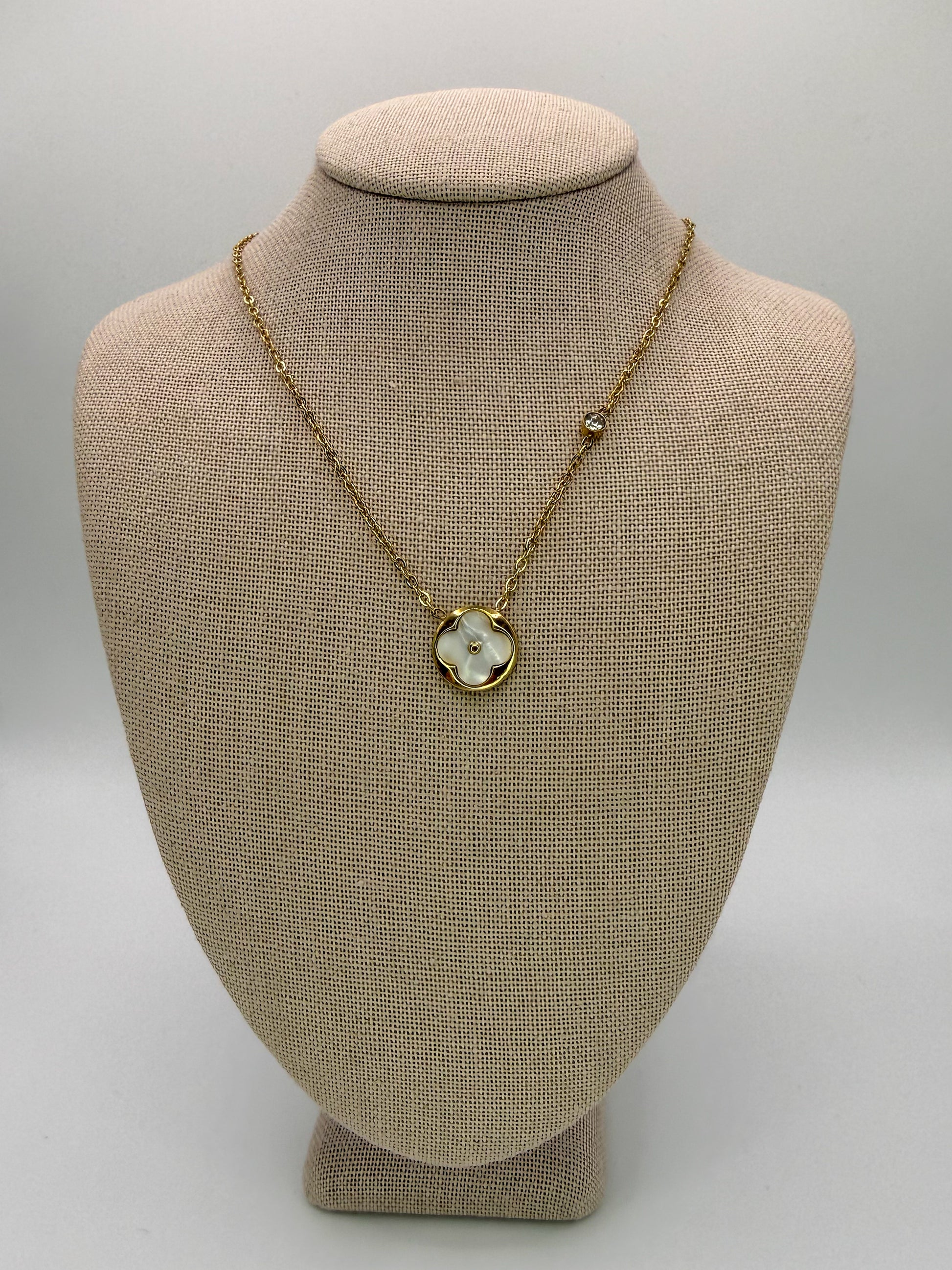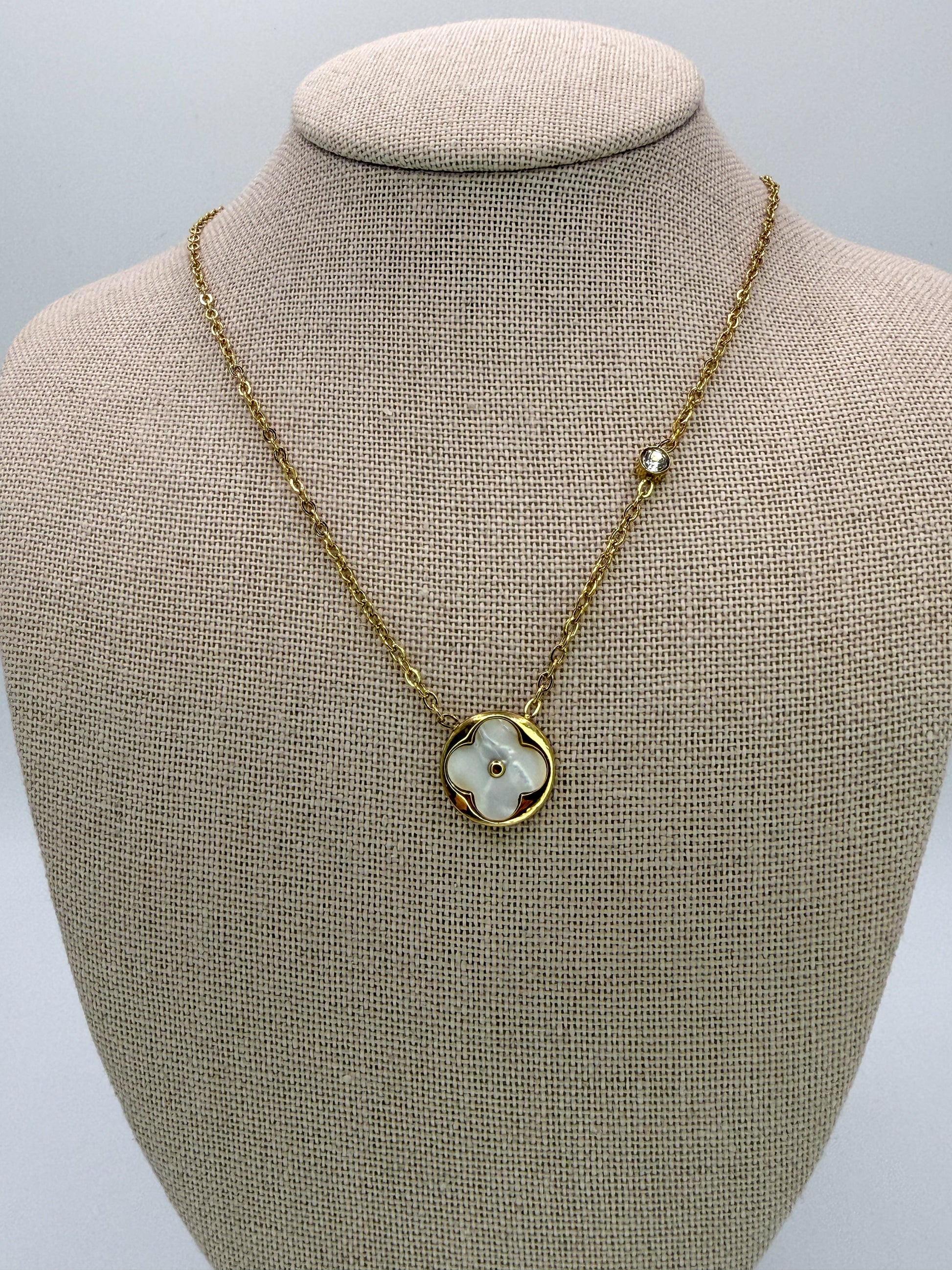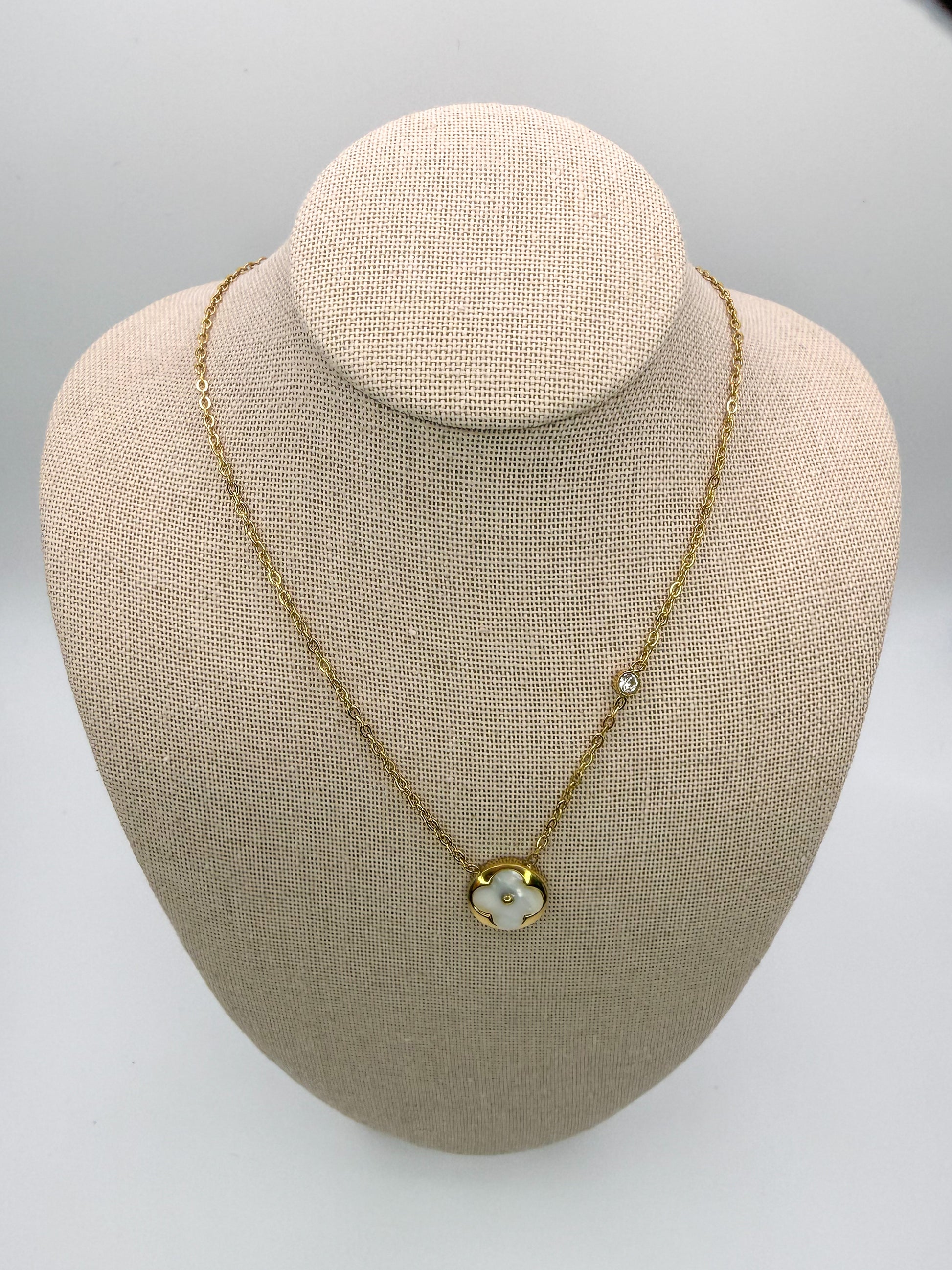 White Mother of Pearl Shell Clover Pendant Necklace