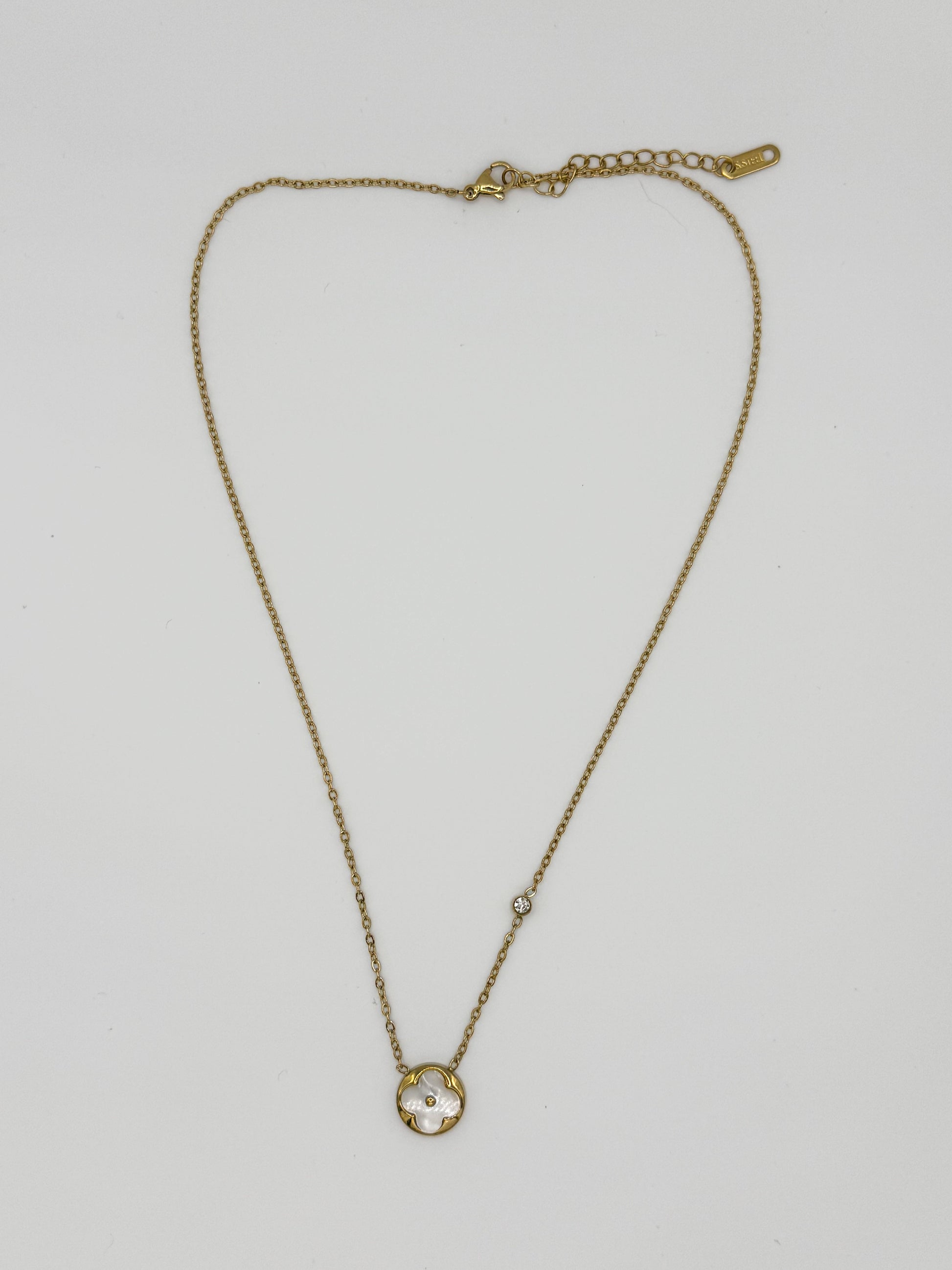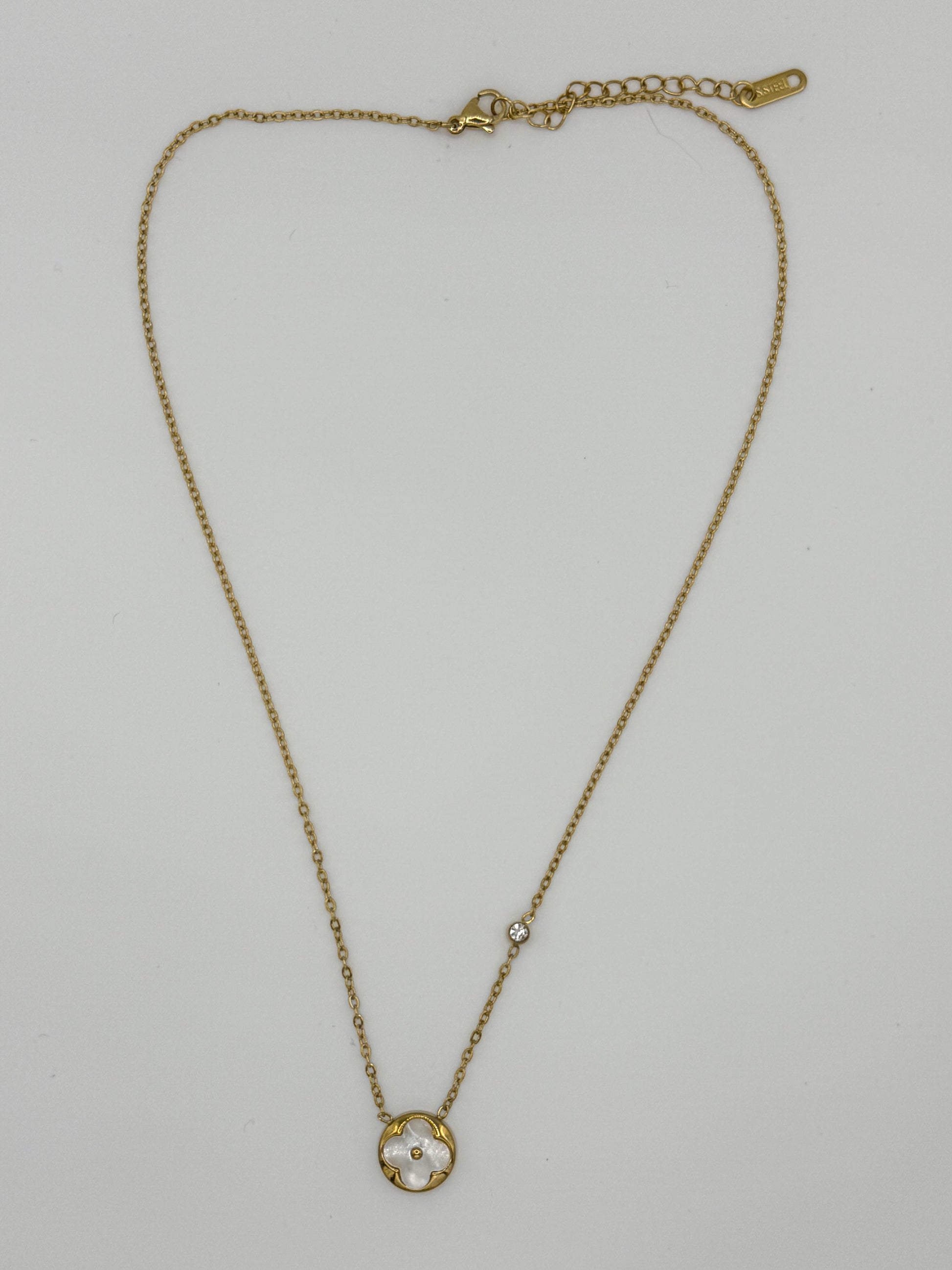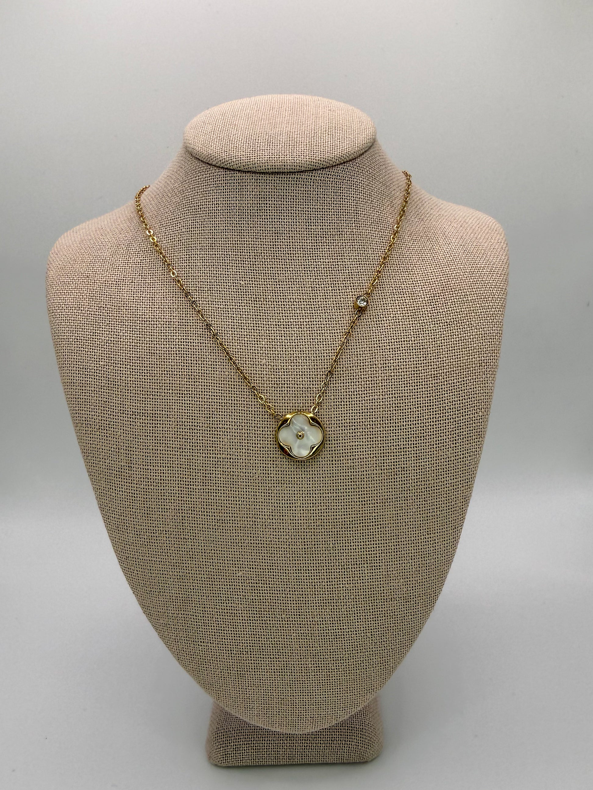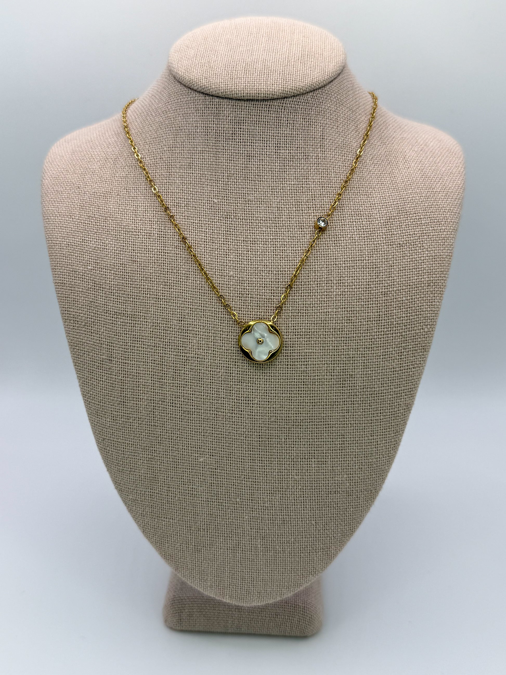 White Mother of Pearl Shell Clover Pendant Necklace