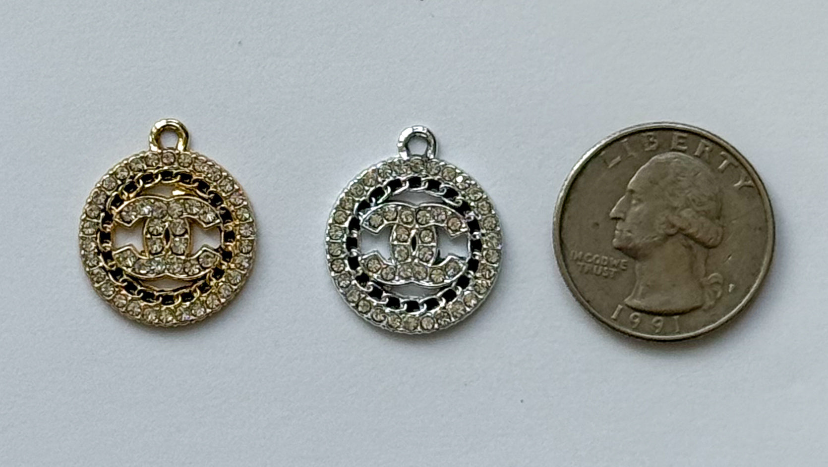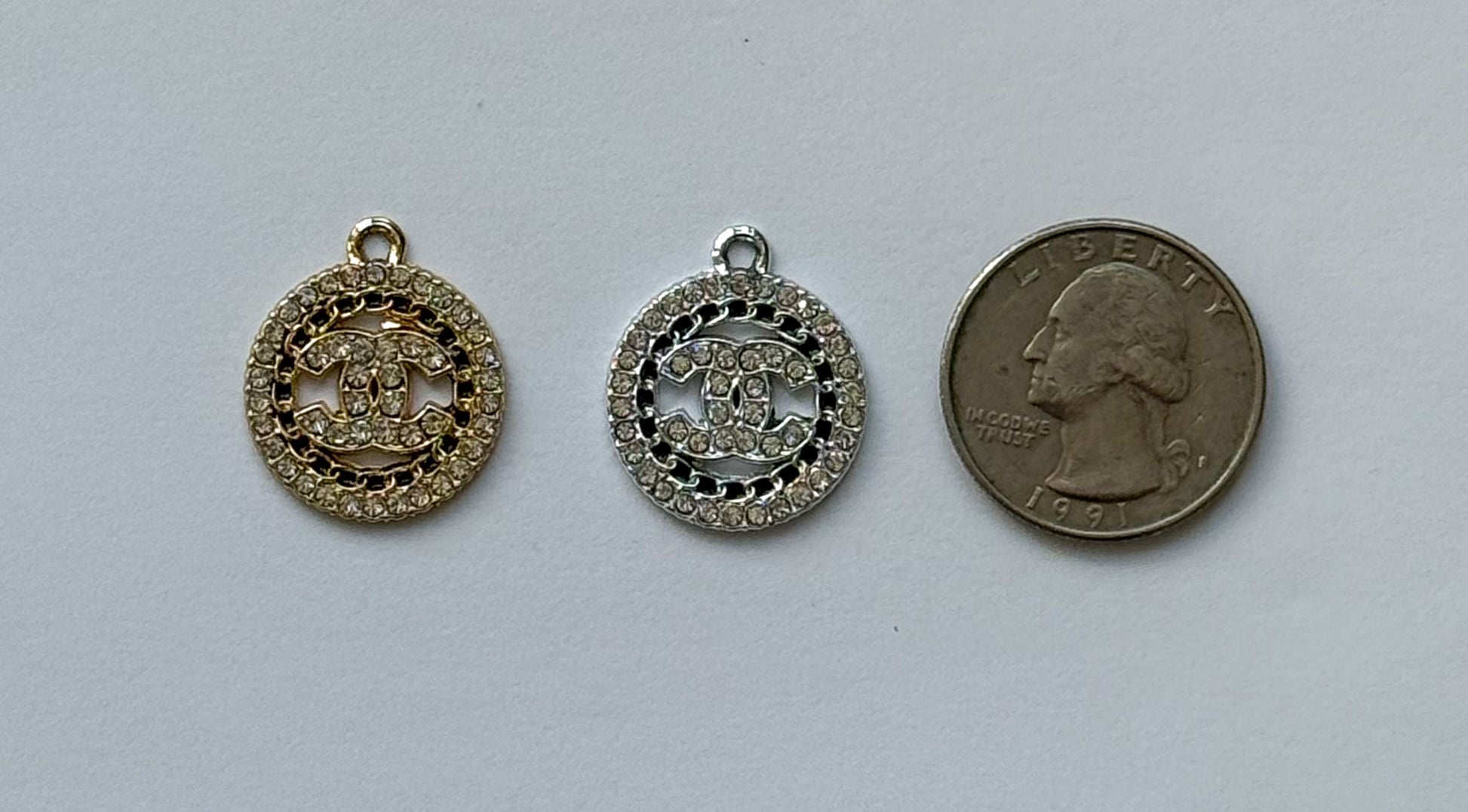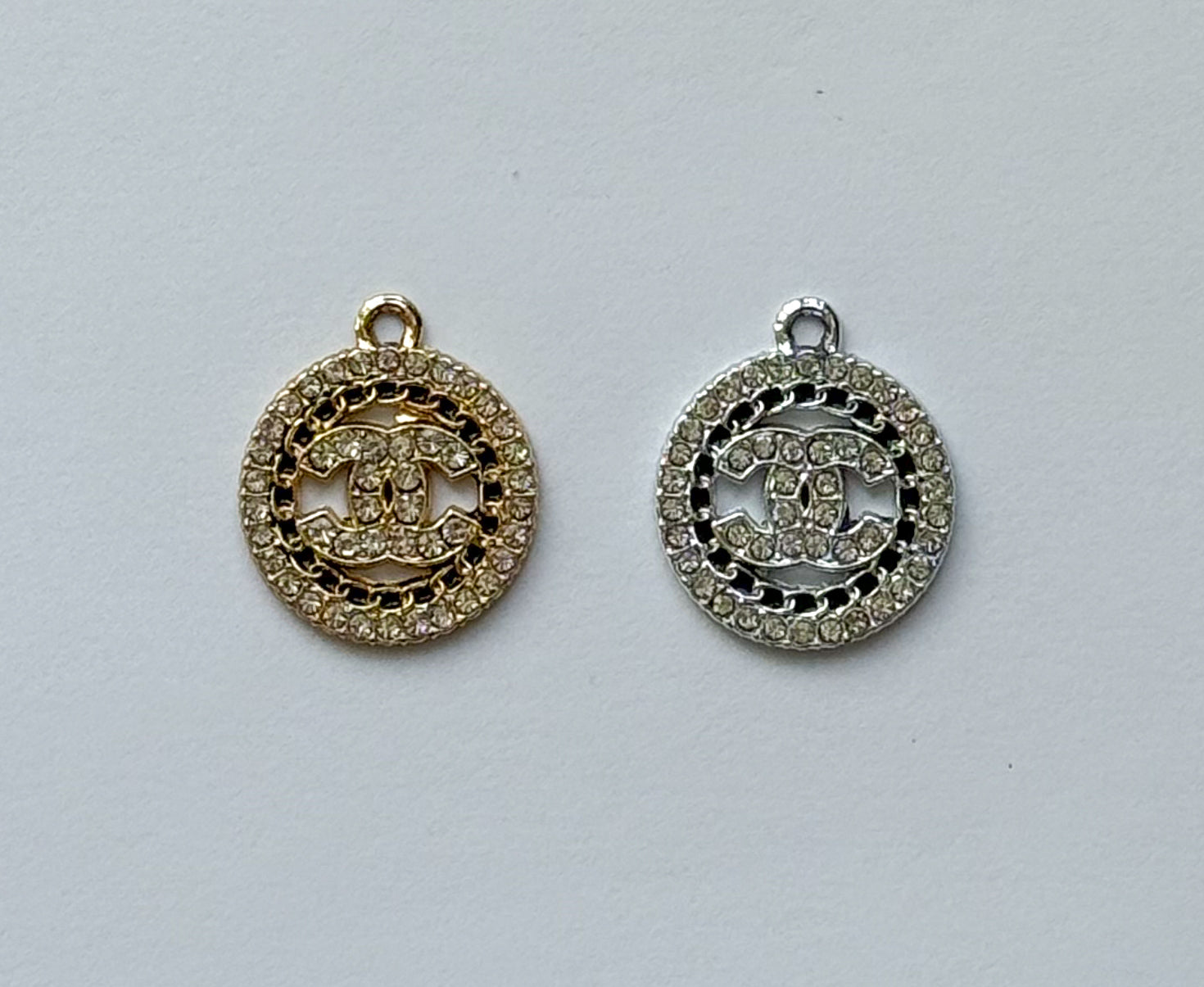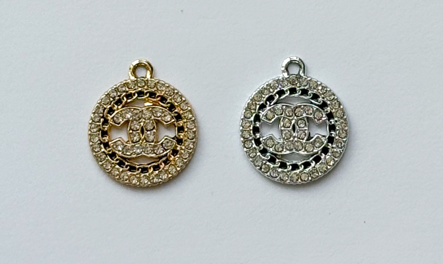 Zircon Covered CC Designer Round Silver or Gold DIY Charms